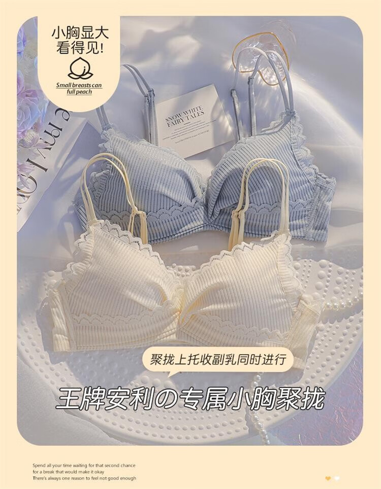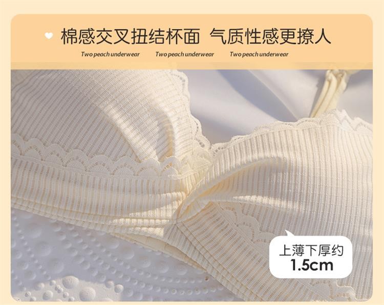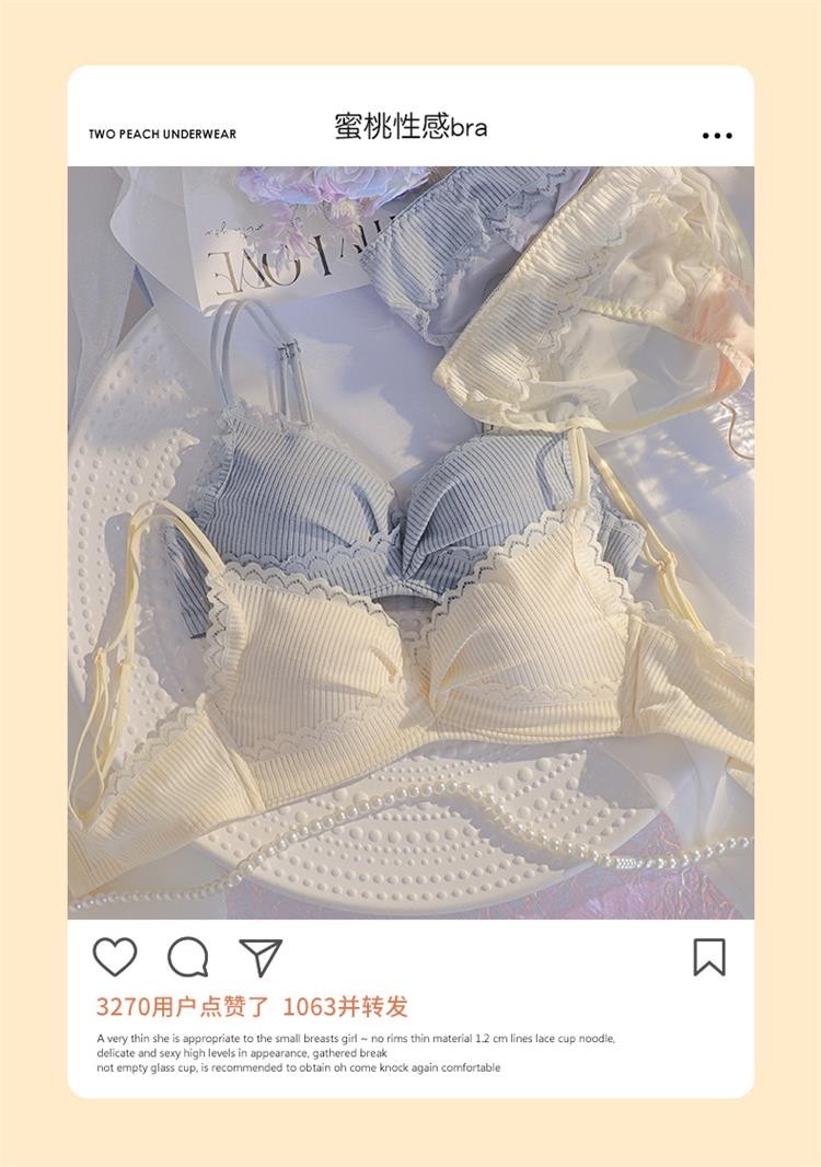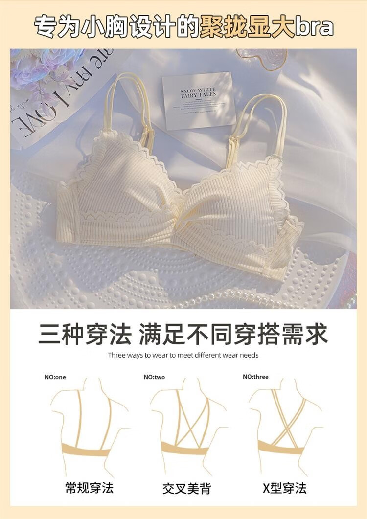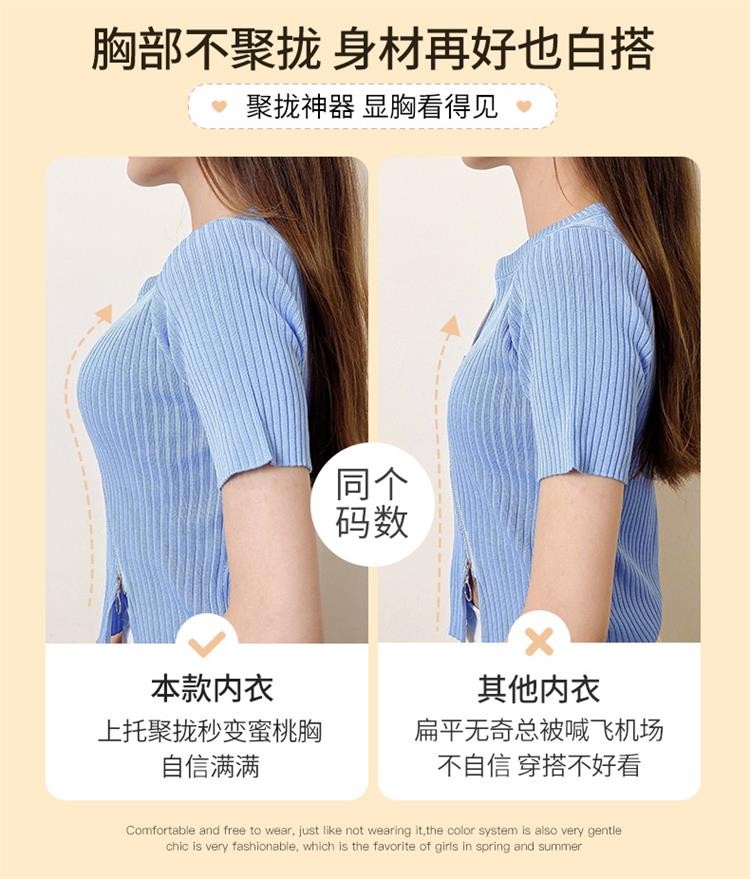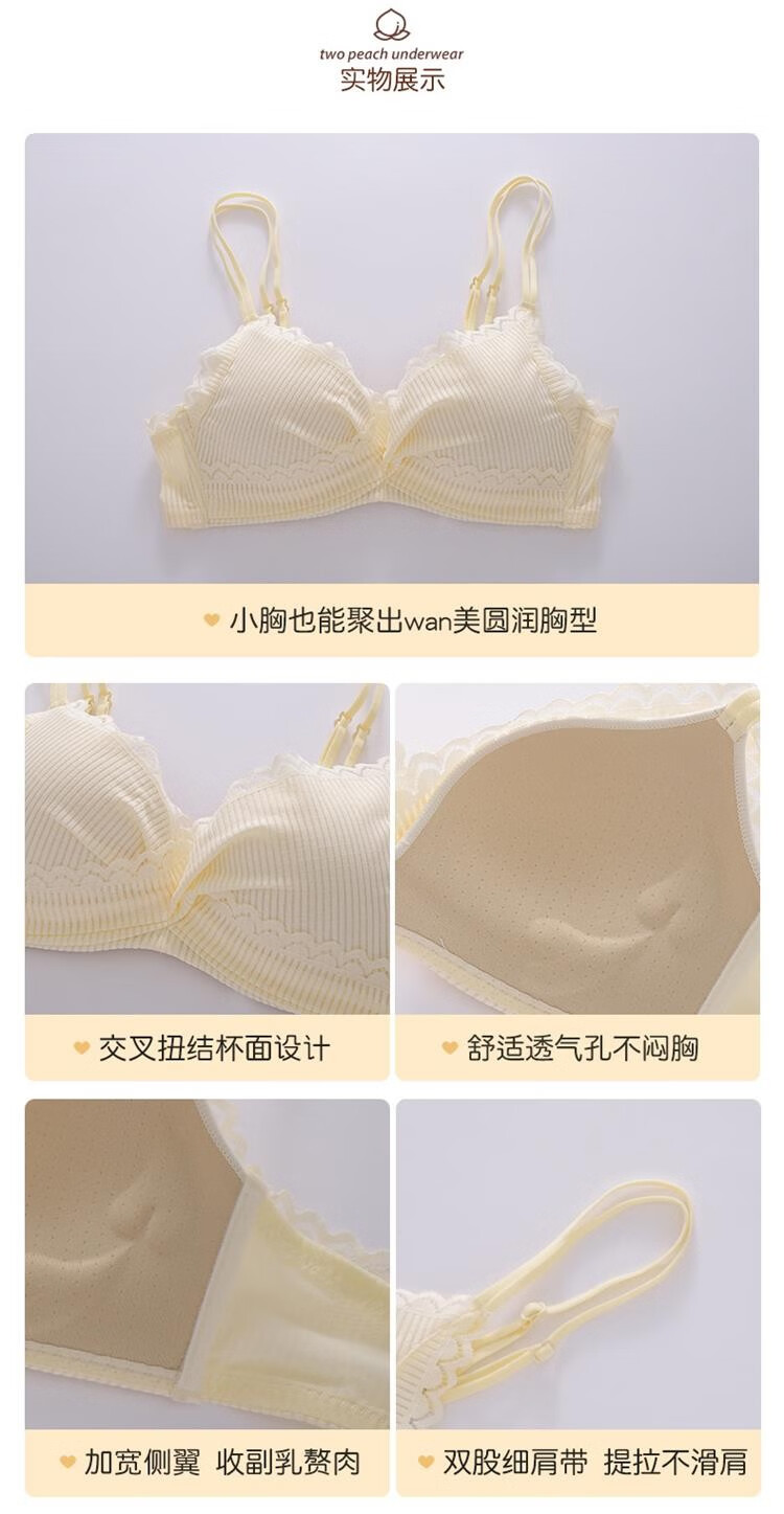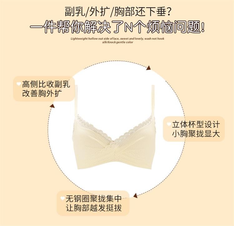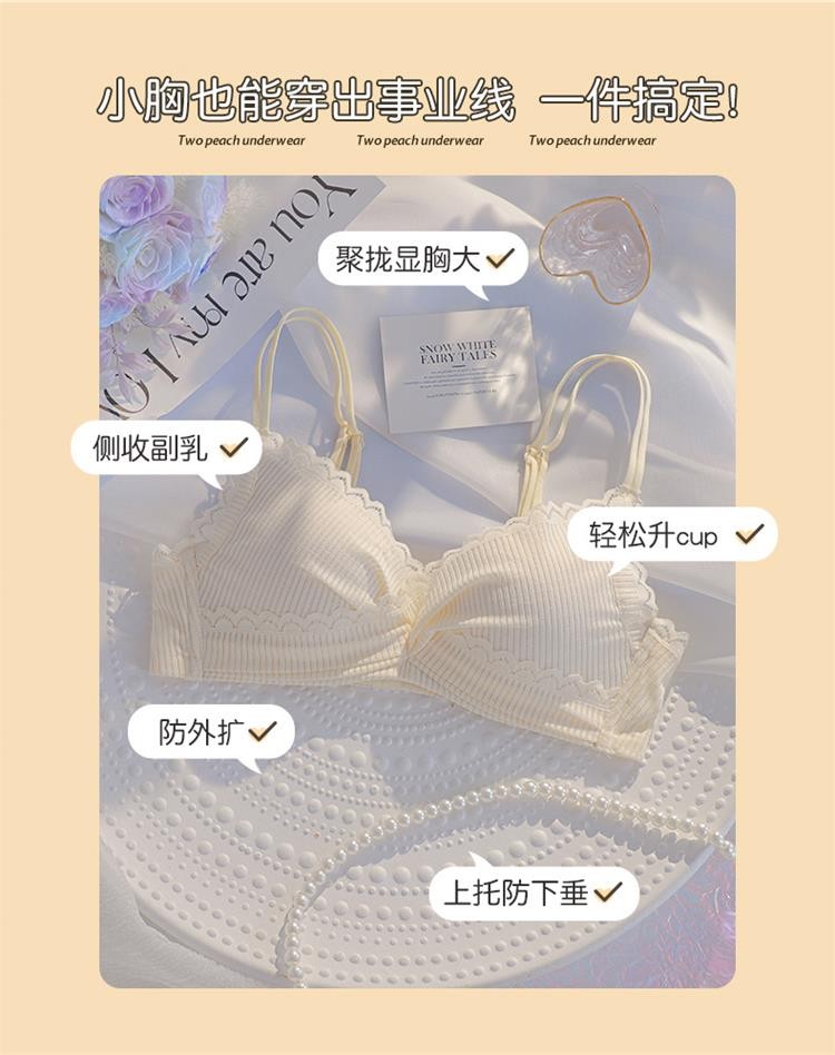 蝶蓝莎内衣女小胸聚拢新款无钢圈防下垂薄款夏季性感美背纯欲文胸罩套装 香槟黄(单件) 34/75码(AB通杯厚约1.5CM)