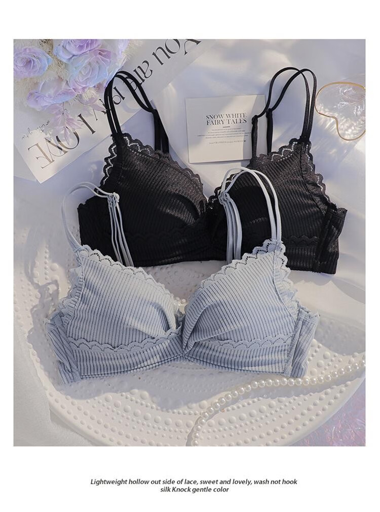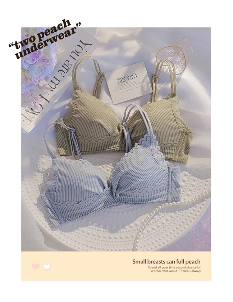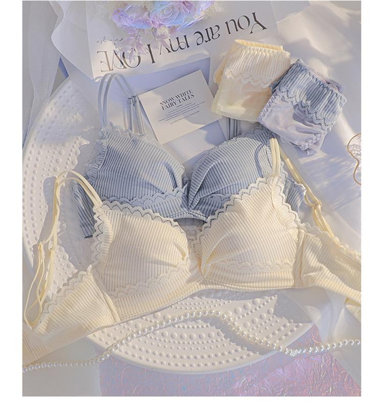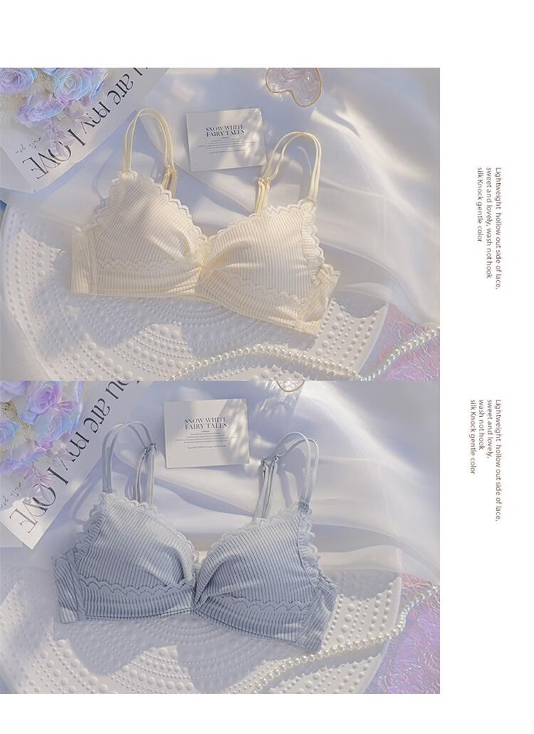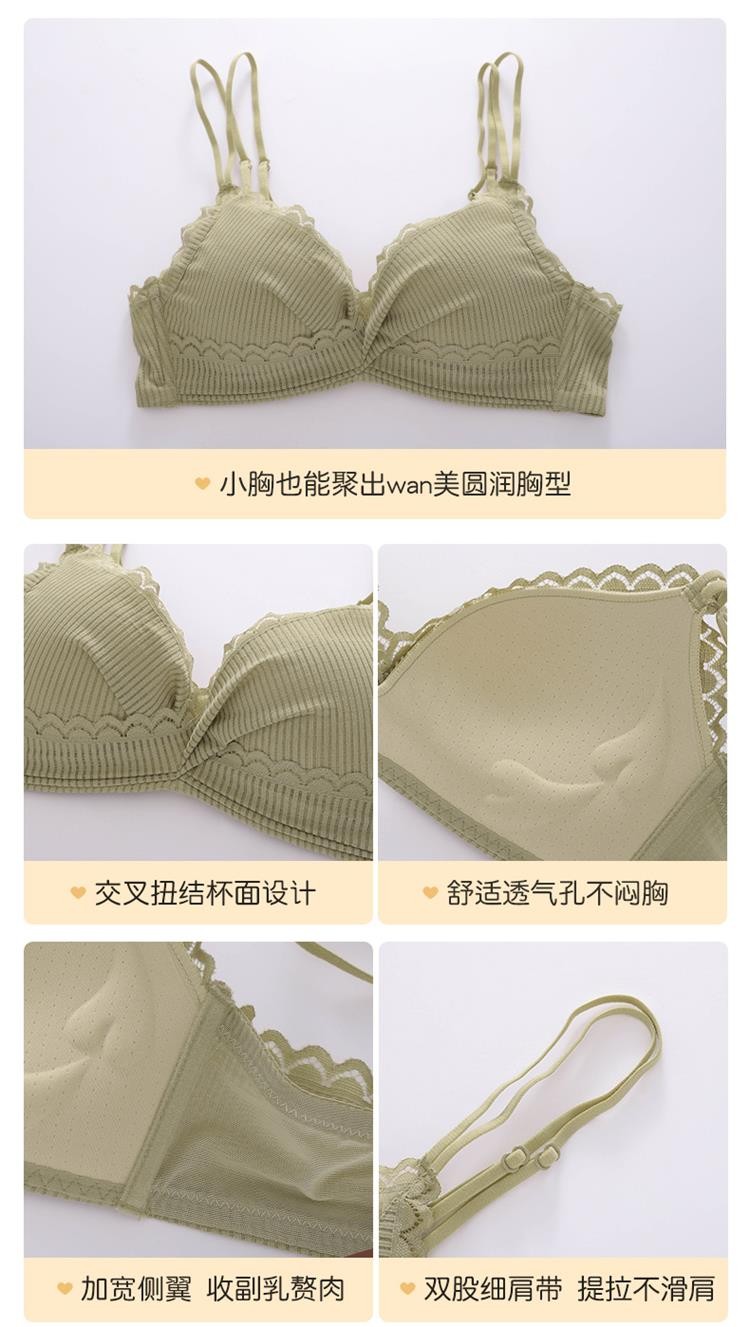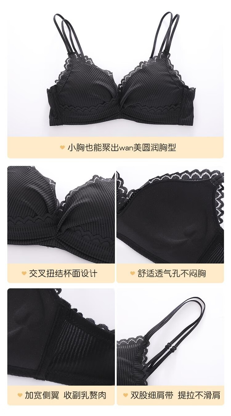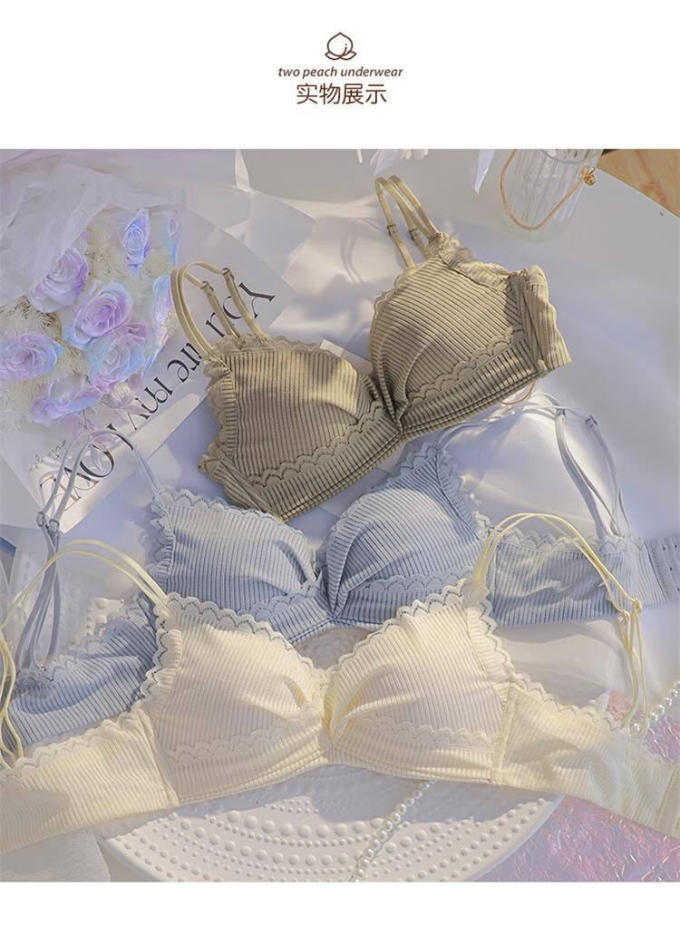 蝶蓝莎内衣女小胸聚拢新款无钢圈防下垂薄款夏季性感美背纯欲文胸罩套装 香槟黄(单件) 34/75码(AB通杯厚约1.5CM)