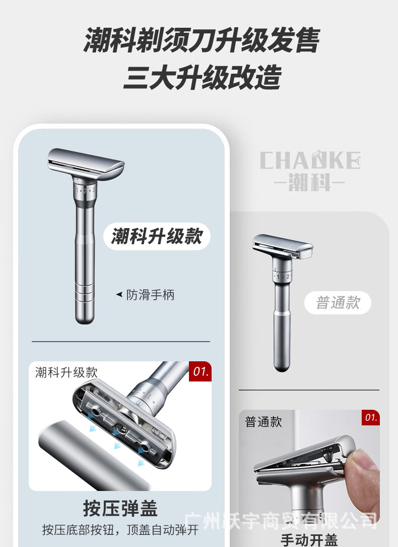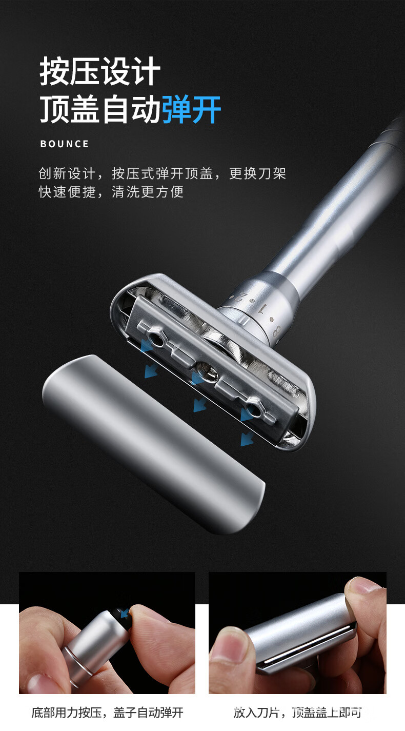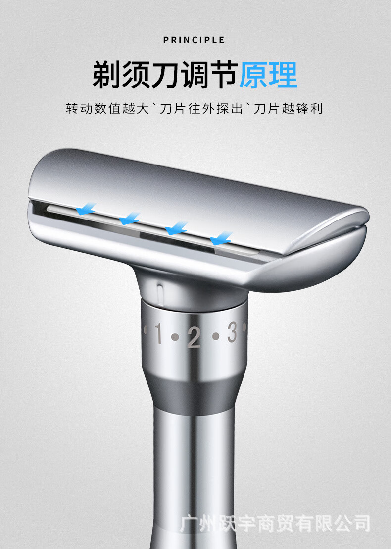 【优选好物】剃须刀手动刮胡刀男士升级版可调锋利度老式剃头胡须 银色剃须刀+收储盒+1盒刀片(5片