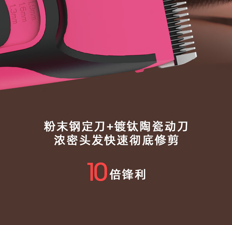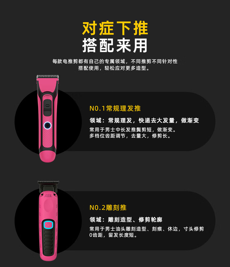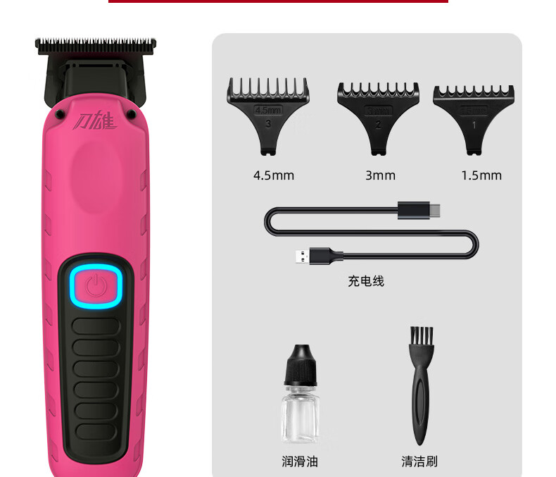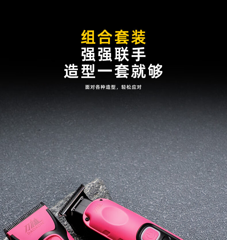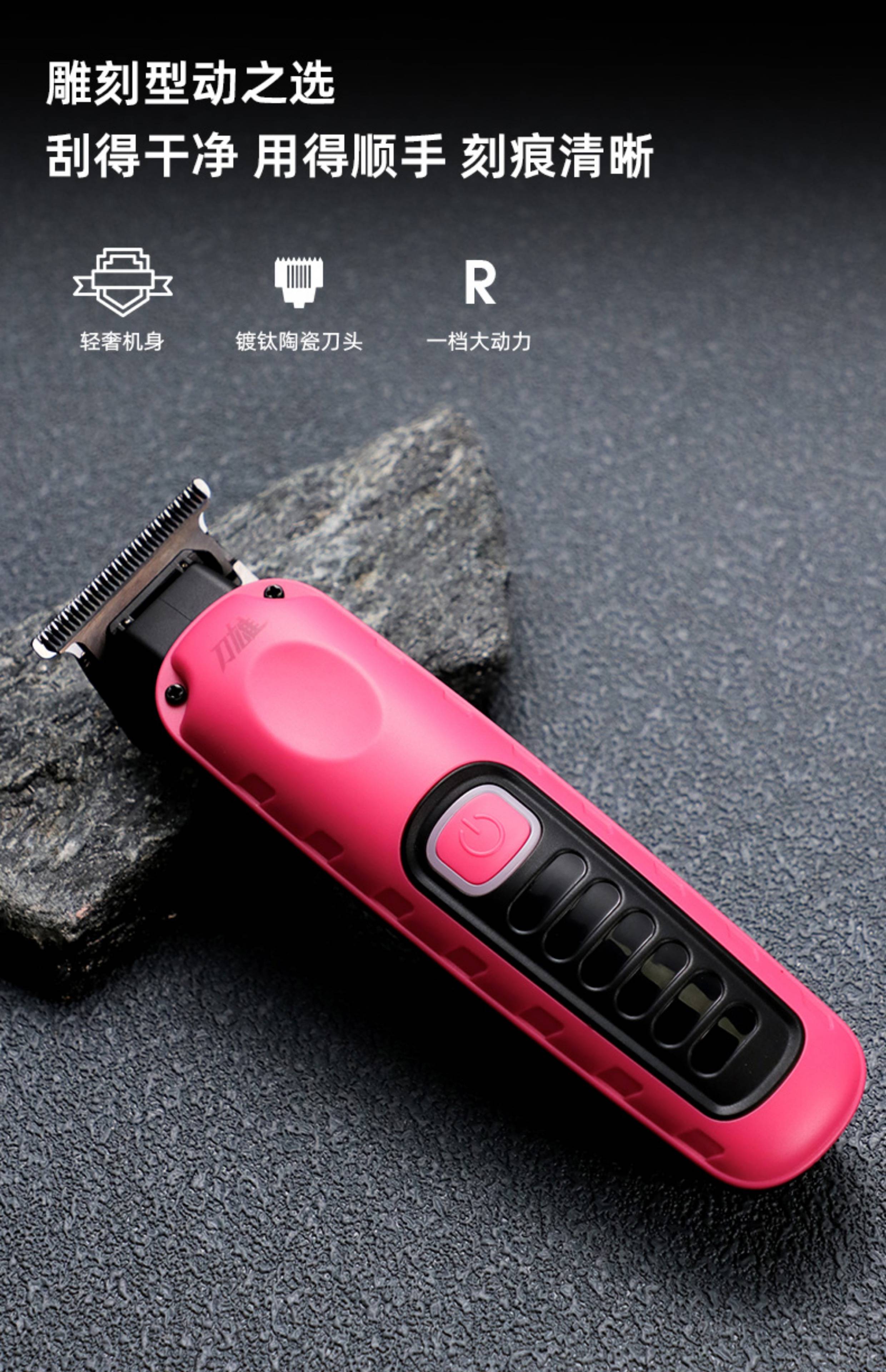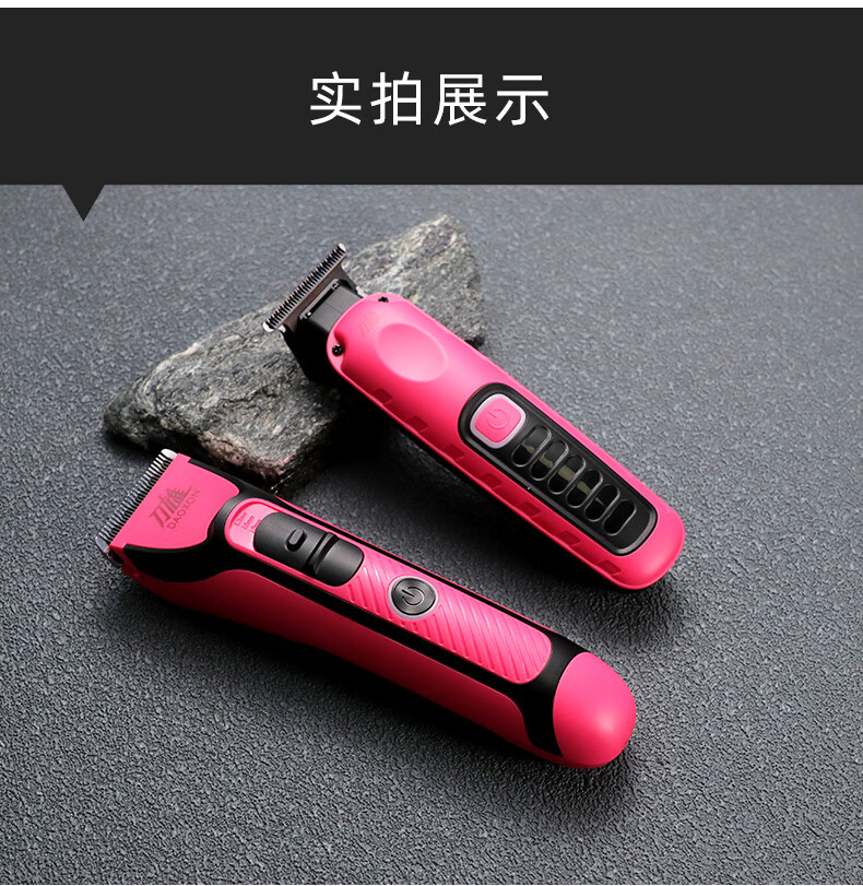 刀雄理发器套装电推剪油头雕刻推发型师大电池电推子家用快剪剪发 理发器两件套粉色 无规格