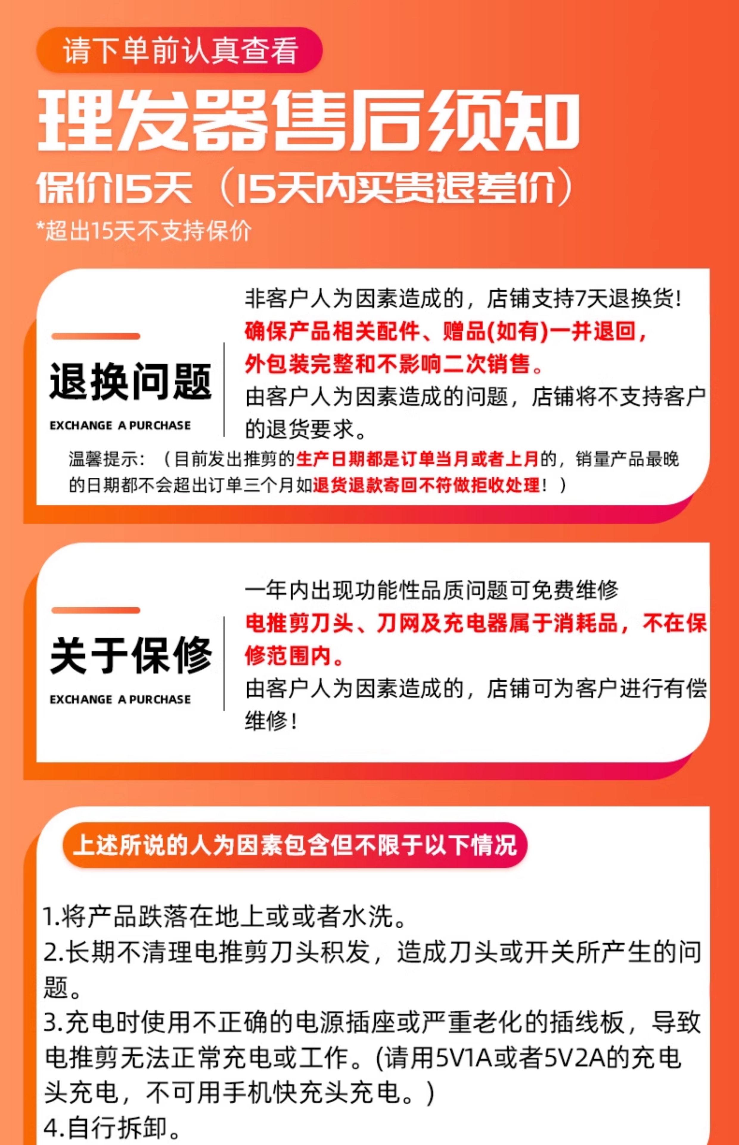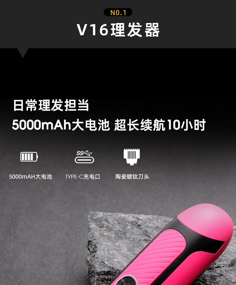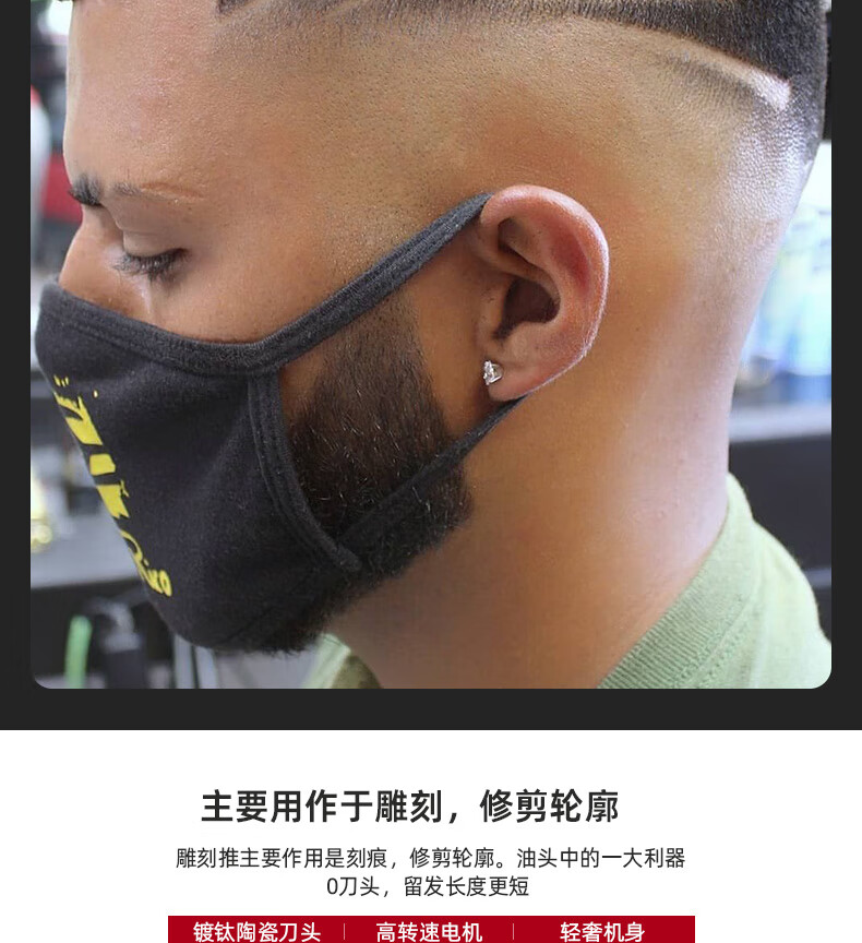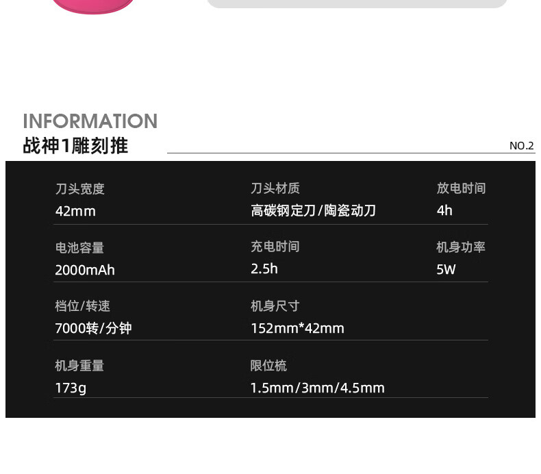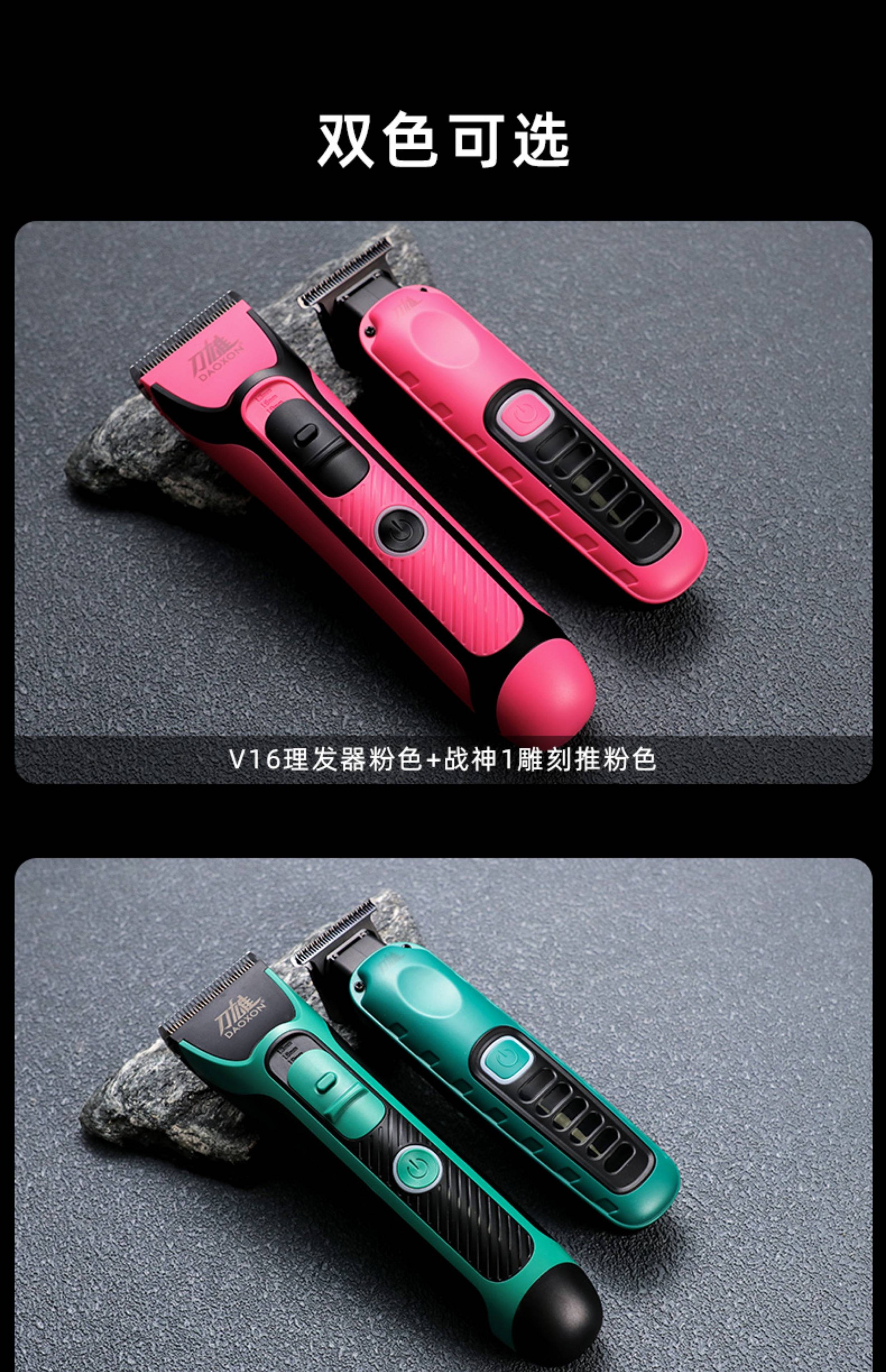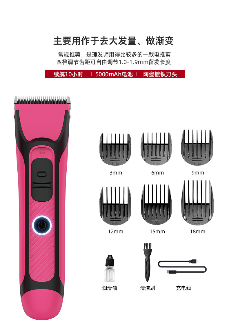 刀雄理发器套装电推剪油头雕刻推发型师大电池电推子家用快剪剪发 理发器两件套粉色 无规格