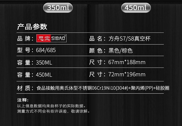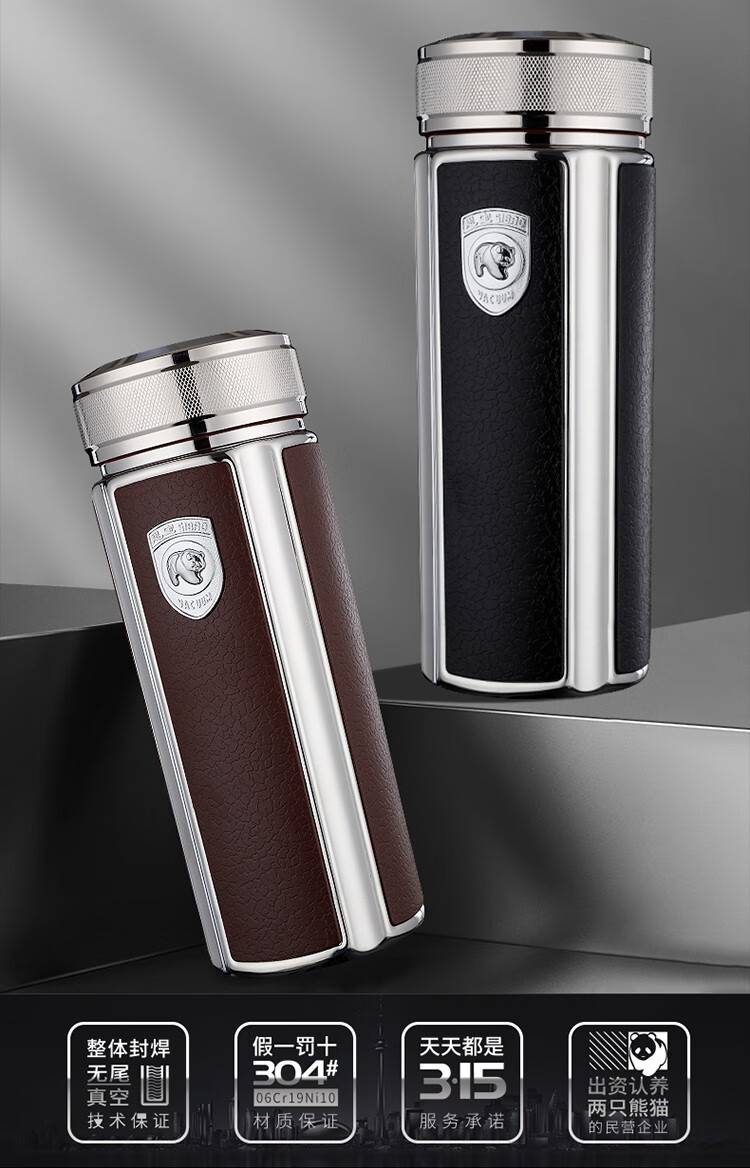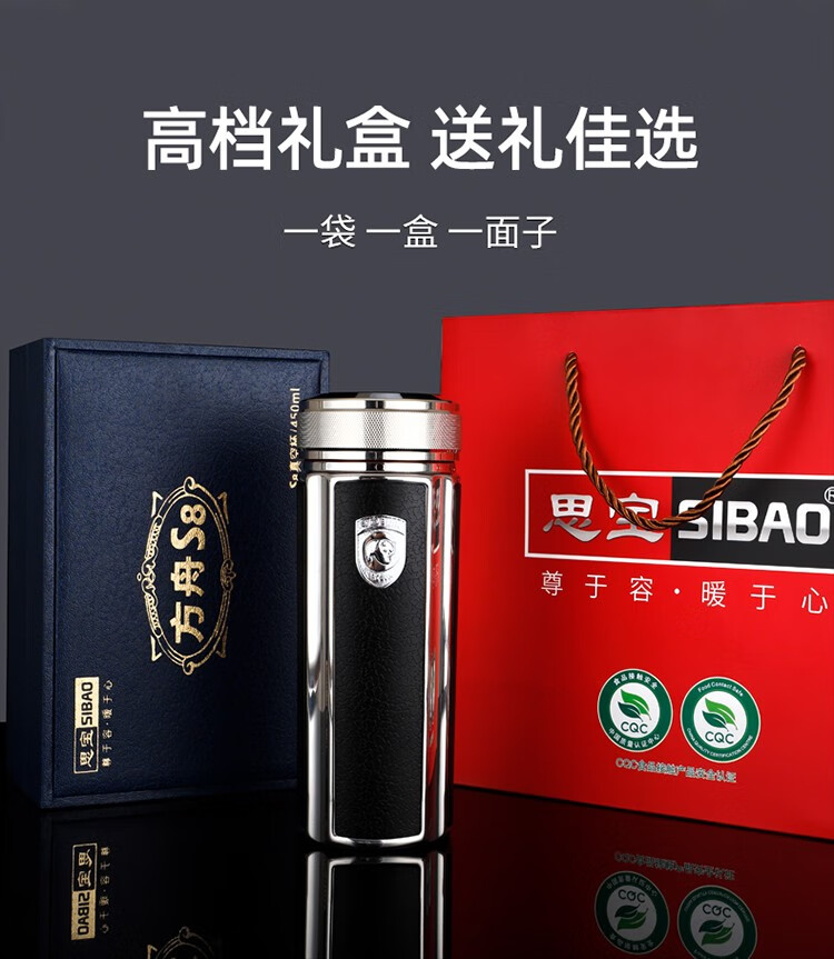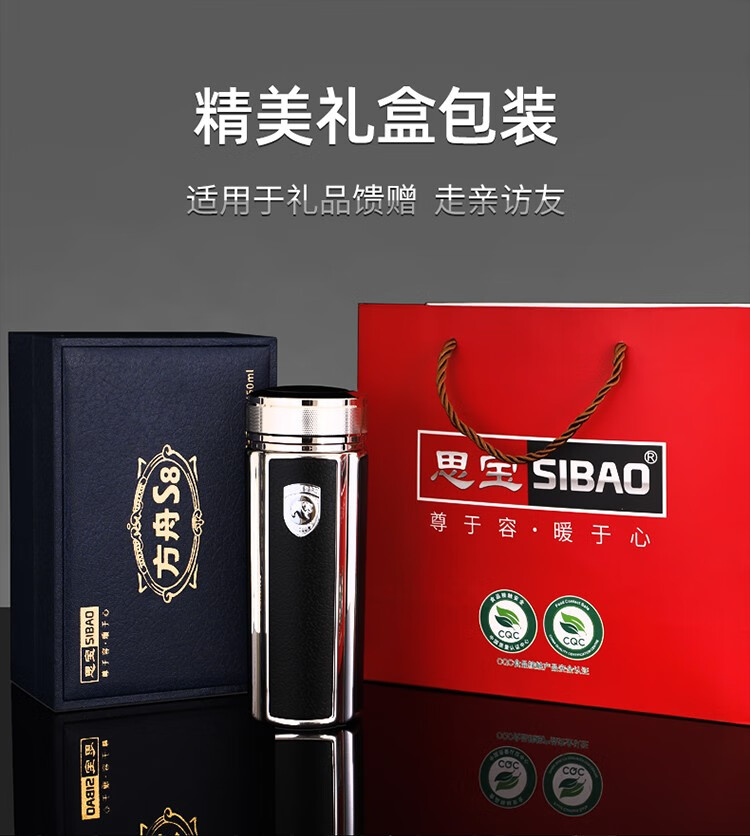 思宝(SIBAO) 保温杯方舟S8保温水杯男士茶杯商务办公室泡茶杯子团购定制 棕色【礼盒包装】350ml
