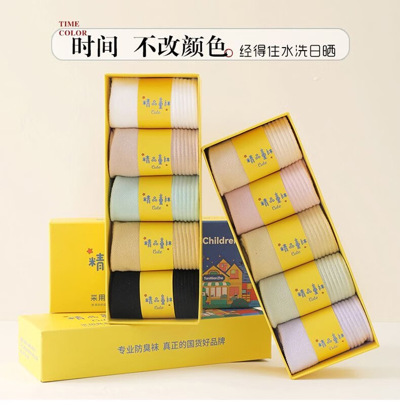 京严选春秋冬款儿童袜子四季通用宝宝中筒袜男童女童长筒棉袜小孩中大童 女【奶白+蓝+卡其+紫+粉】 5双 XL 8-13岁【32-35码】