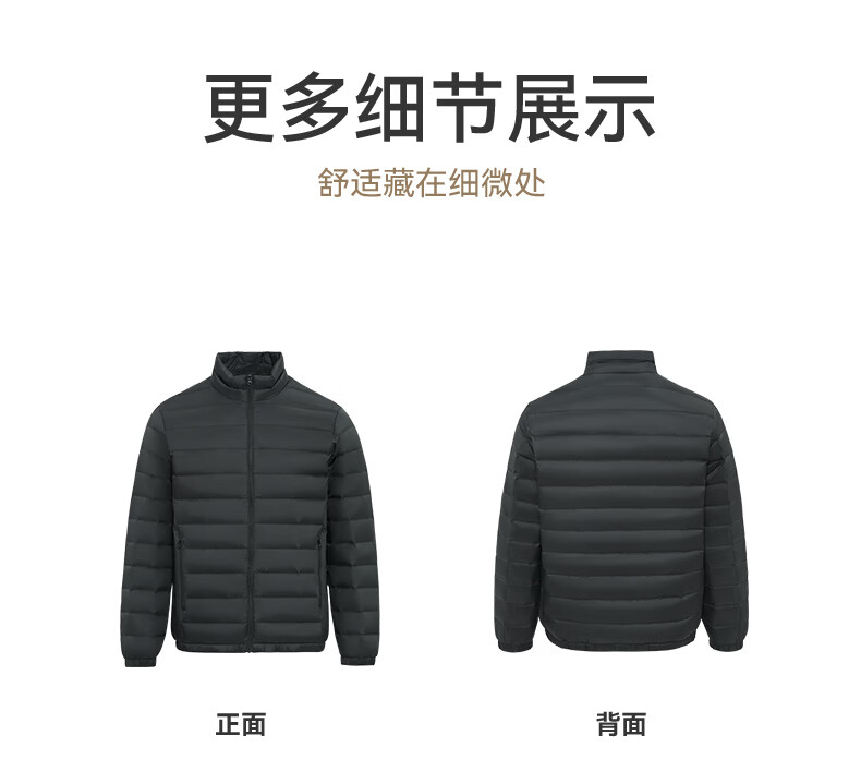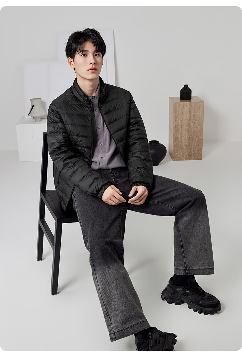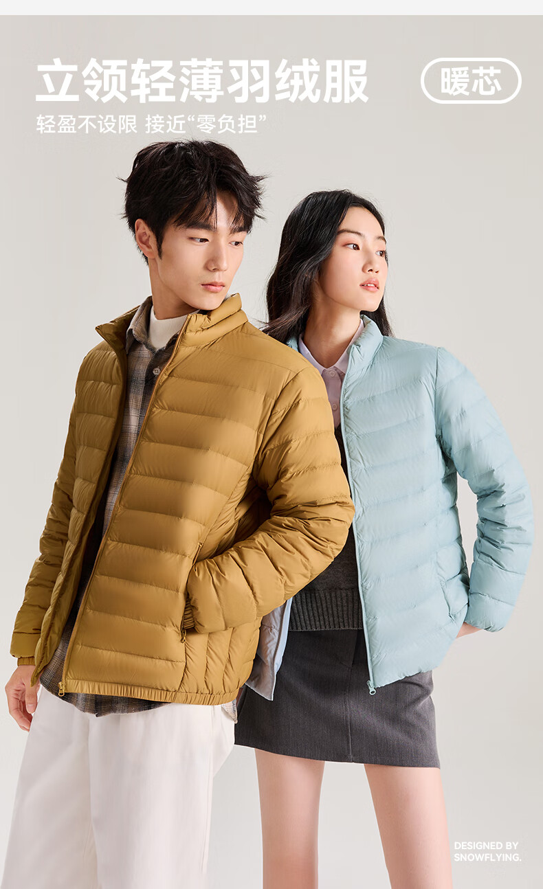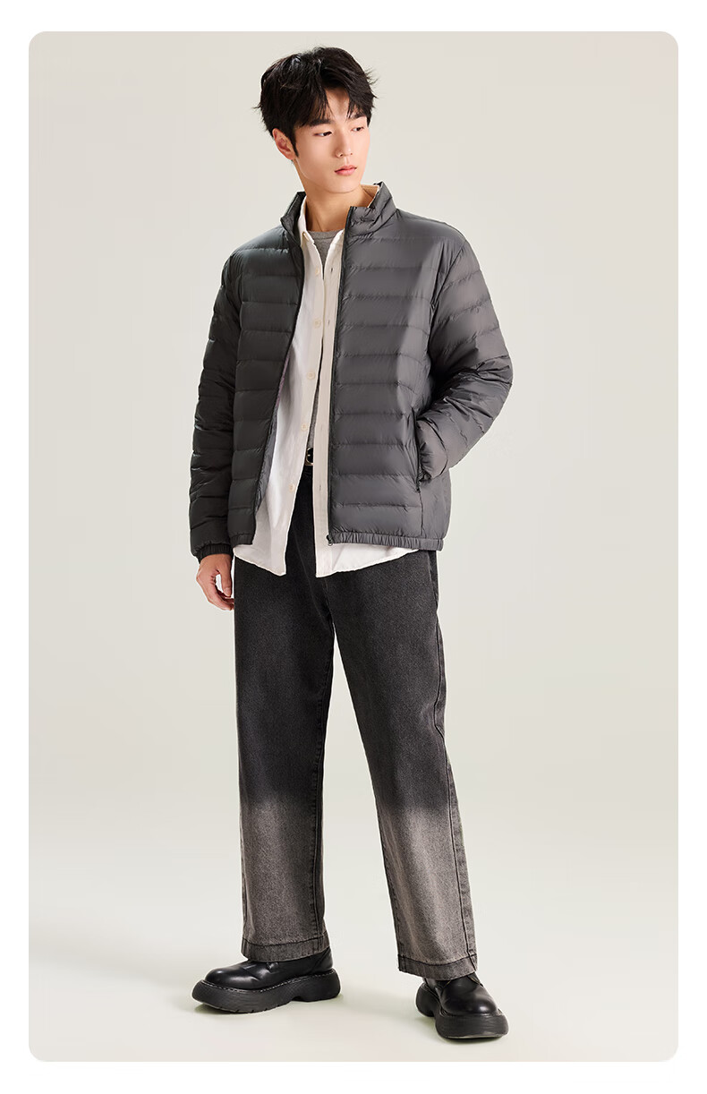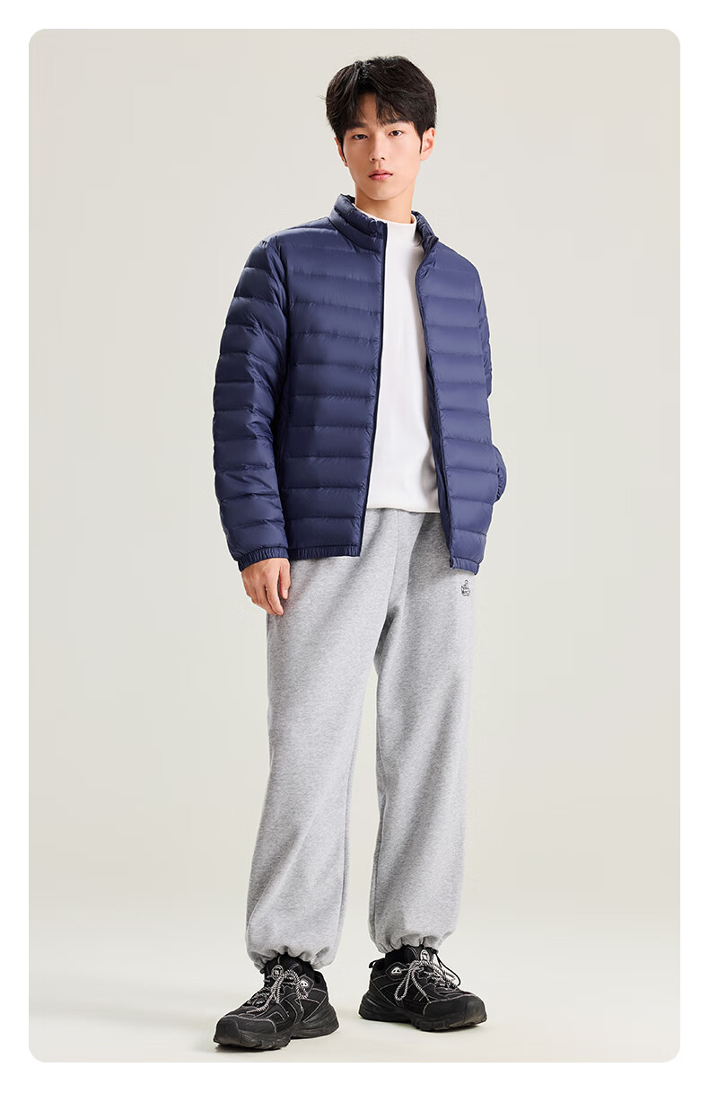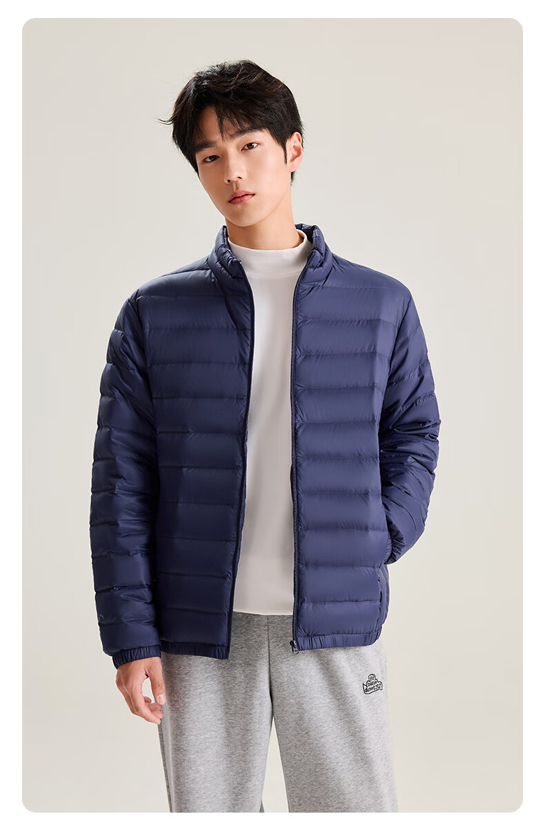 雪中飞男女立领秋羽绒百搭轻薄鸭绒立领修身轻盈隐藏式口袋 宝石黑|8086-男 L 175/96A