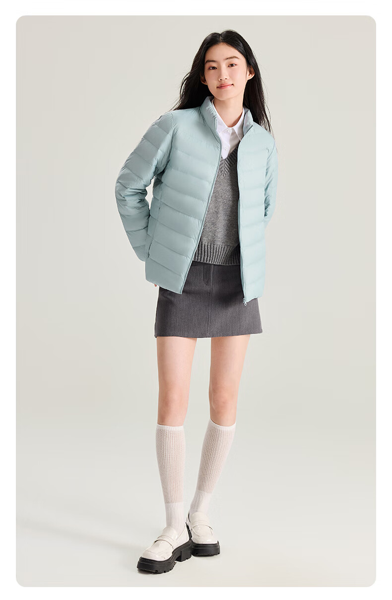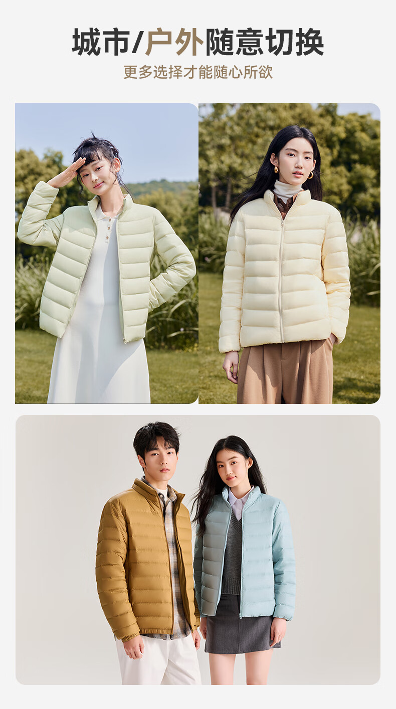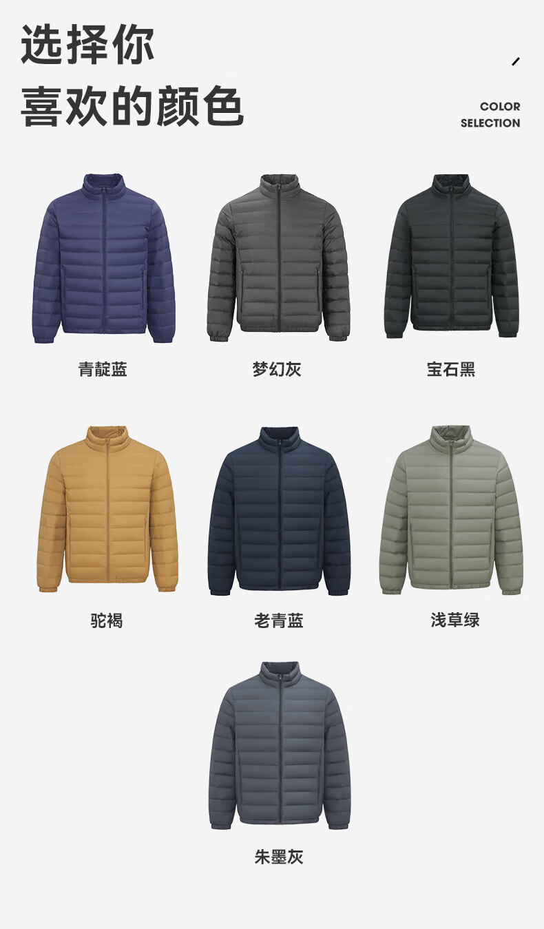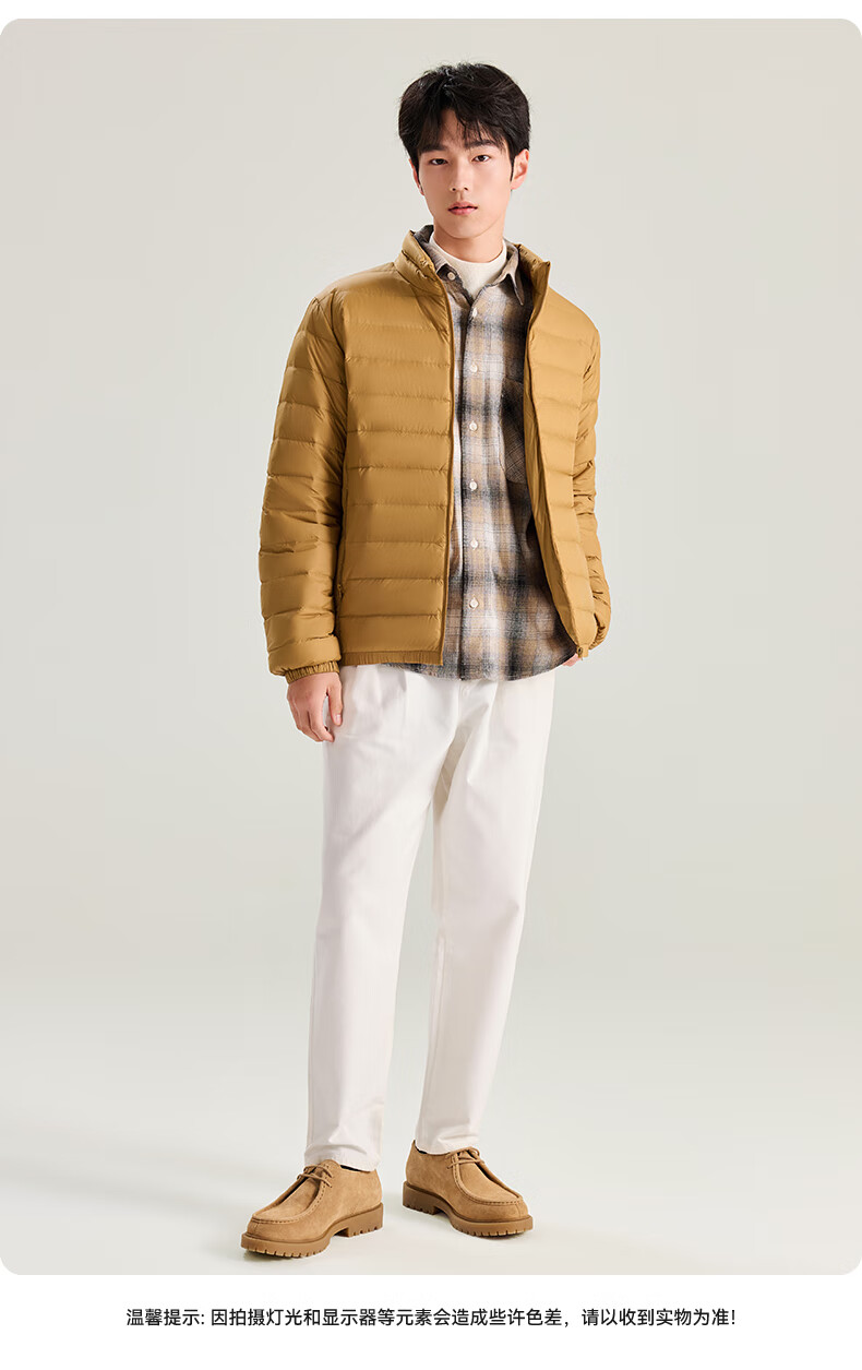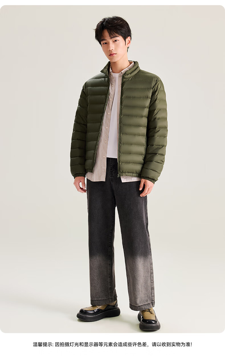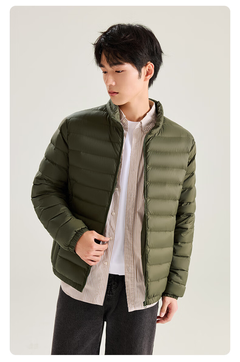 雪中飞男女立领秋羽绒百搭轻薄鸭绒立领修身轻盈隐藏式口袋 宝石黑|8086-男 L 175/96A
