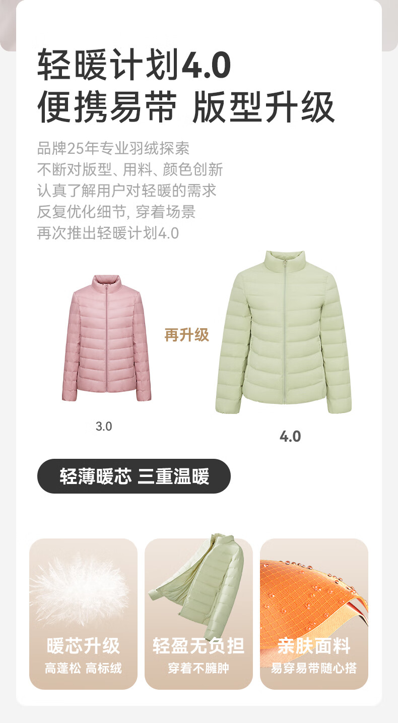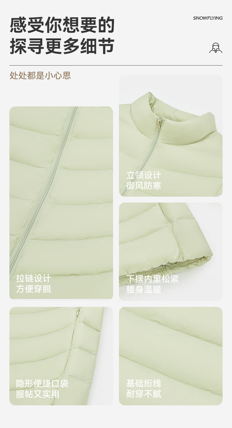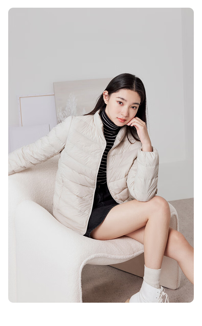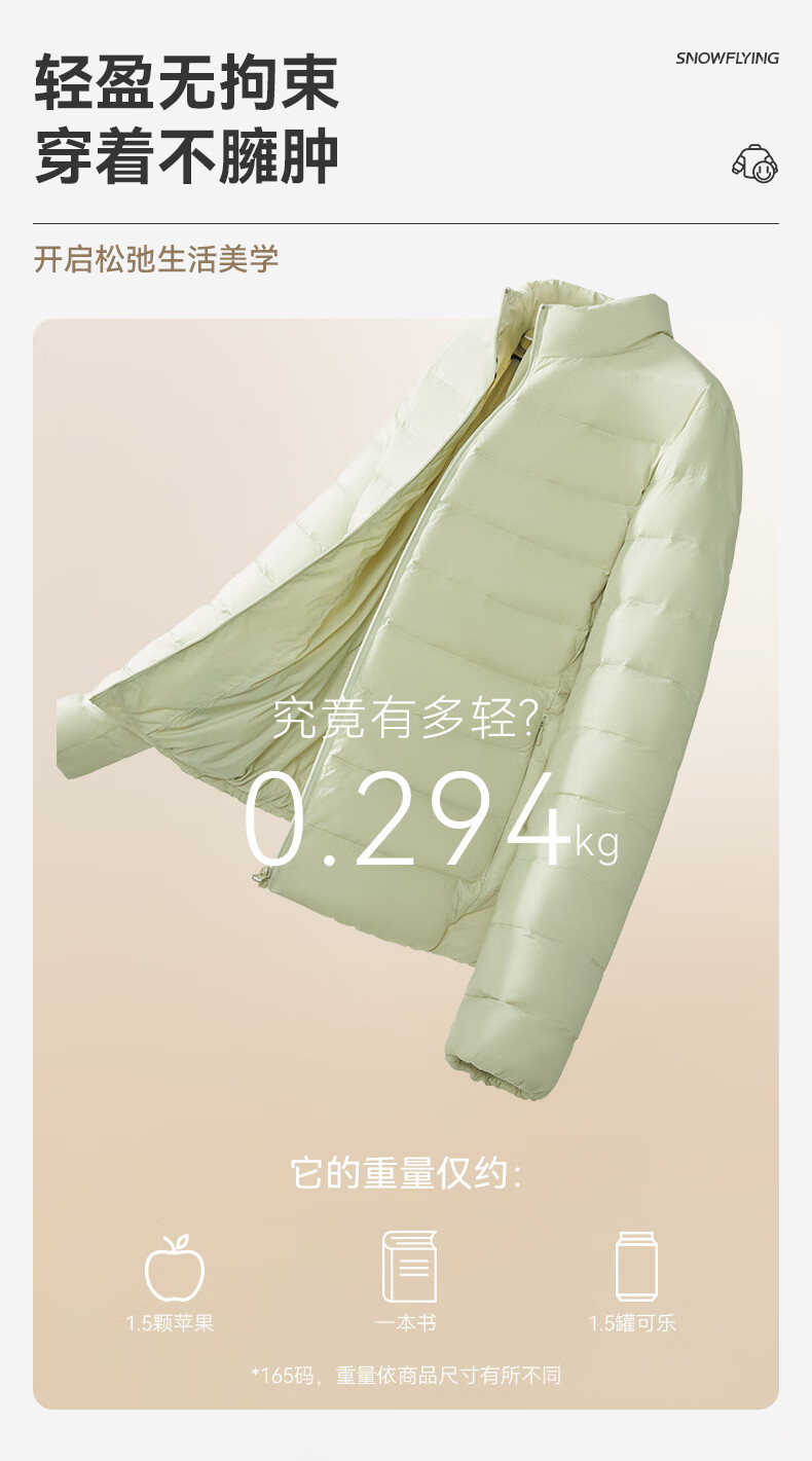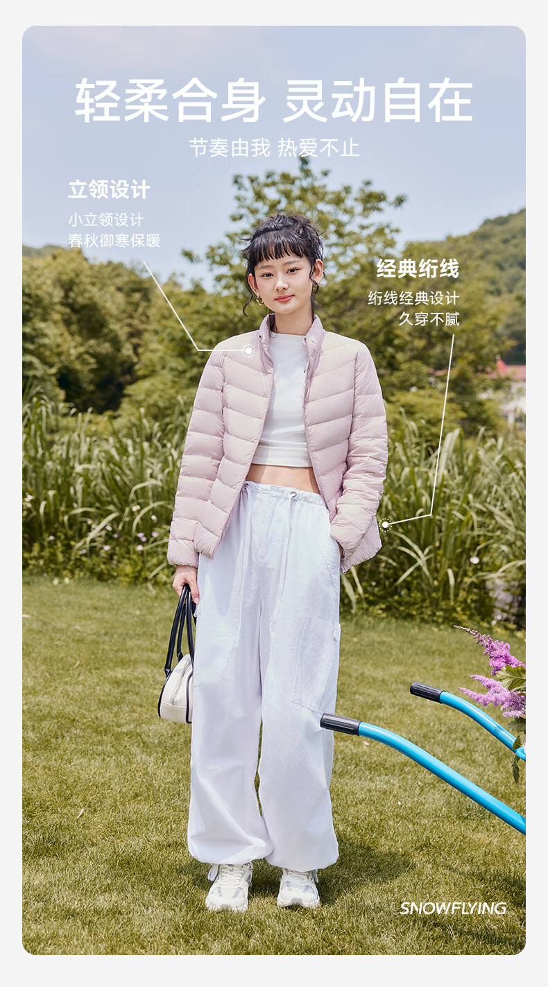 雪中飞男女立领秋羽绒百搭轻薄鸭绒立领修身轻盈隐藏式口袋 宝石黑|8086-男 L 175/96A