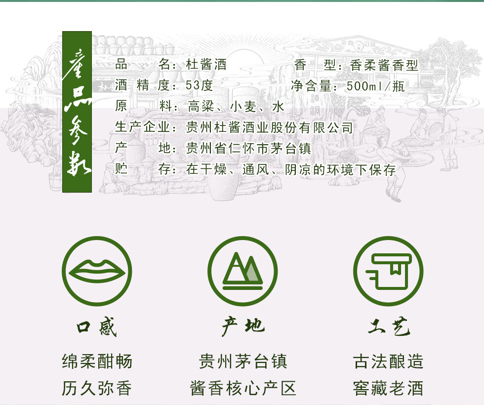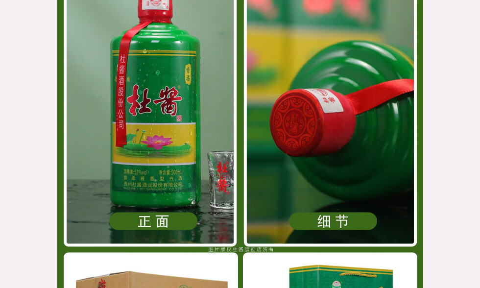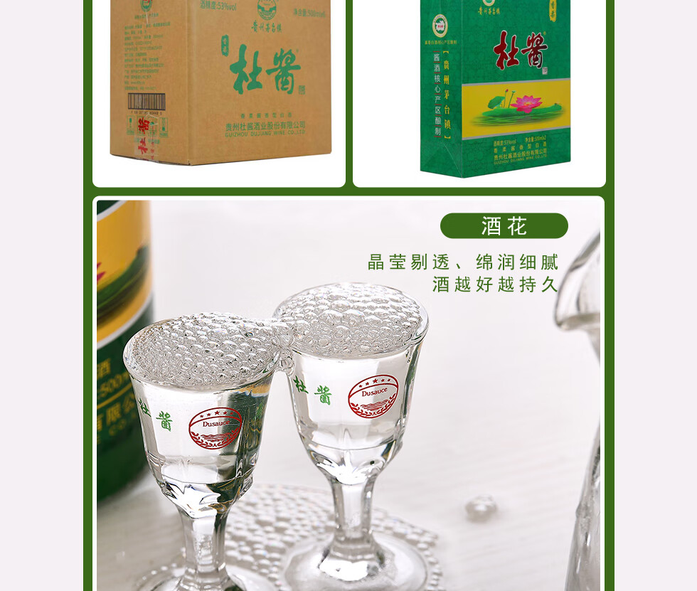 杜酱酒 茅台镇53度酱香型白酒 高粱酒 纯粮高度酒 陈酿窖藏老酒 53度 500mL 6瓶 整箱装+3手提袋