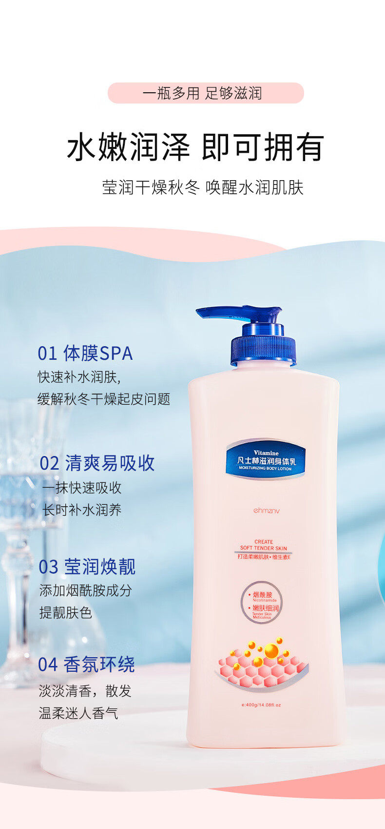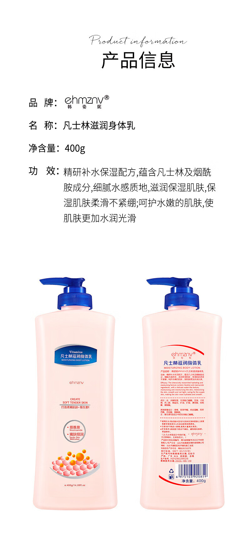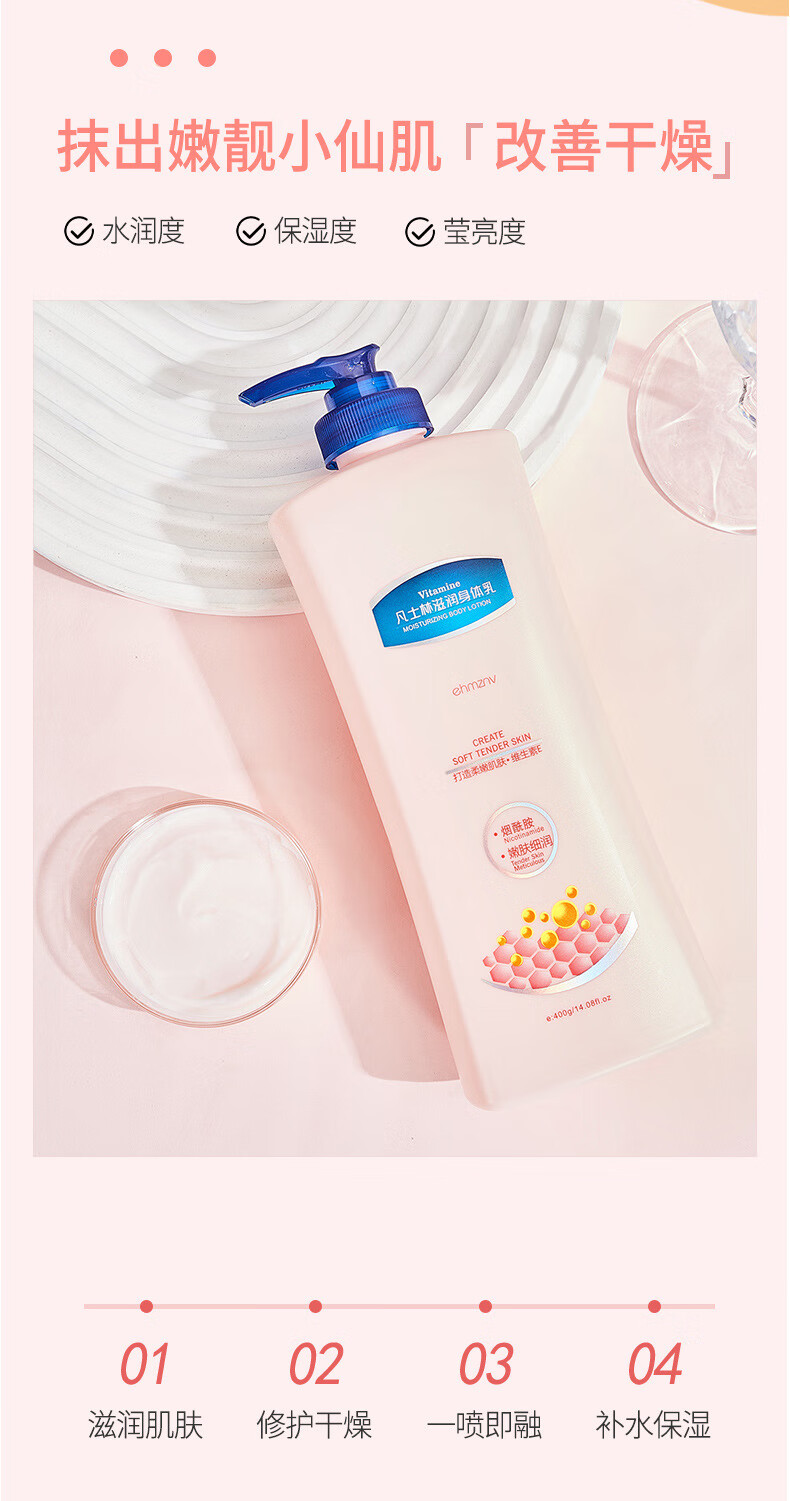 韩姿妮凡士林身体乳润肤乳补水保湿霜滋润香体防裂防干燥提靓肤色男女士 凡士林身体乳400gx1瓶