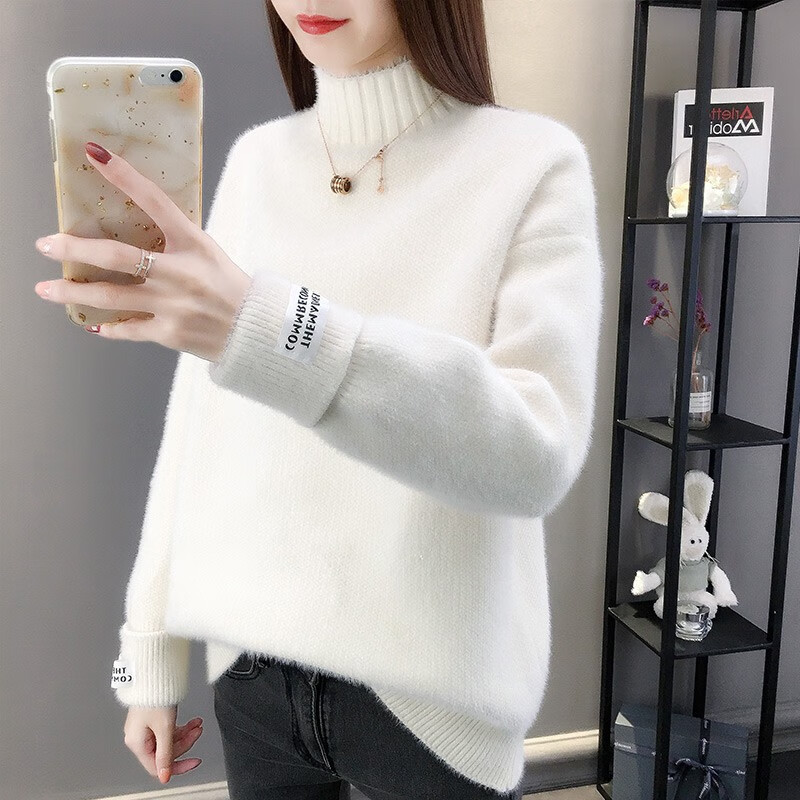 恒源祥针织衫女打底衫羊毛衫毛衣女套头秋冬20秋季新款外套新品半高领 白色 均码
