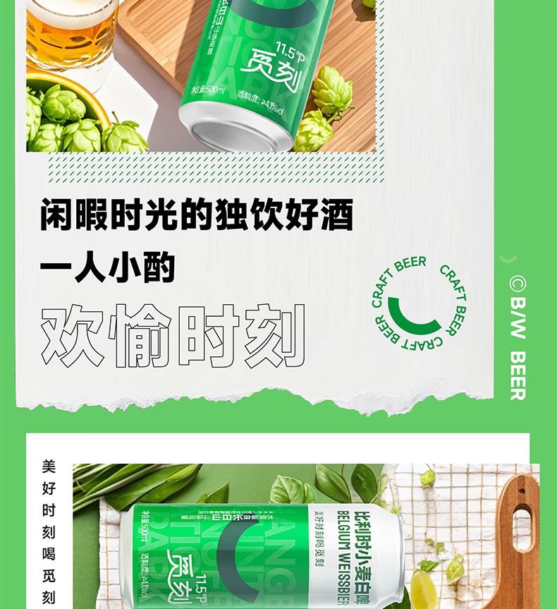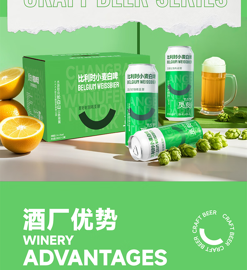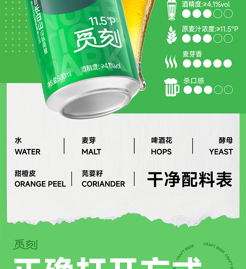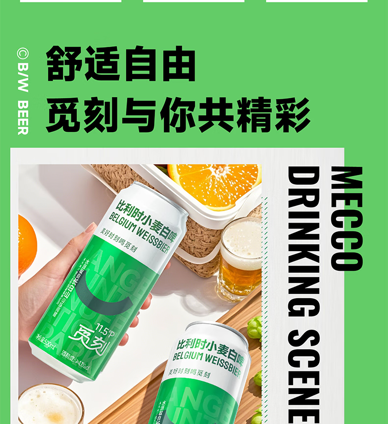 觅刻比利时小麦精酿白啤酒全麦原浆水果香500ml*3分享装麦香浓郁