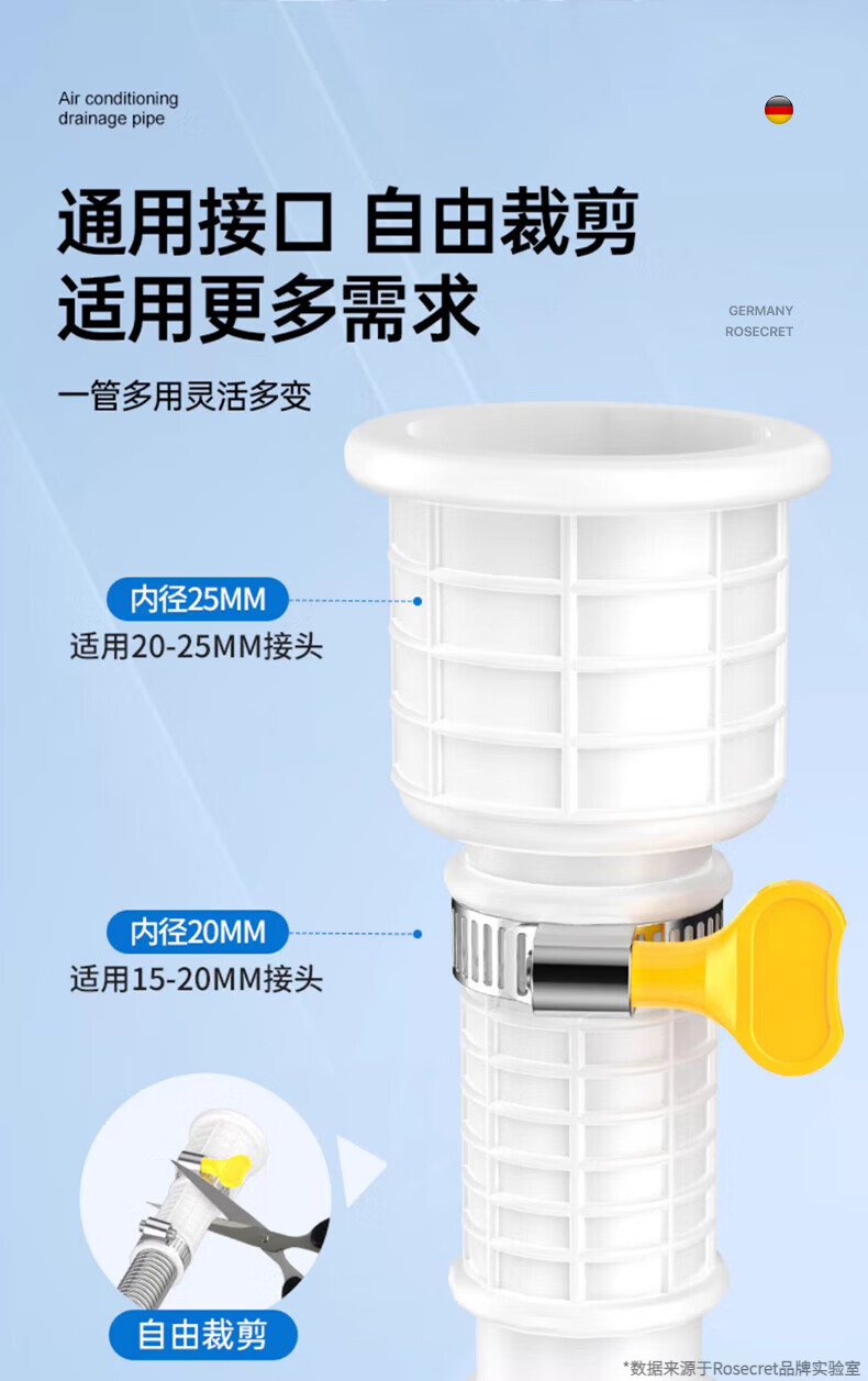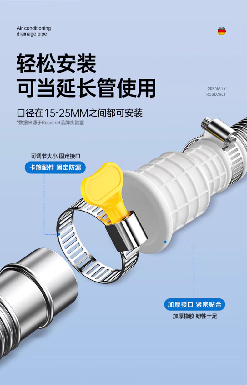 Rosecret【德国】304不锈钢空调排水管延长管抗老化通用冷凝滴出水管家用 空调排水管1.5米【防晒抗冻不老化】 多品牌空调通用安装