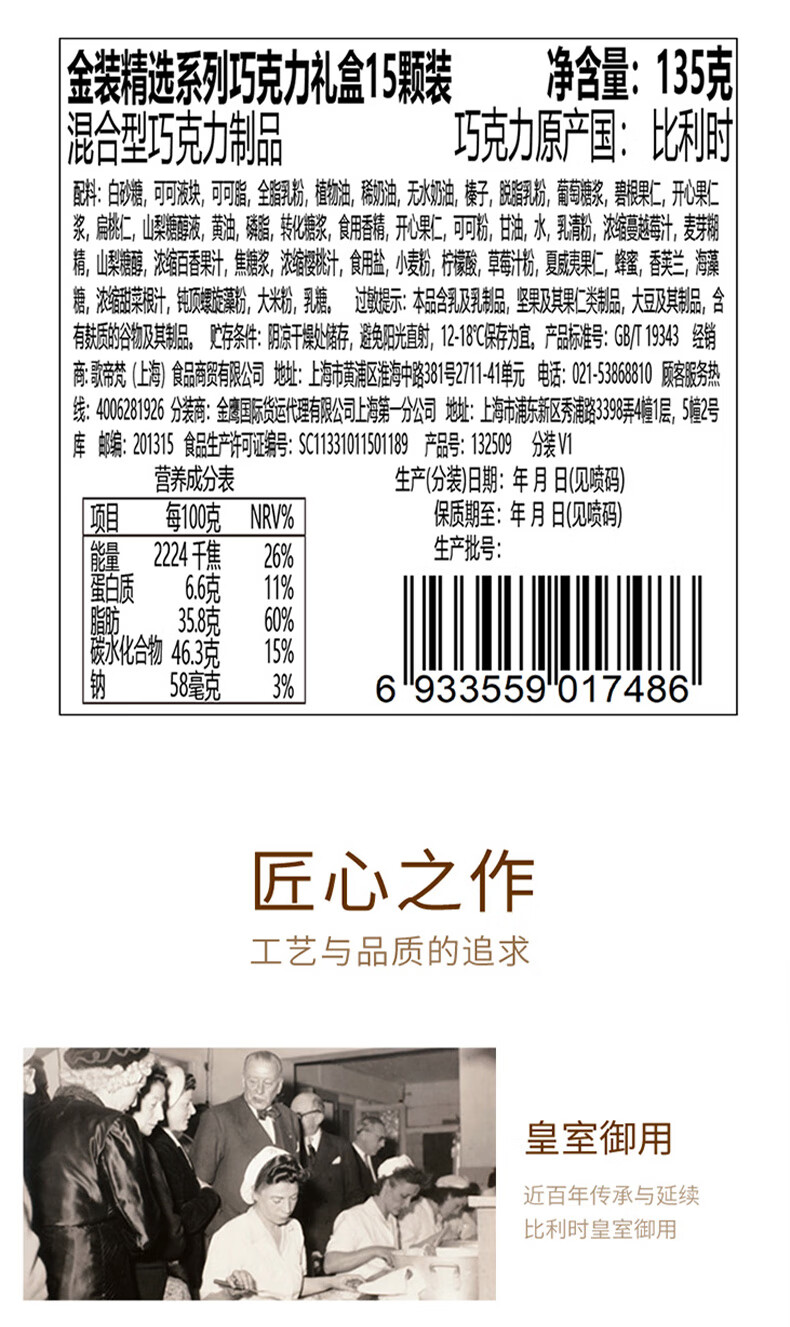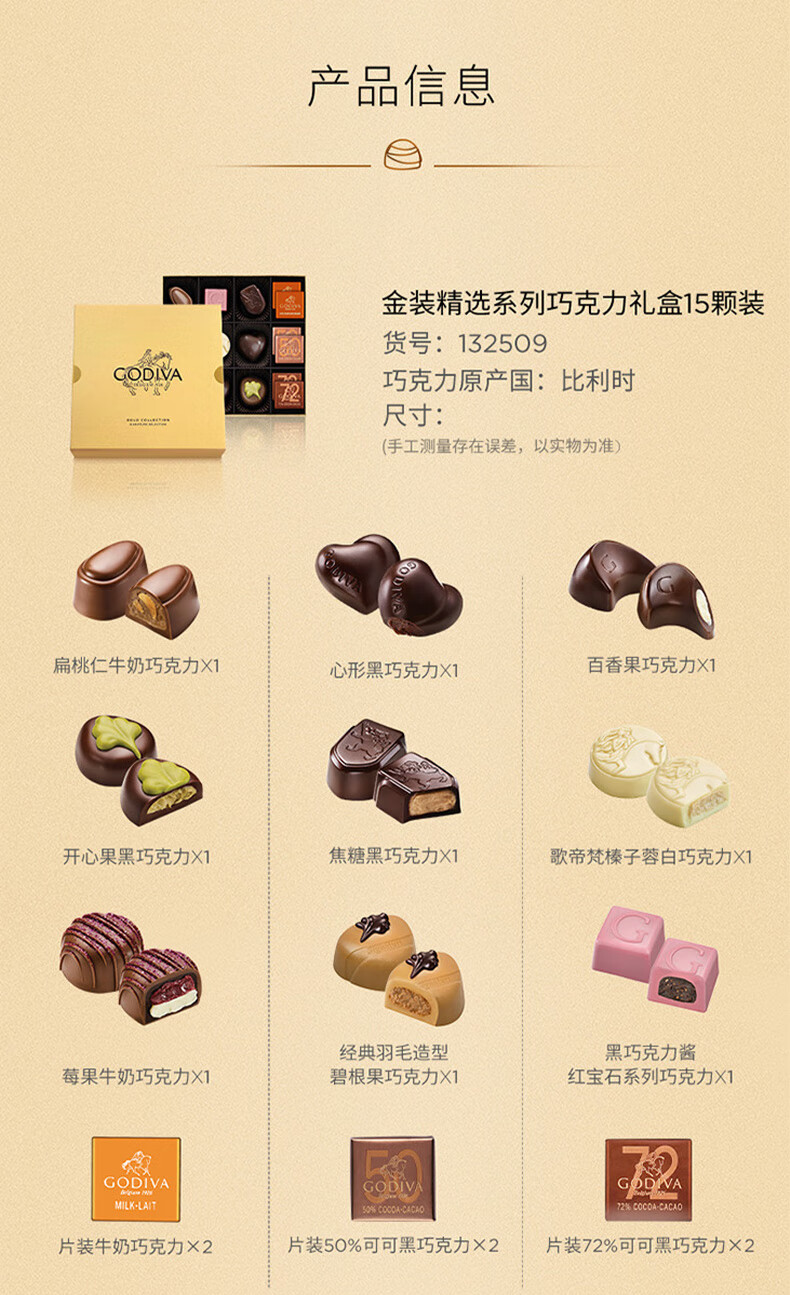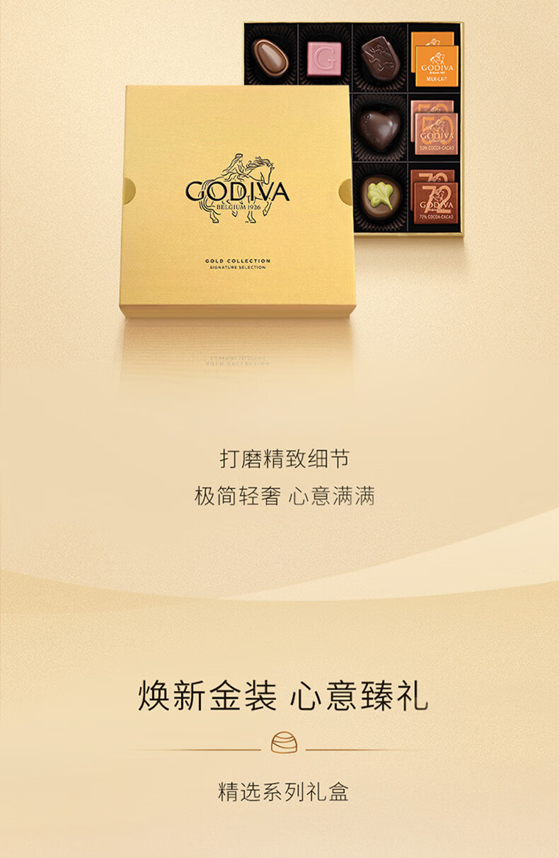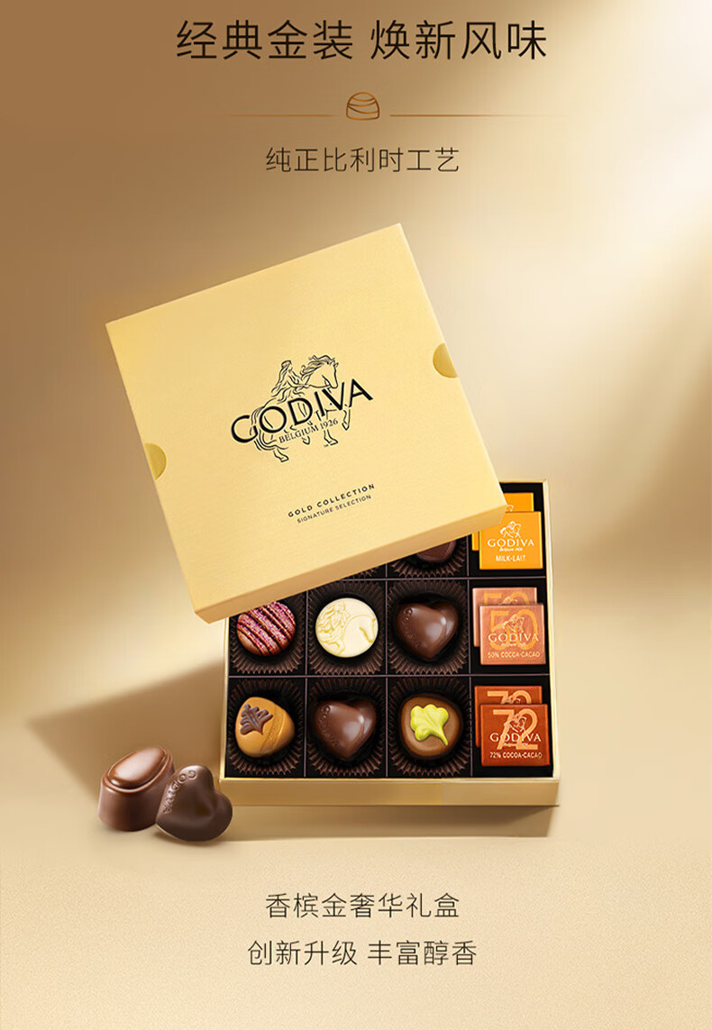 歌帝梵(GODIVA)金装精选系列巧克力礼盒 15颗装 135g 万圣节 休闲零食 捣蛋糖果