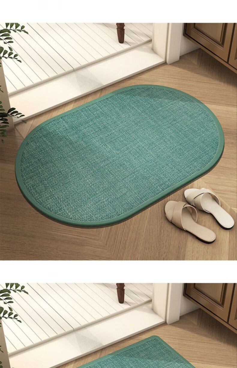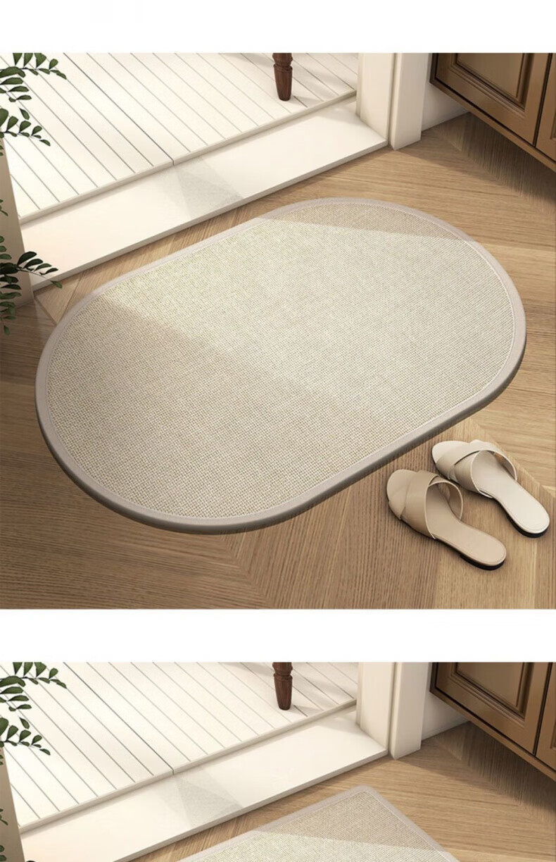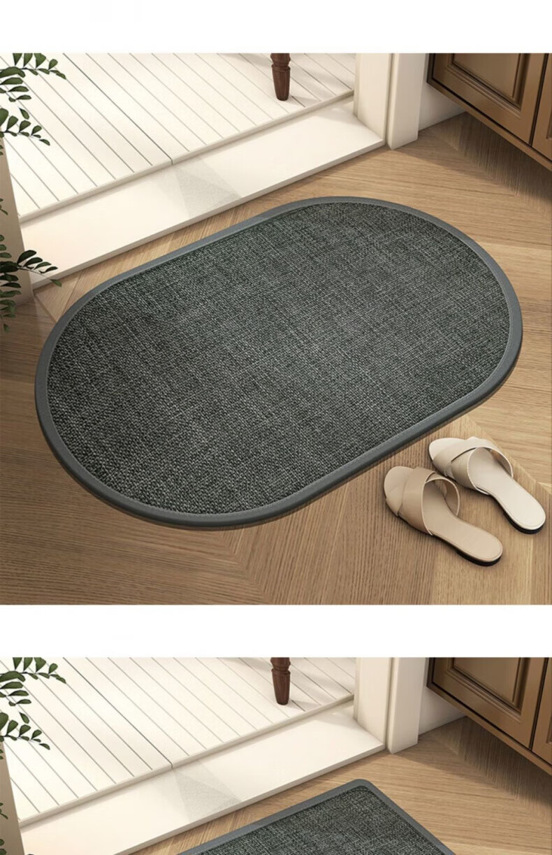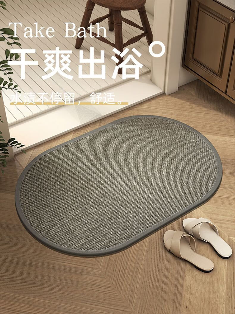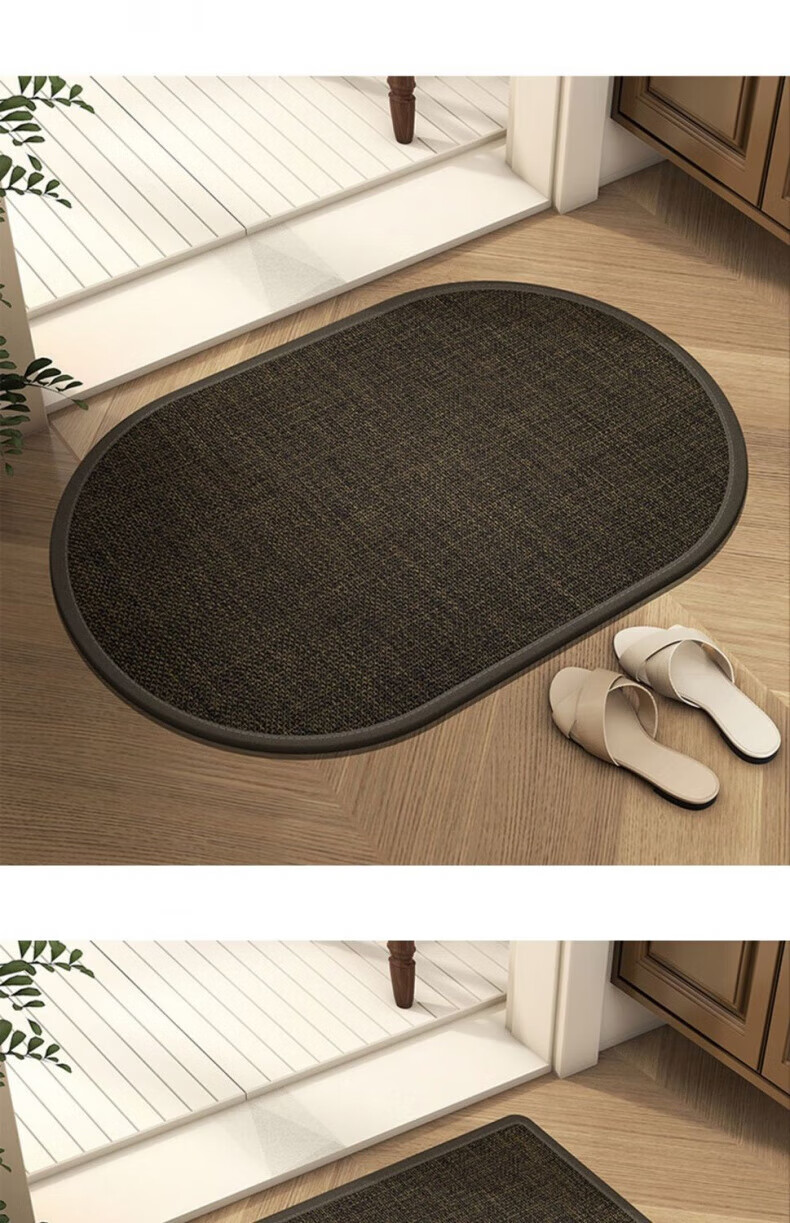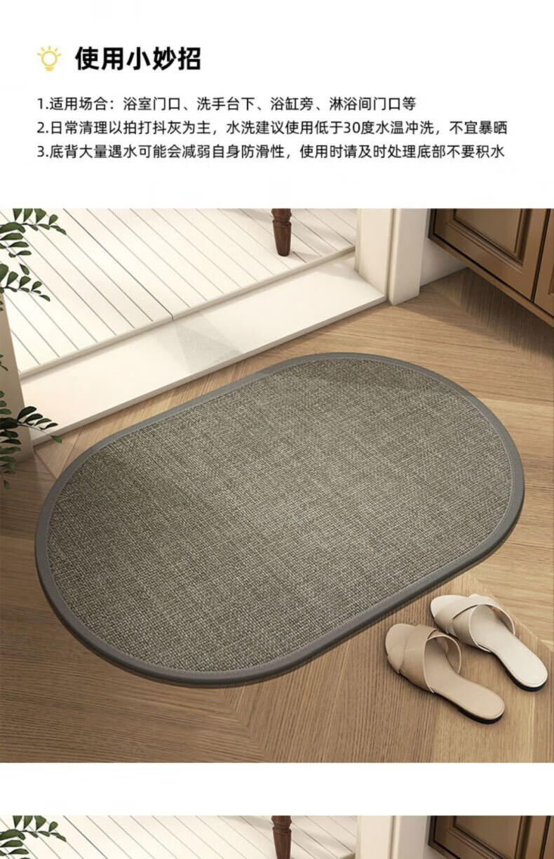 DEATKN德国卫生间地垫亚麻编织浴室吸水地毯厕所防滑脚垫门口洗手间洗澡 檀木深咖椭园一编织亚麻【硅藻泥橡胶底】 40cm*60cm 吸水I品质