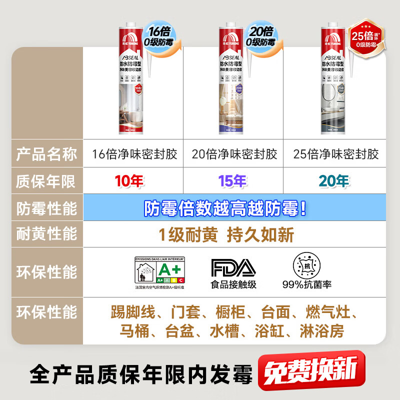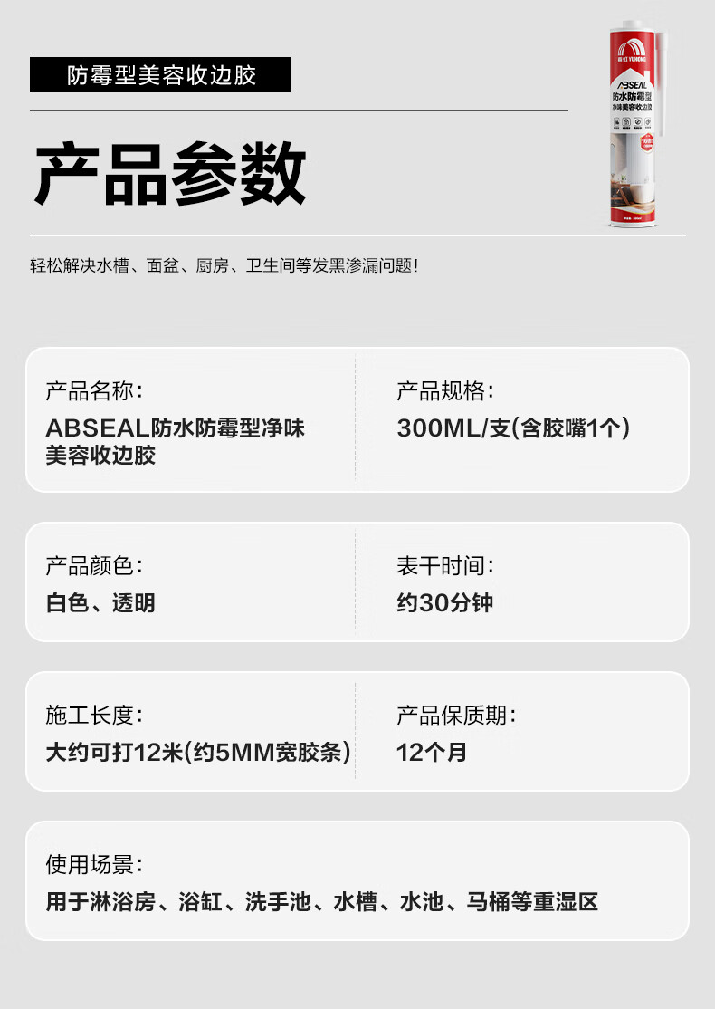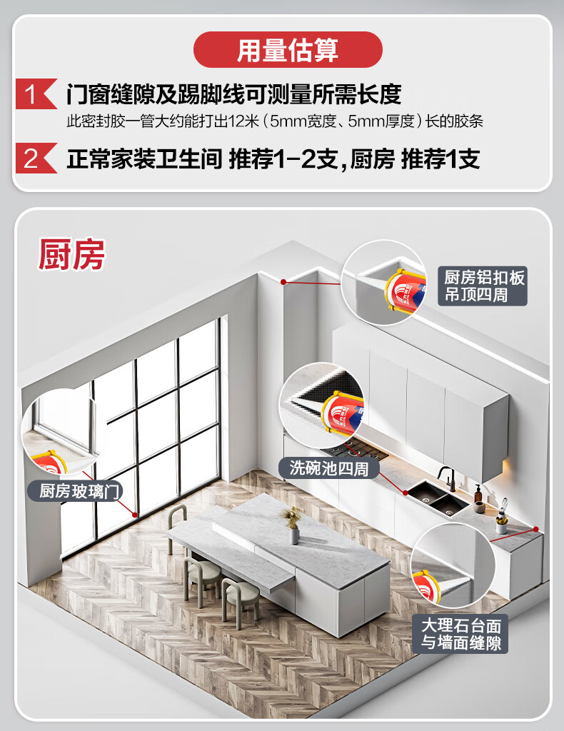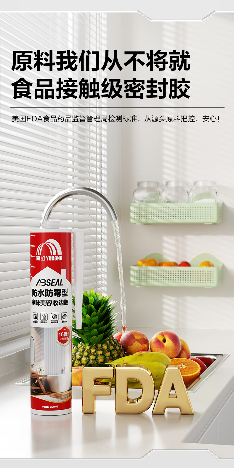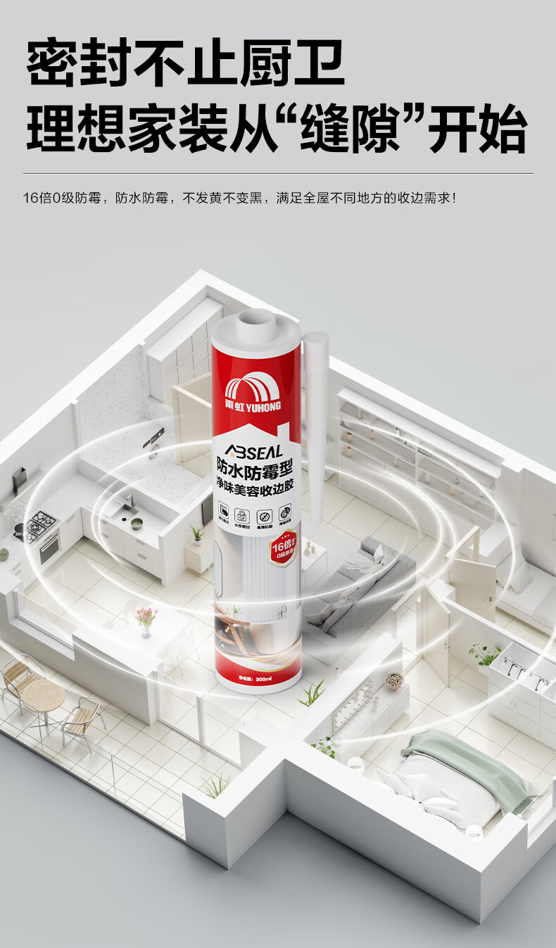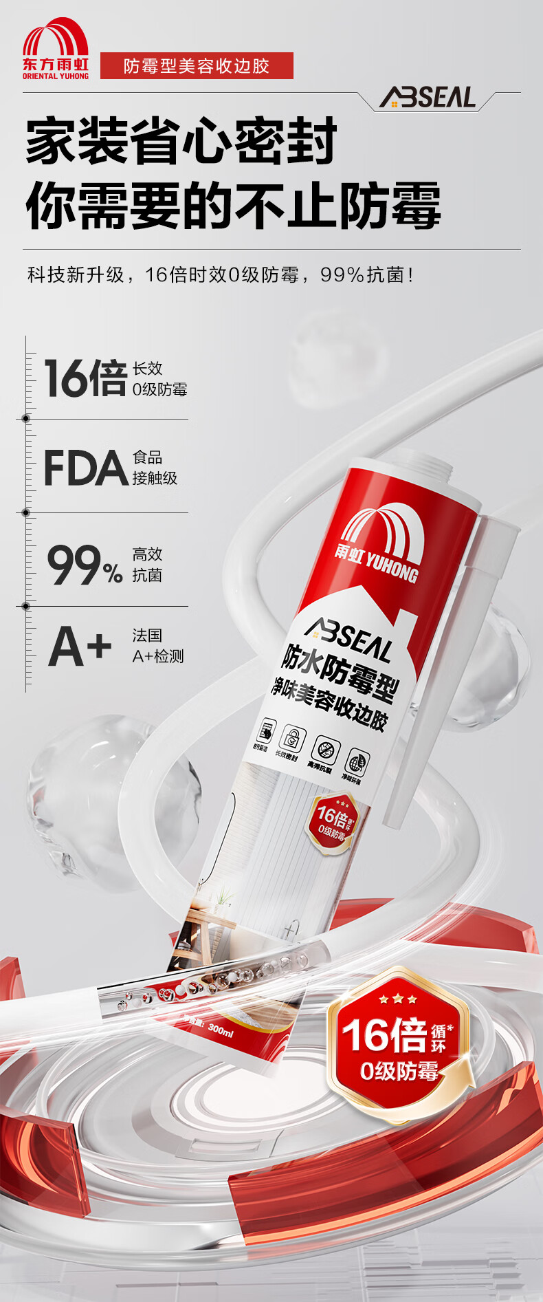 雨虹防水 16倍时效0级防霉玻璃胶 厨卫专用密封胶美容胶 透明300ML
