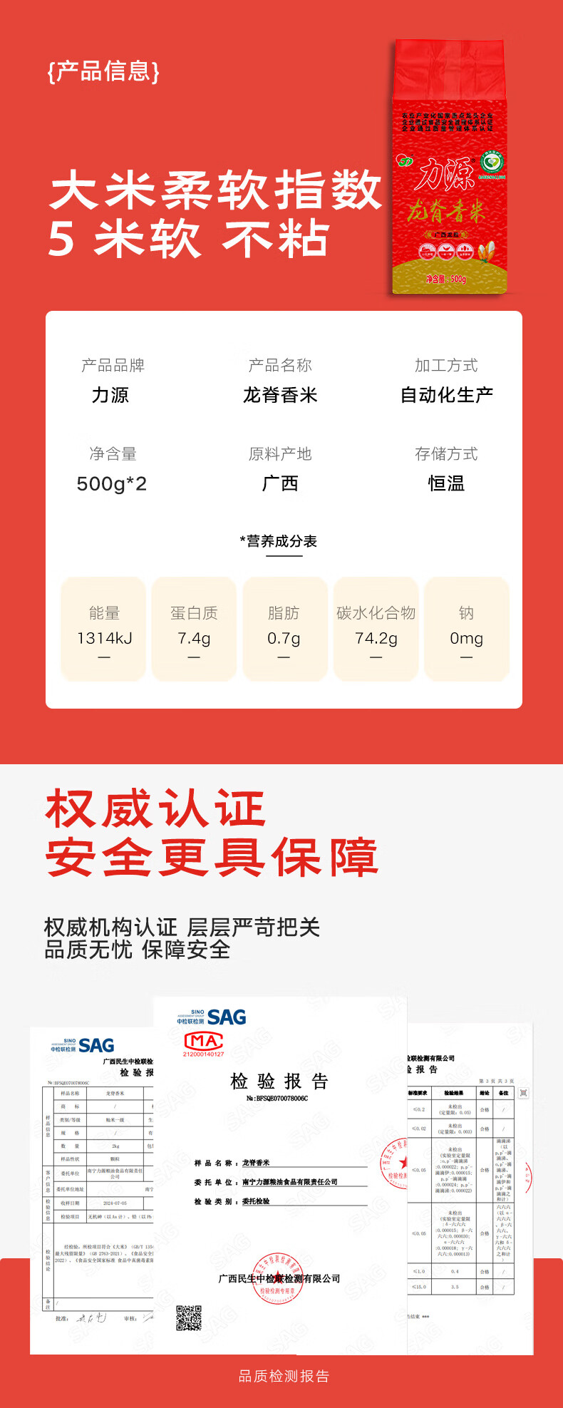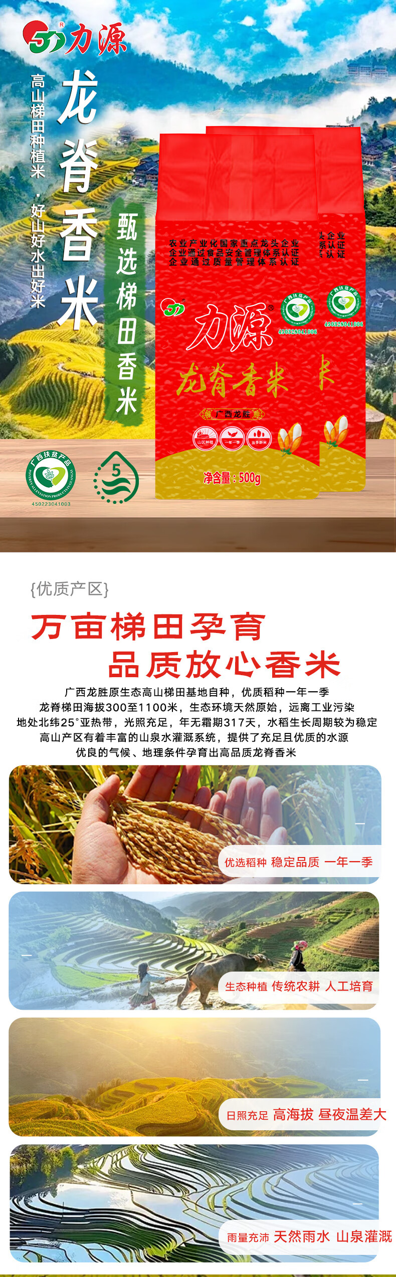 力源龙脊香米2斤 梯田大米丝苗米广西一级籼米500g*2 源头直发 包邮