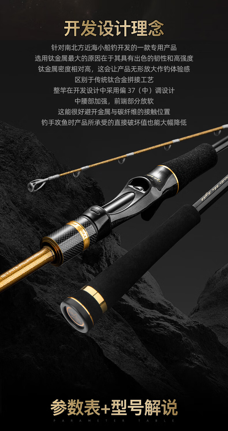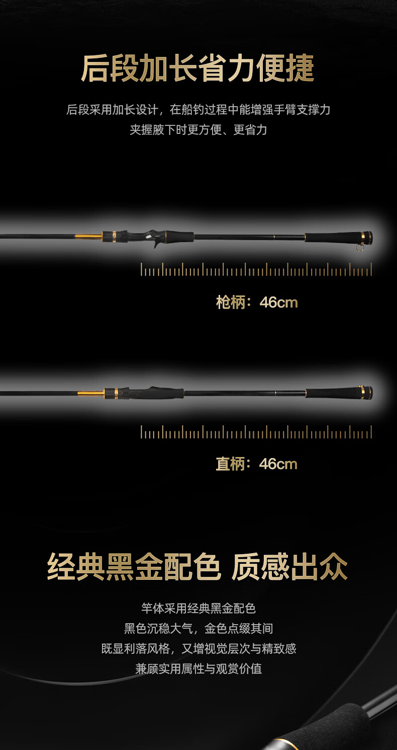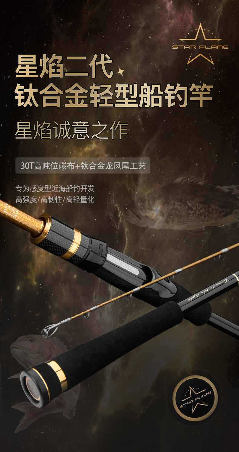 伊酷达(ECOODA)星焰二代钛合金轻型船钓竿近海小船竿船筏海钓杆底钓拉流黑黄八带 35号2.05米枪柄(负荷15-50#/PE:1.0-3.0号/钓力6kg)