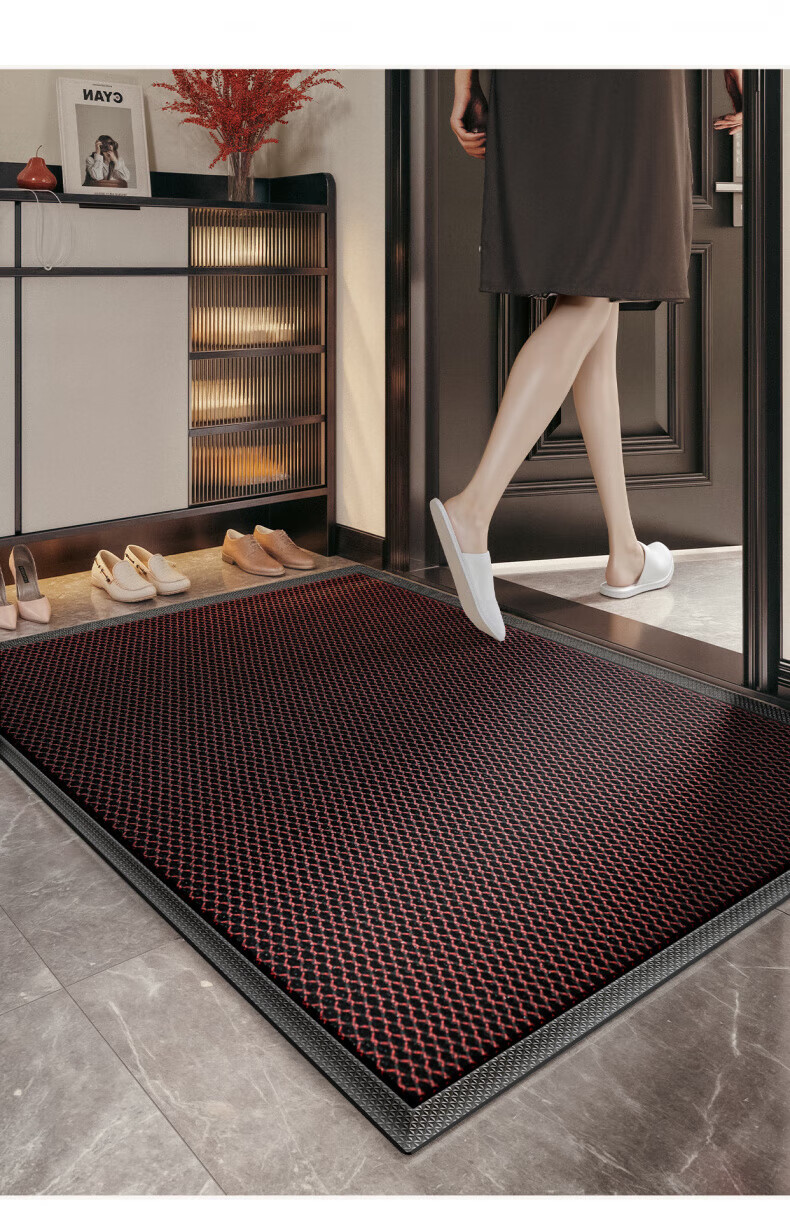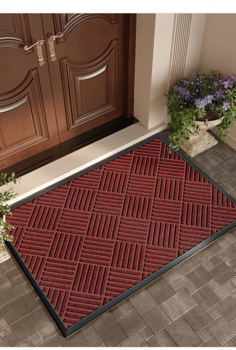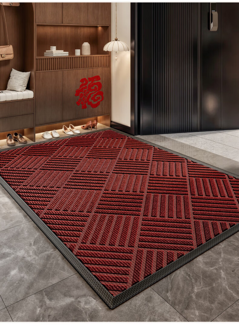 AILUKI日本别墅入户门地垫家用大门口防滑脚垫门垫室外进门地毯门外垫子 弹力网-典雅红【刮沙除尘】 80×120CM
