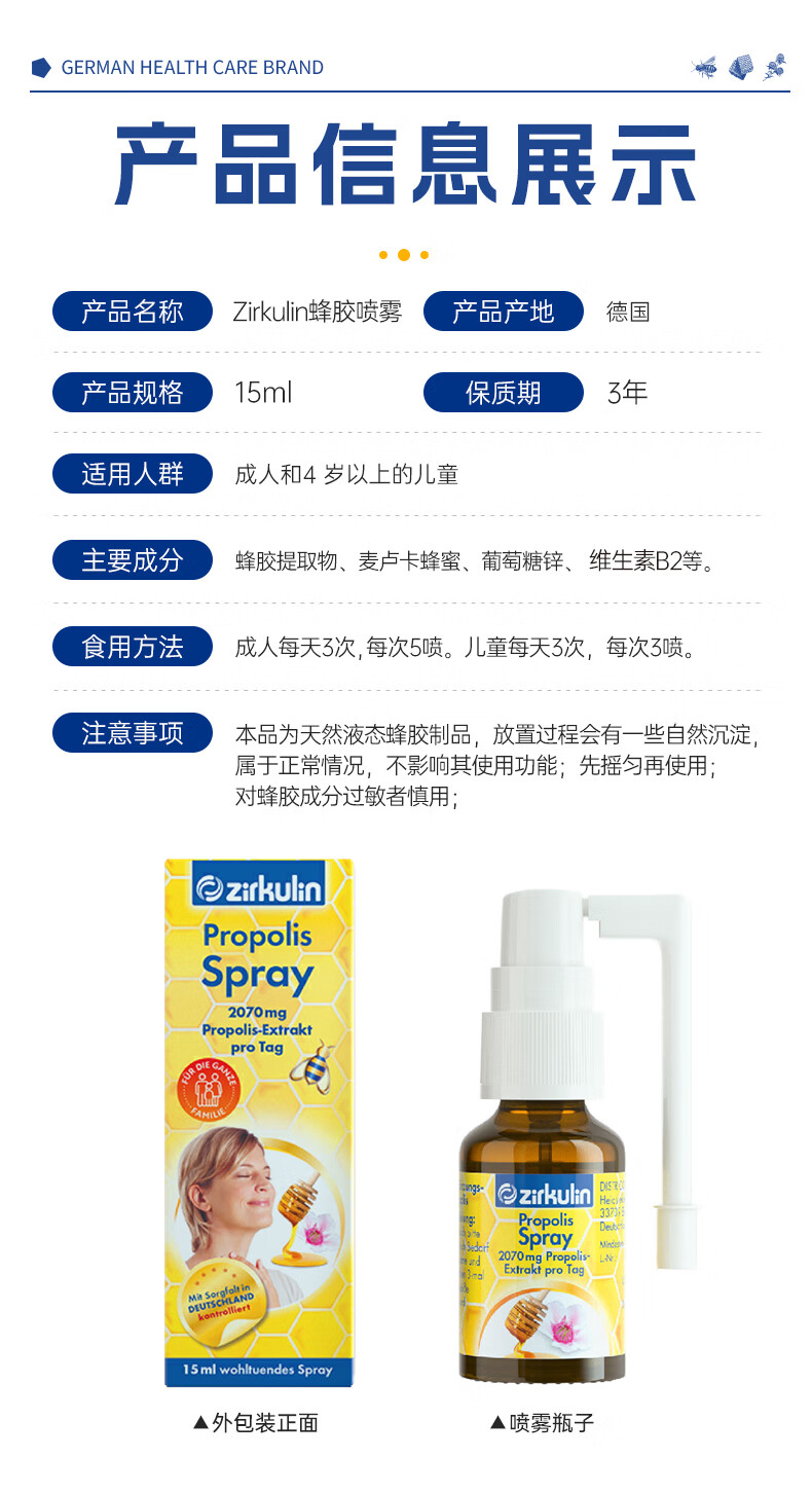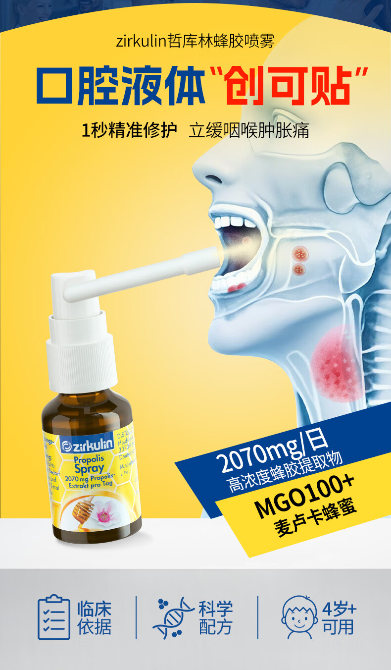 哲库林润喉蜂胶喷雾15ml德国进口慢性咽炎咽喉炎保护嗓子喉咙干痒咳嗽 【新品】15ml*1瓶
