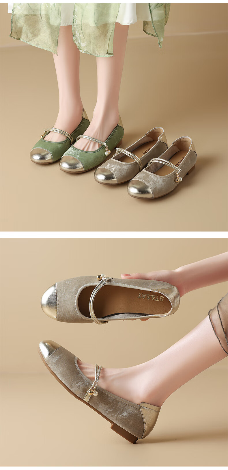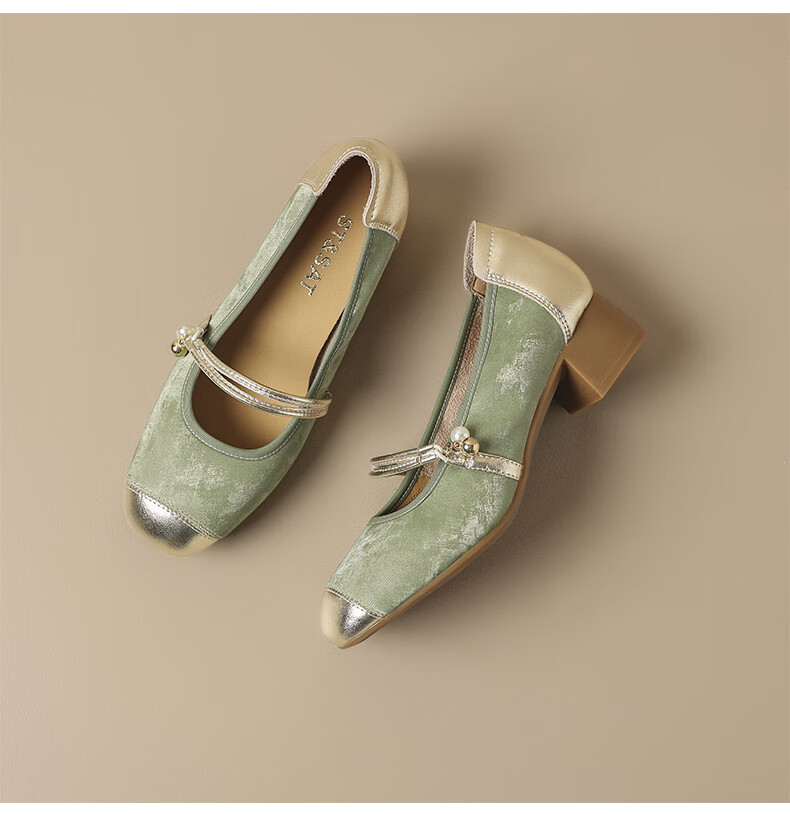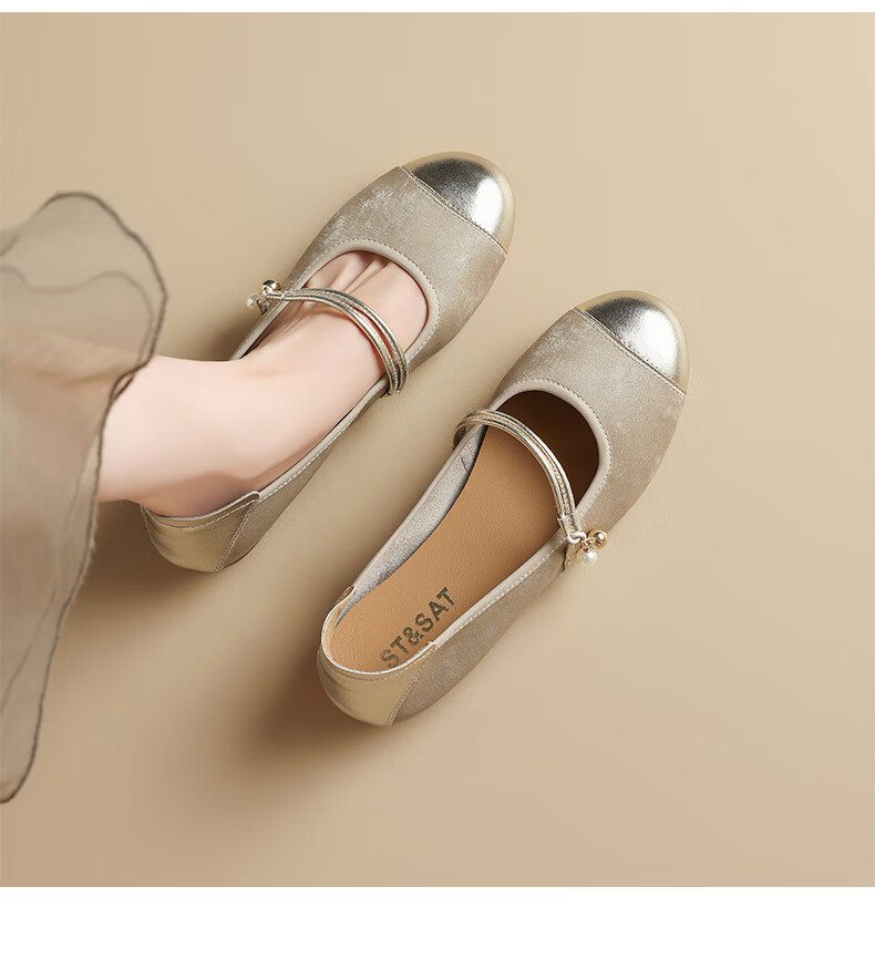 星期六(St&Sat)新中式浅口玛丽珍鞋女鞋女单鞋 SSD1111PFP 杏色 38