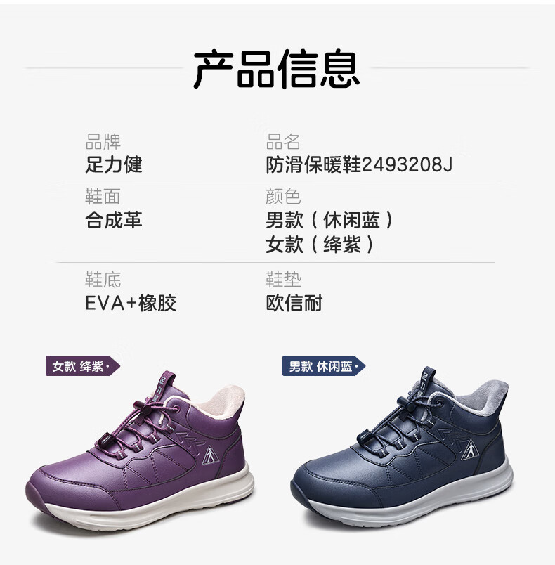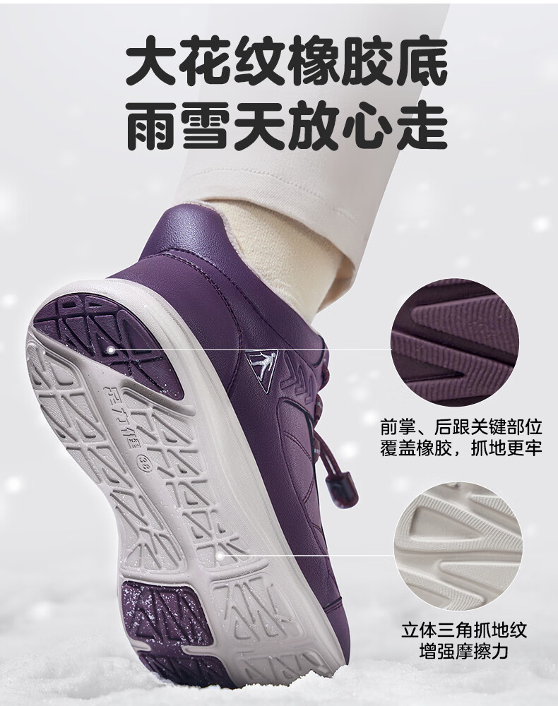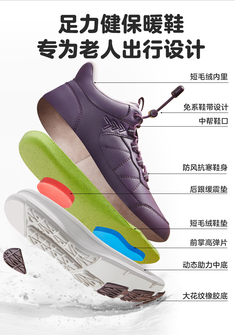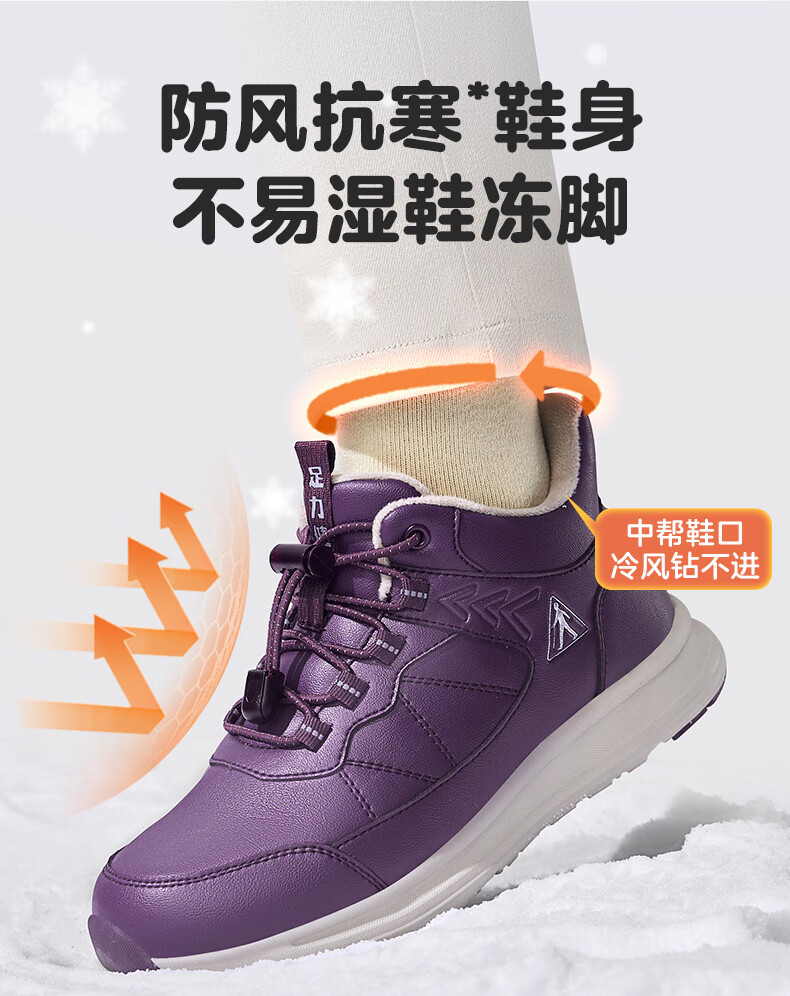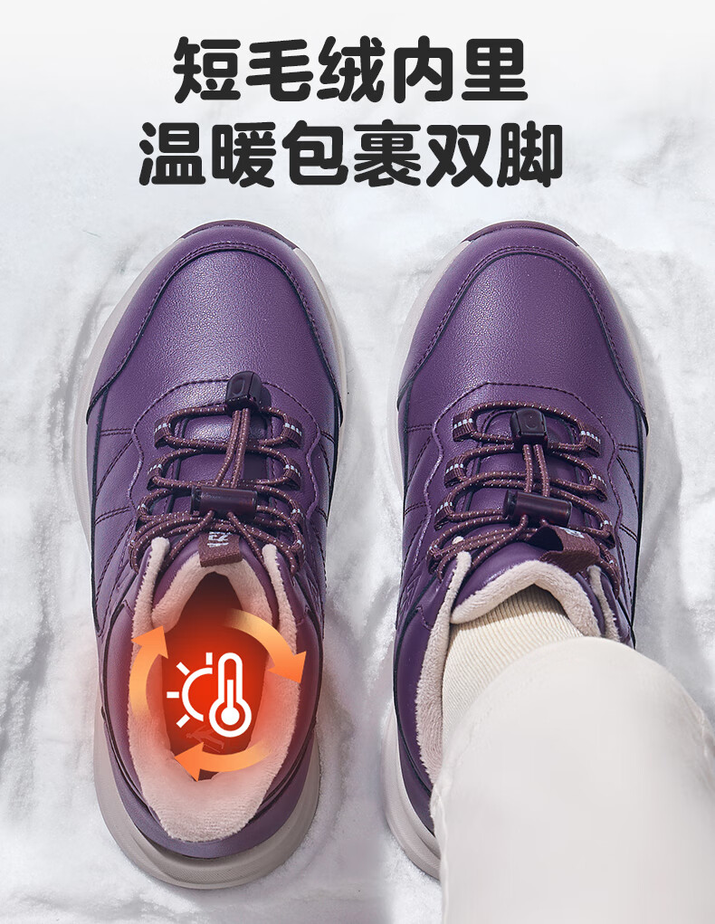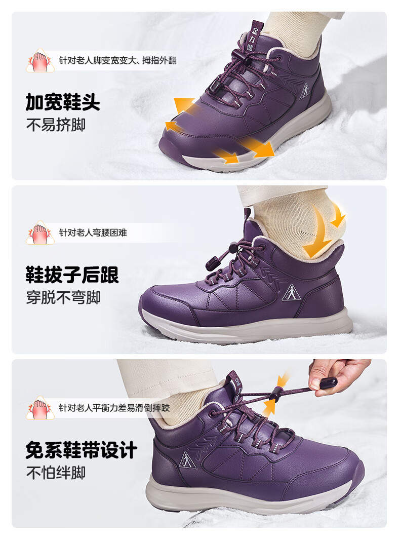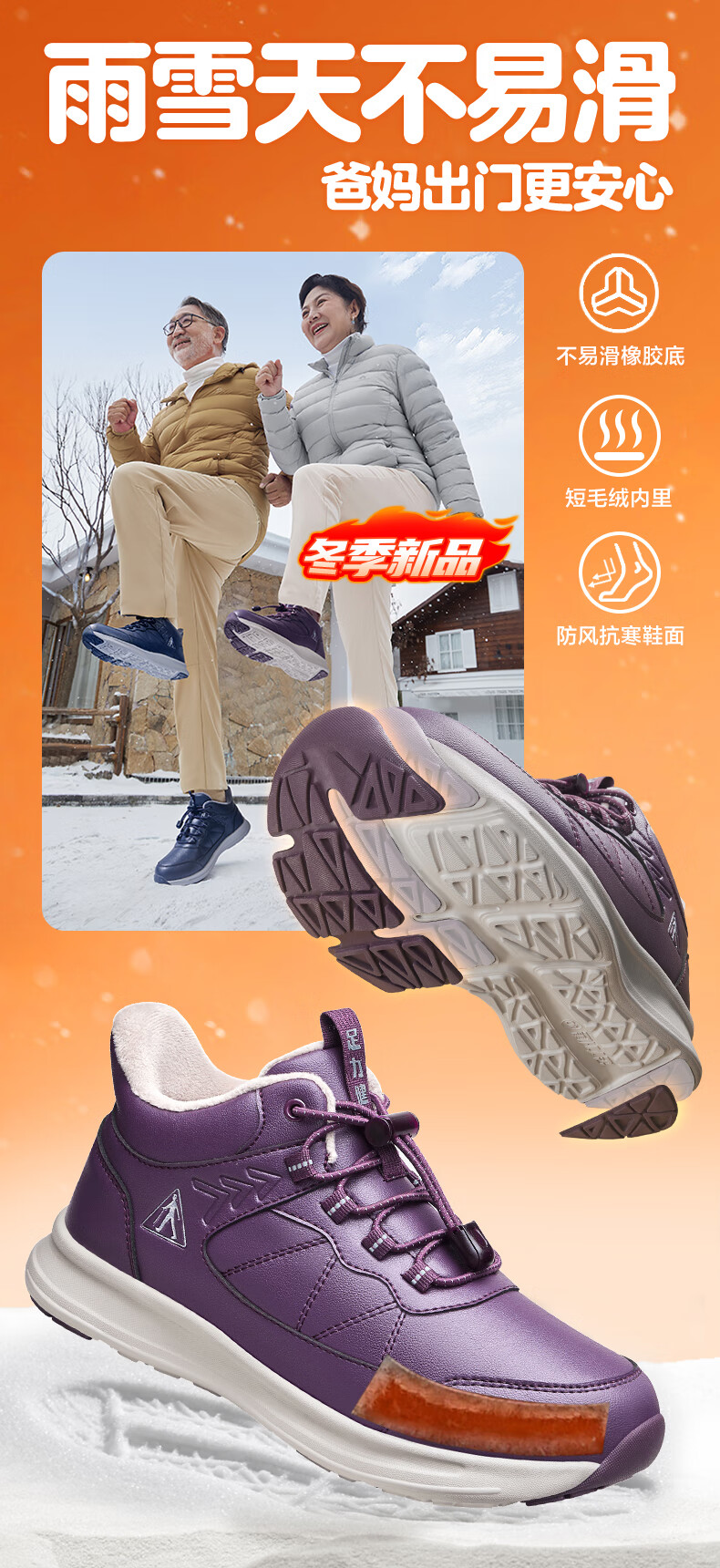 足力健老人鞋冬季棉鞋加绒加厚中老年户外蓄热防滑保暖鞋2493208J 绛紫-女 38
