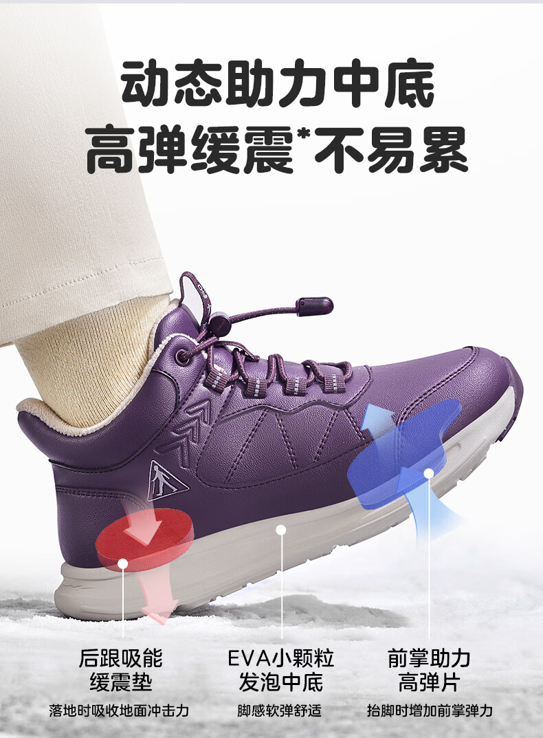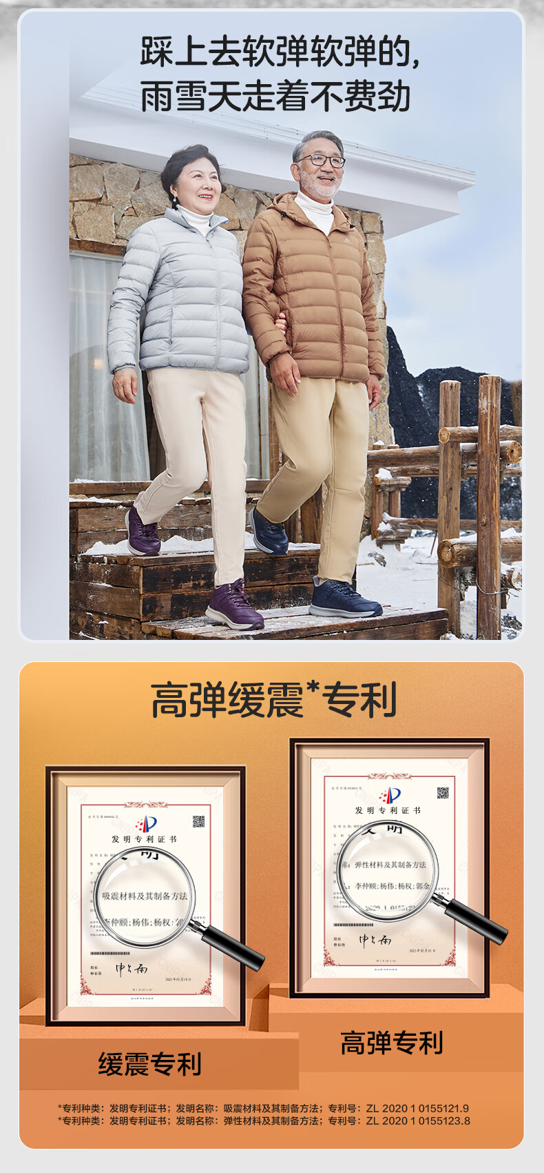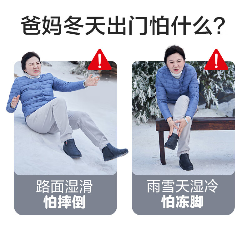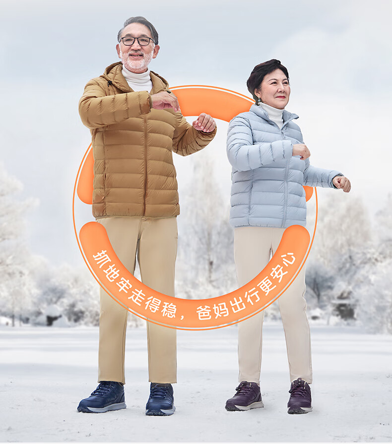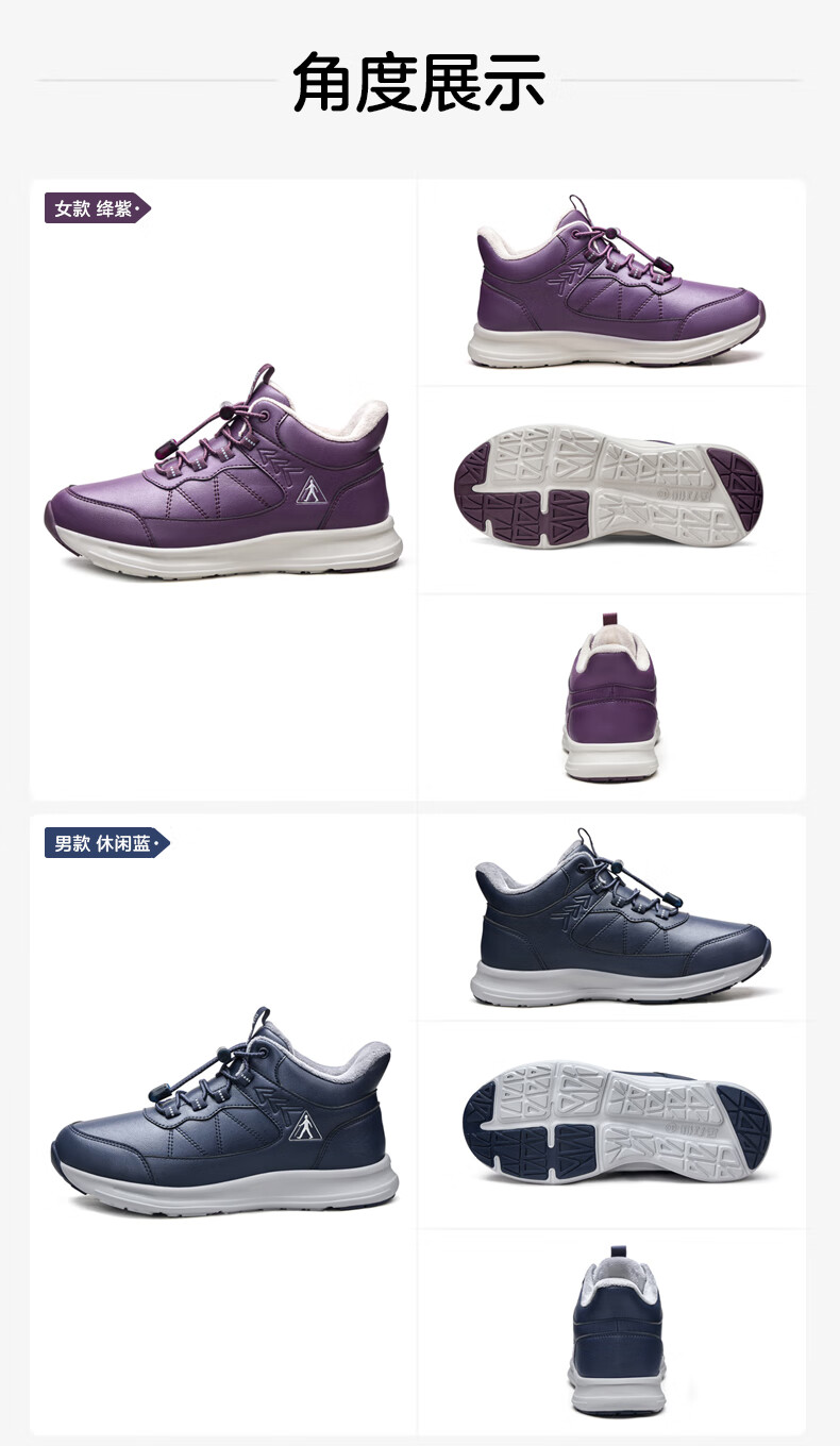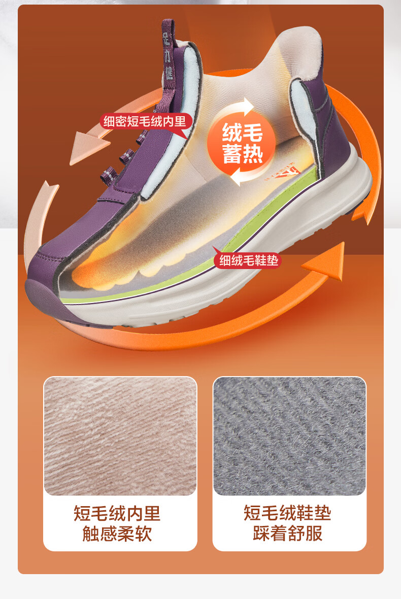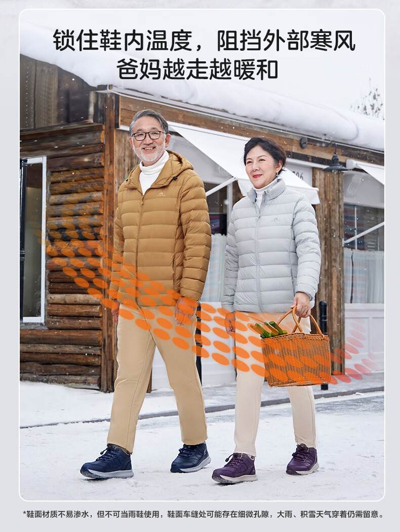 足力健老人鞋冬季棉鞋加绒加厚中老年户外蓄热防滑保暖鞋2493208J 绛紫-女 38