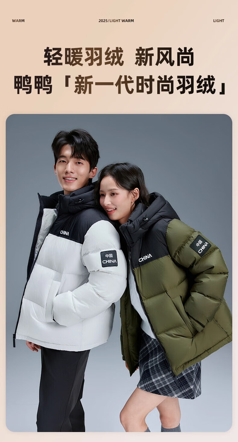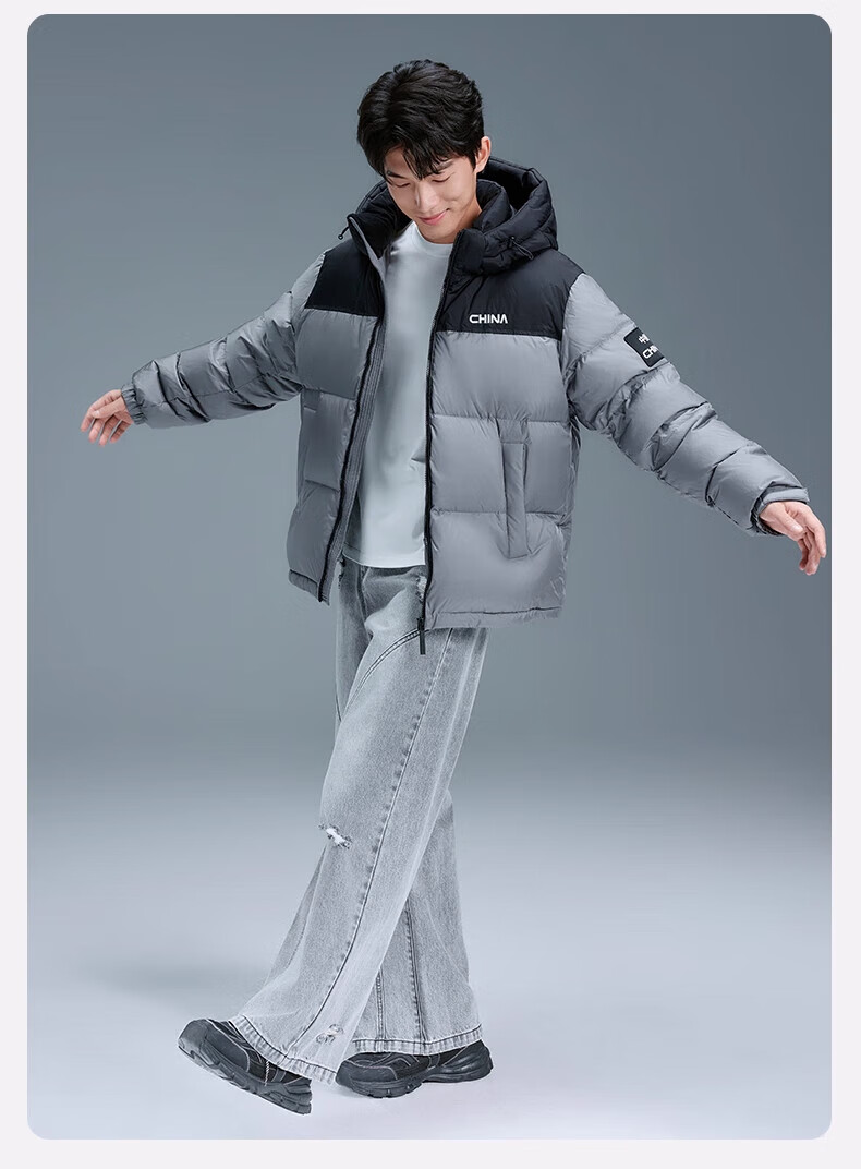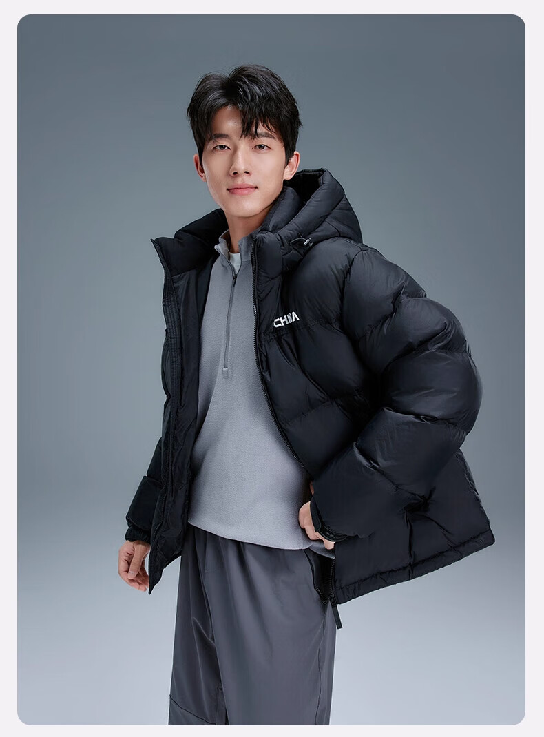 鸭鸭(YAYA)王一博同款高充绒羽绒服男士2025冬季新款防寒加厚面包女外套 青光黑色-YE5B010766A XL 180