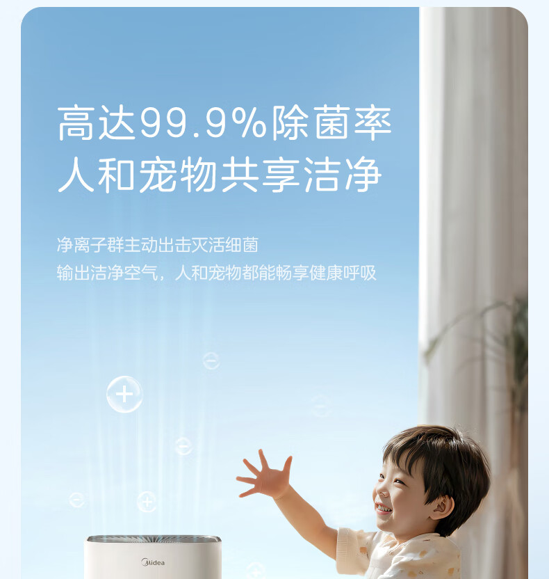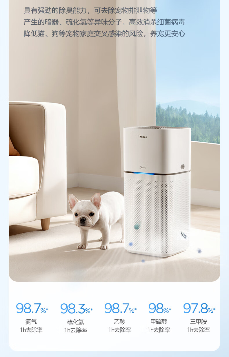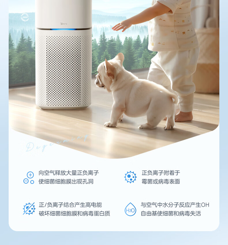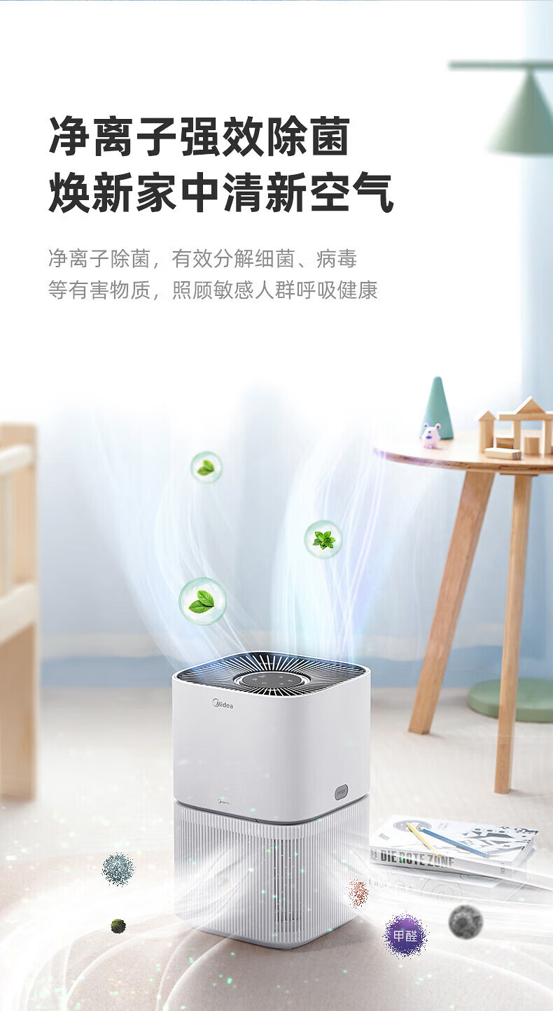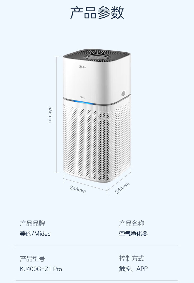 美的(Midea) 空气净化器除甲醛家用新风机净离子除菌全屋换气除雾霾烟味灰尘智能数显美居互联消毒机 【净化除醛】KJ400G-Z1 Pro