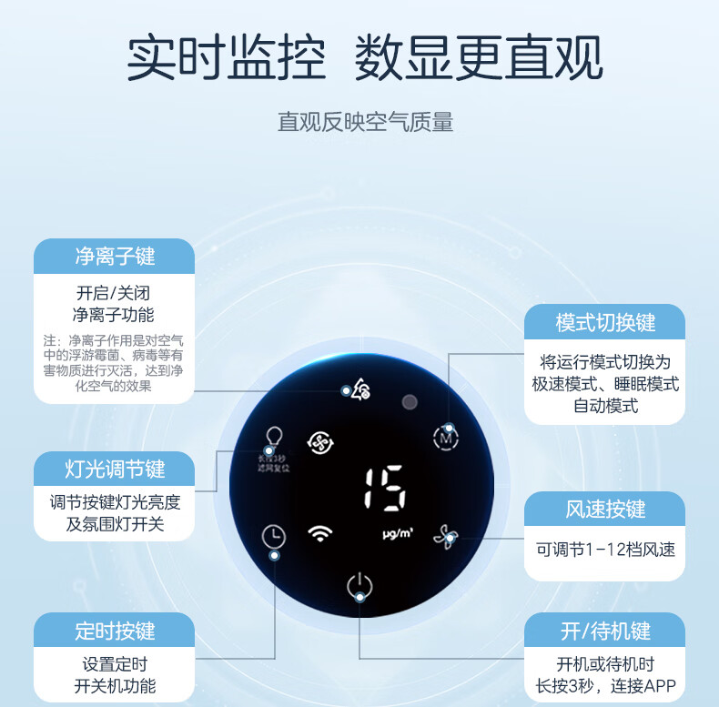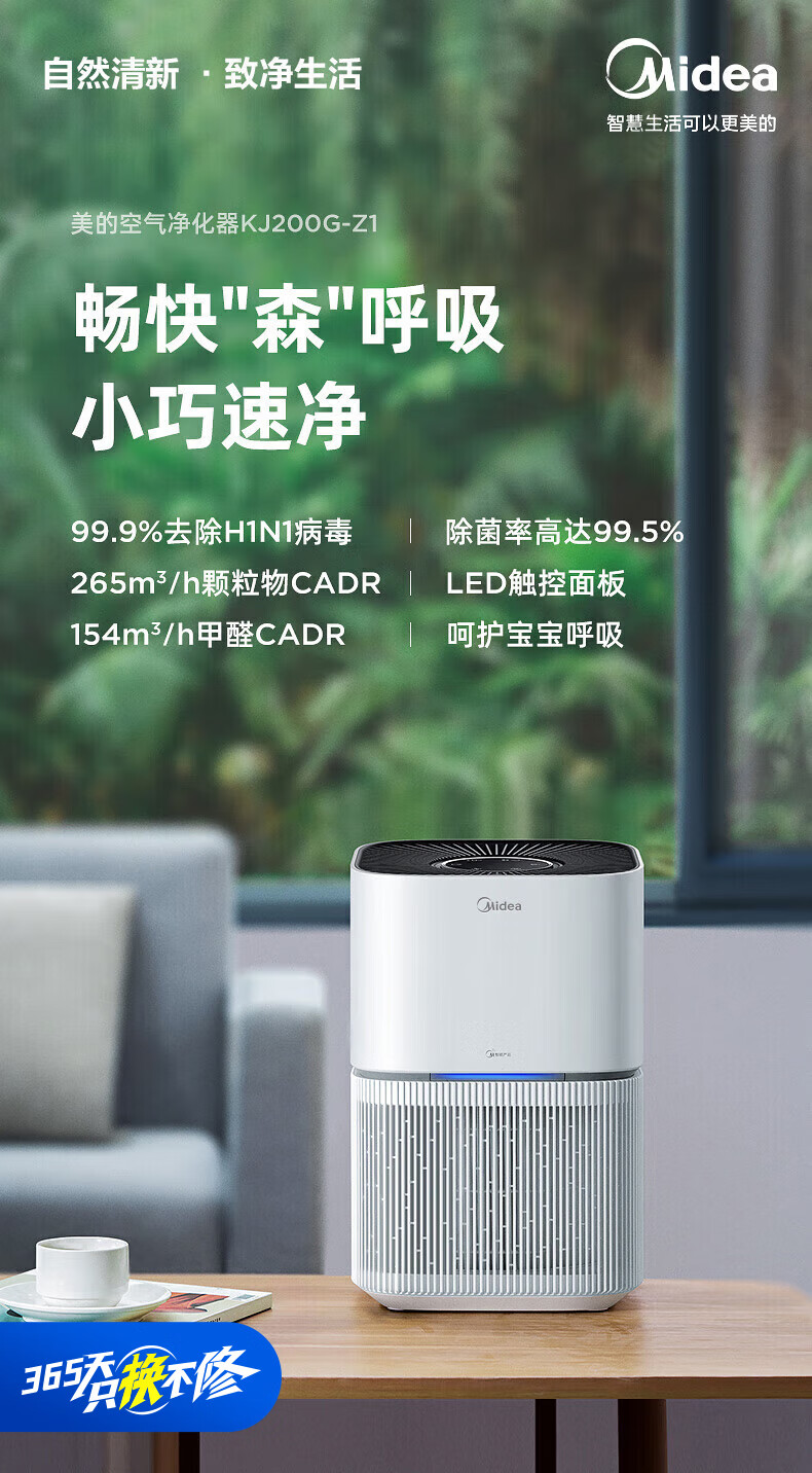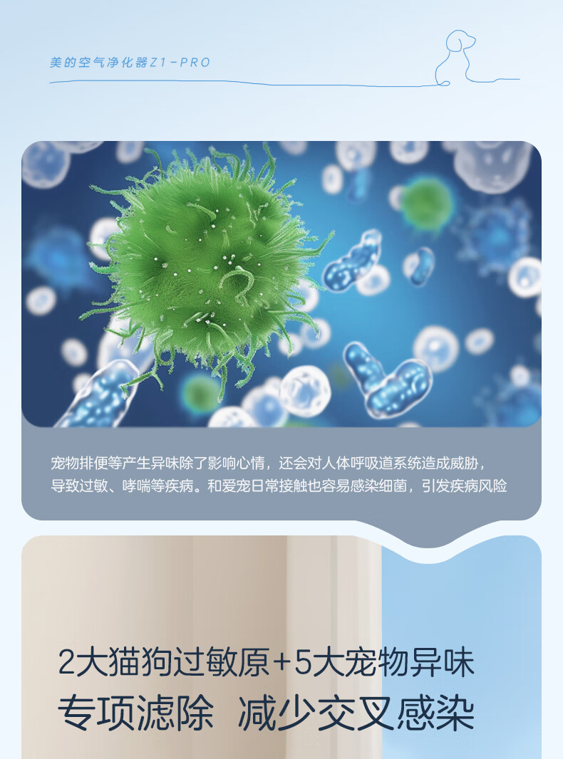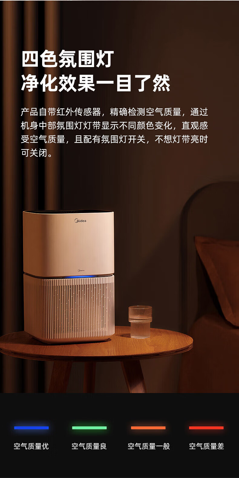 美的(Midea) 空气净化器除甲醛家用新风机净离子除菌全屋换气除雾霾烟味灰尘智能数显美居互联消毒机 【净化除醛】KJ400G-Z1 Pro