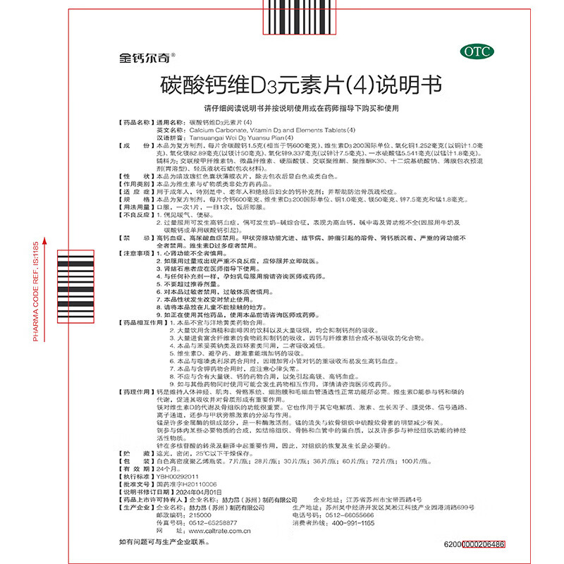 金钙尔奇 碳酸钙维D3元素片(4)100片 OTC成人中老年钙含镁锌铜维生素d3手足抽筋防治骨质疏松