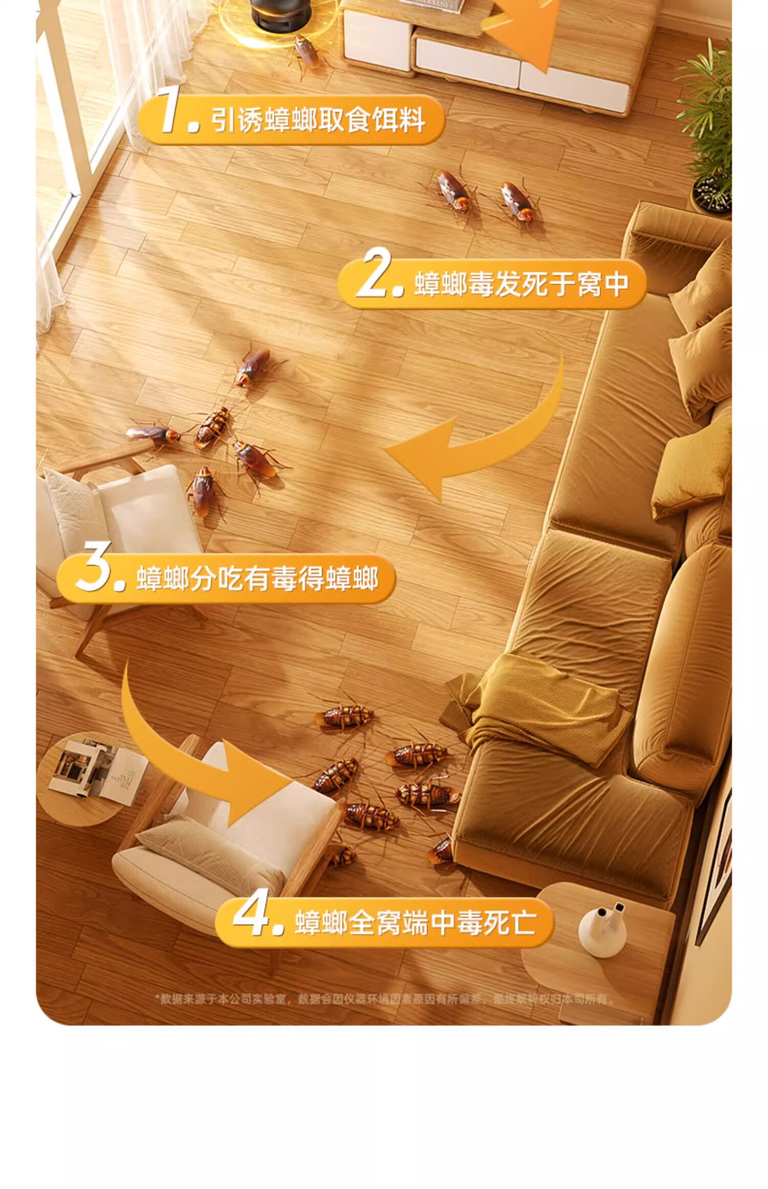 锐洲日本蟑螂药家用一窝端厨房强力灭除小强神器胶饵剂贴 4盒装【100平用】特惠装
