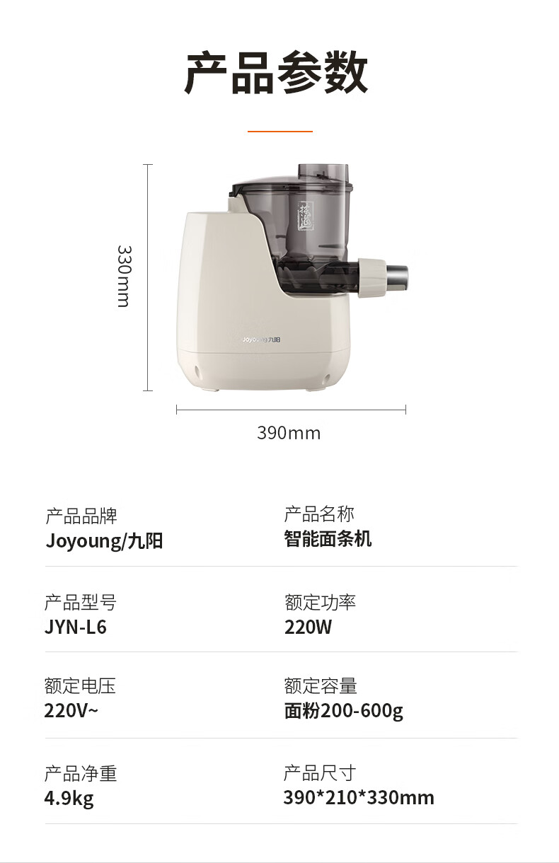九阳(Joyoung)小型自动滴漏水面条机 1-5人全自动压面机家用电动多功能和面机L6