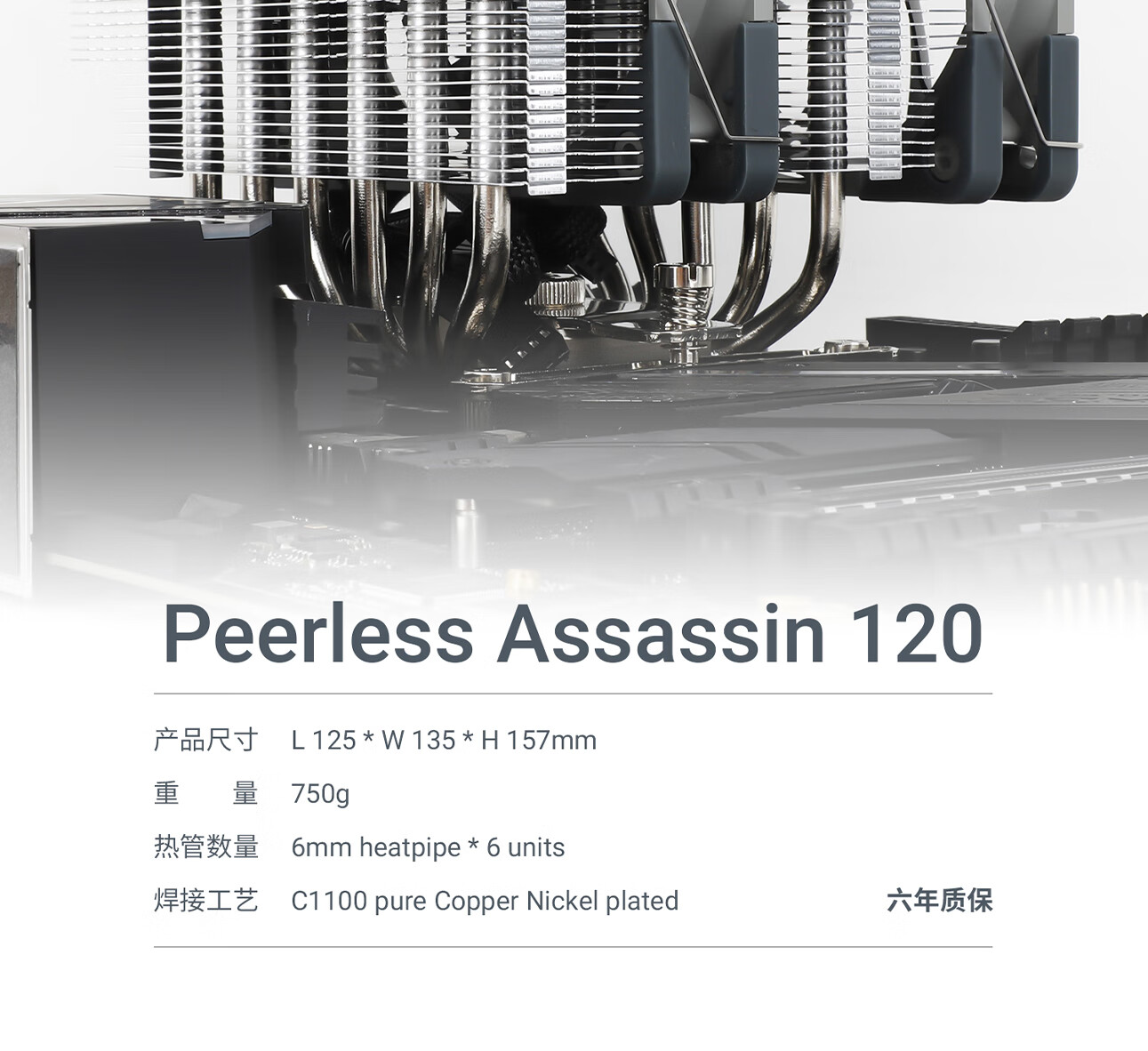 Thermalright(利民)Peerless Assassin 120 AGHP 3.0 热管风冷散热器 6热管双塔 带顶盖双C12风扇 PA120