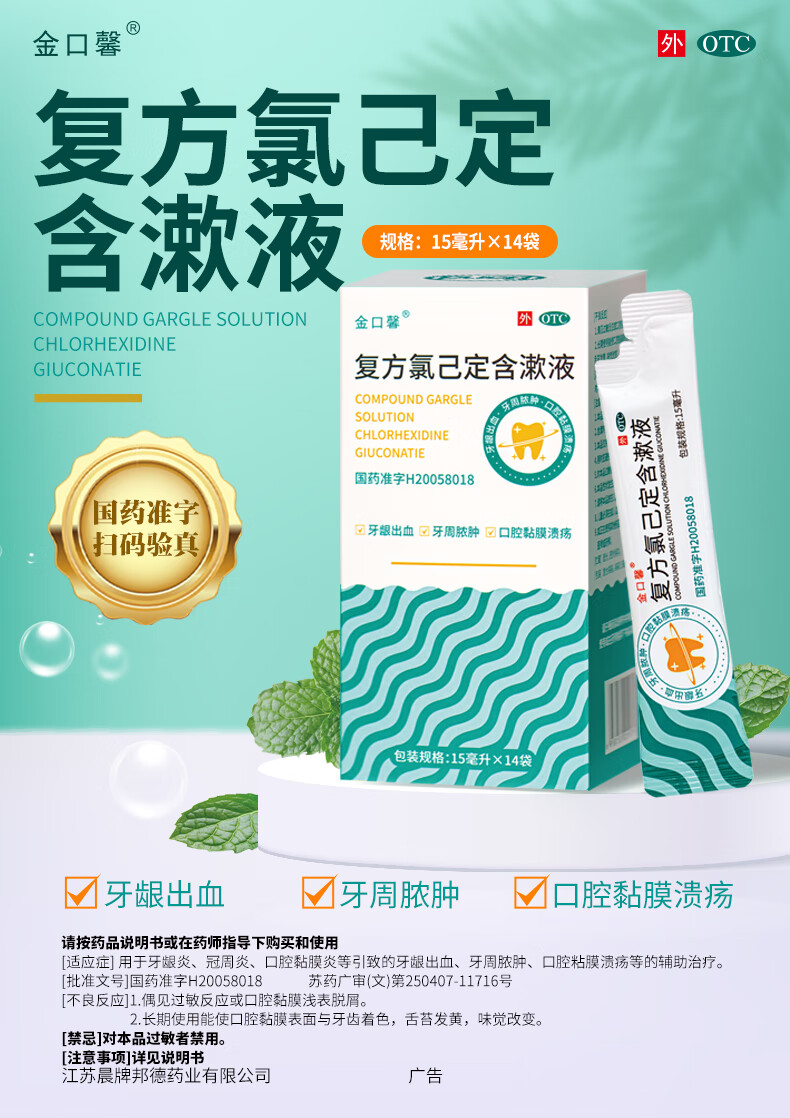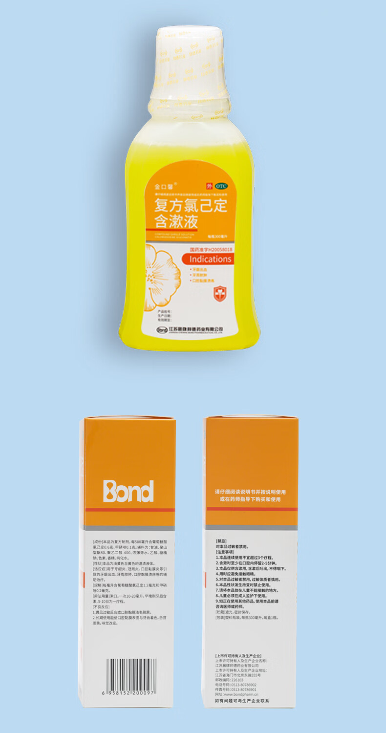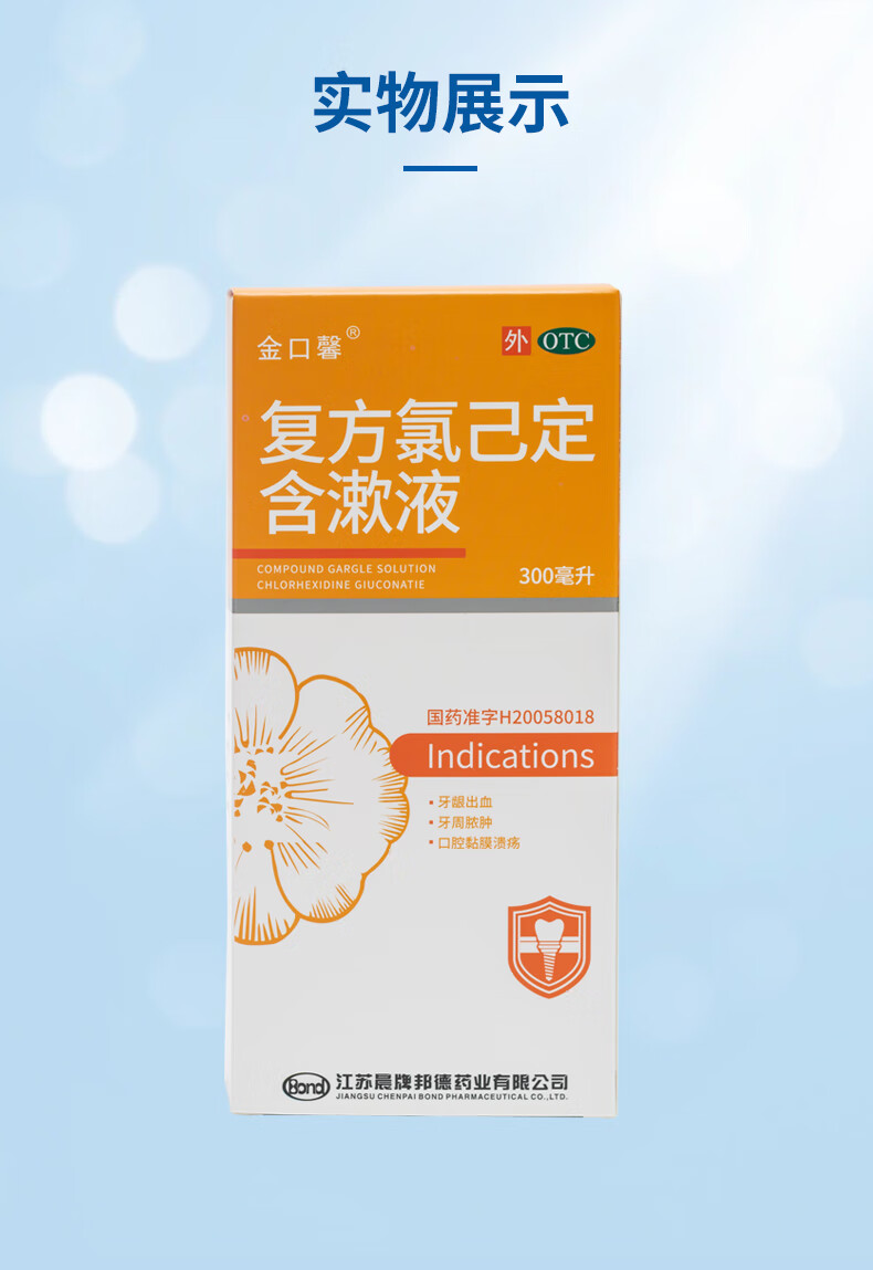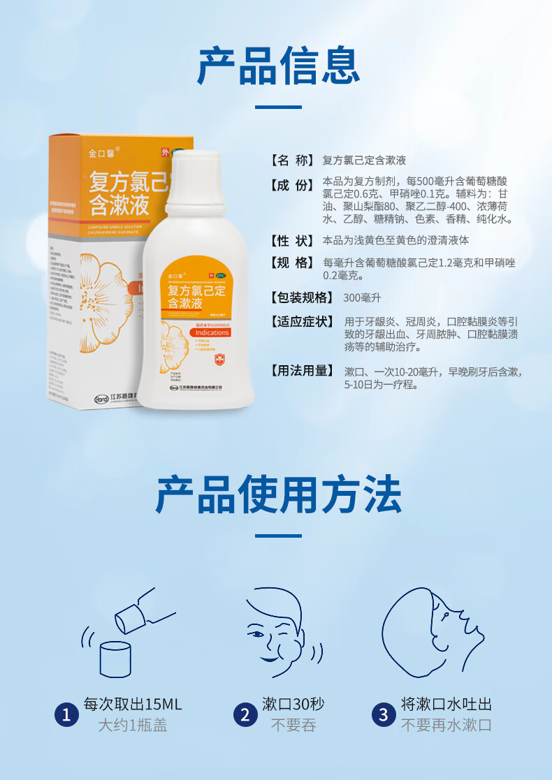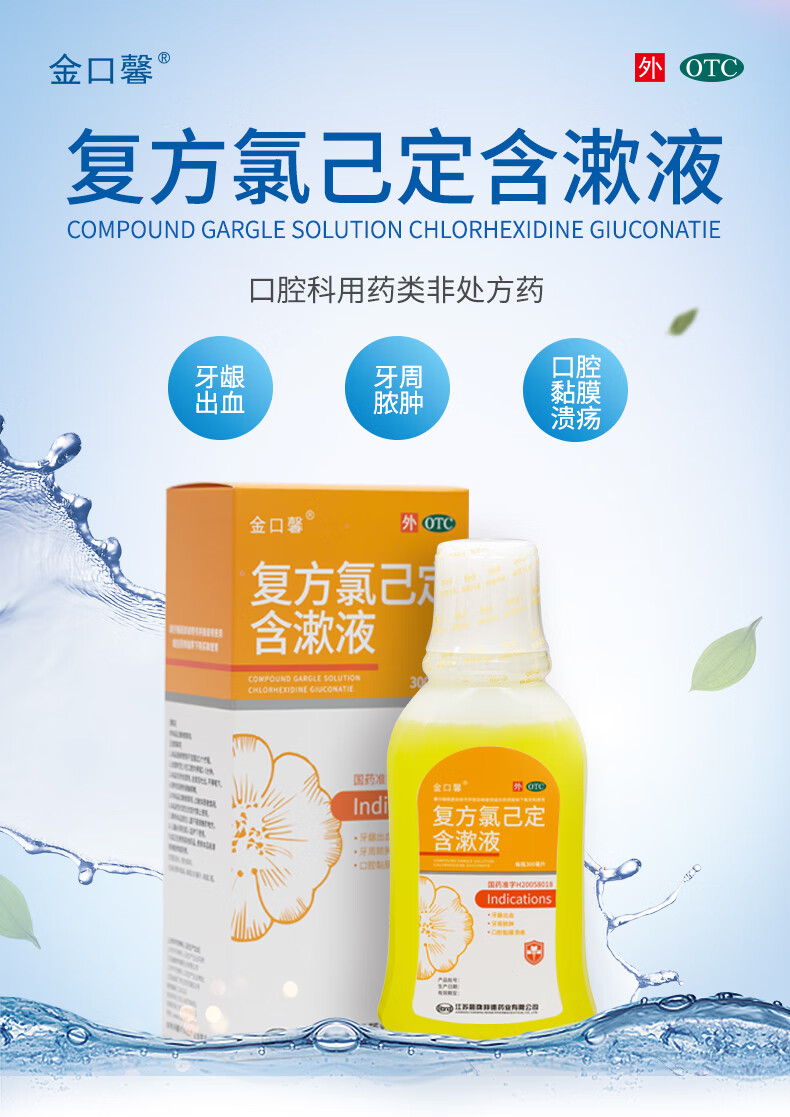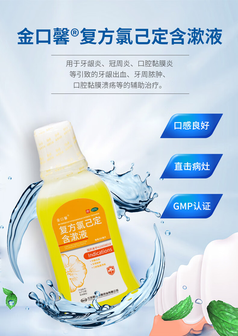 [金口馨]复方氯己定含漱液 300ml 1瓶装 口腔医用漱口水 口腔溃疡牙龈出血 牙龈红肿冠周炎牙周炎 300ml/瓶 针对多种口腔问题