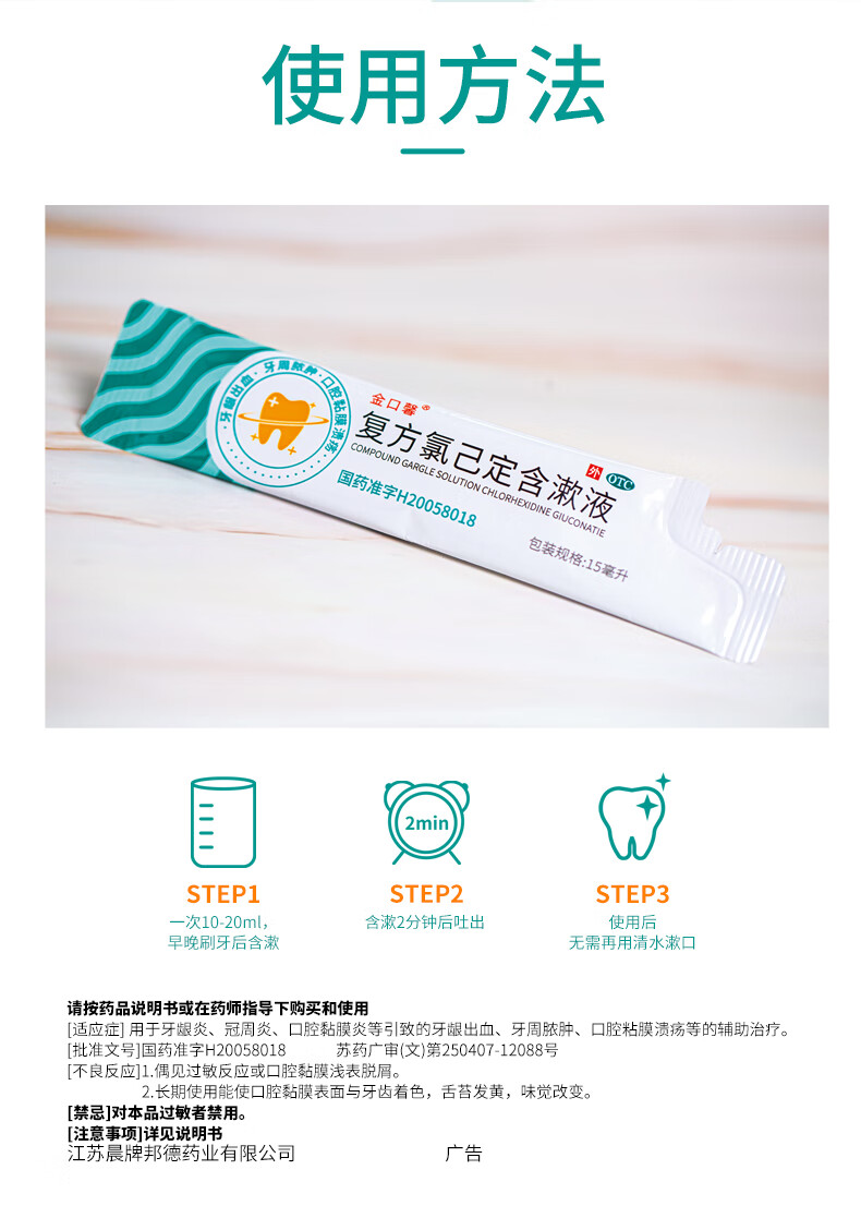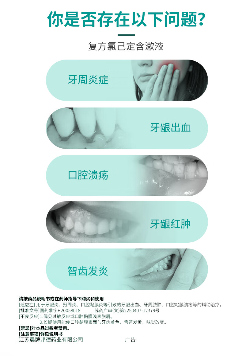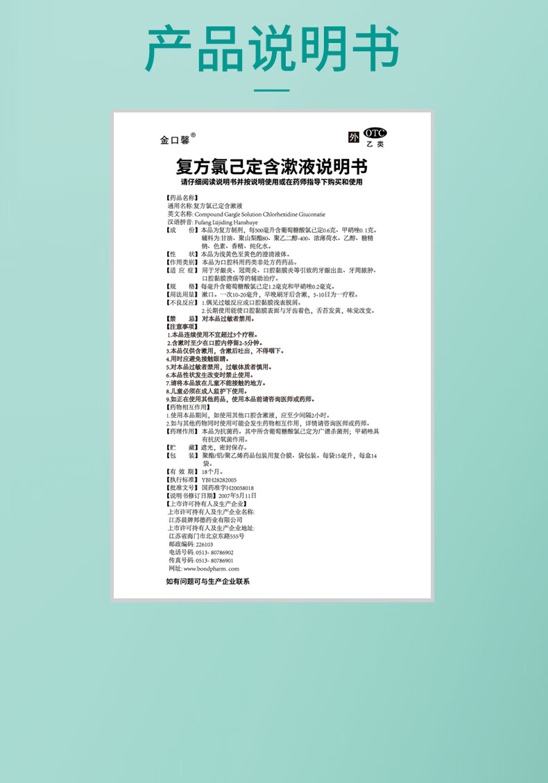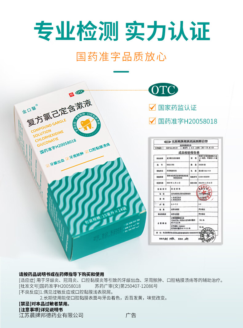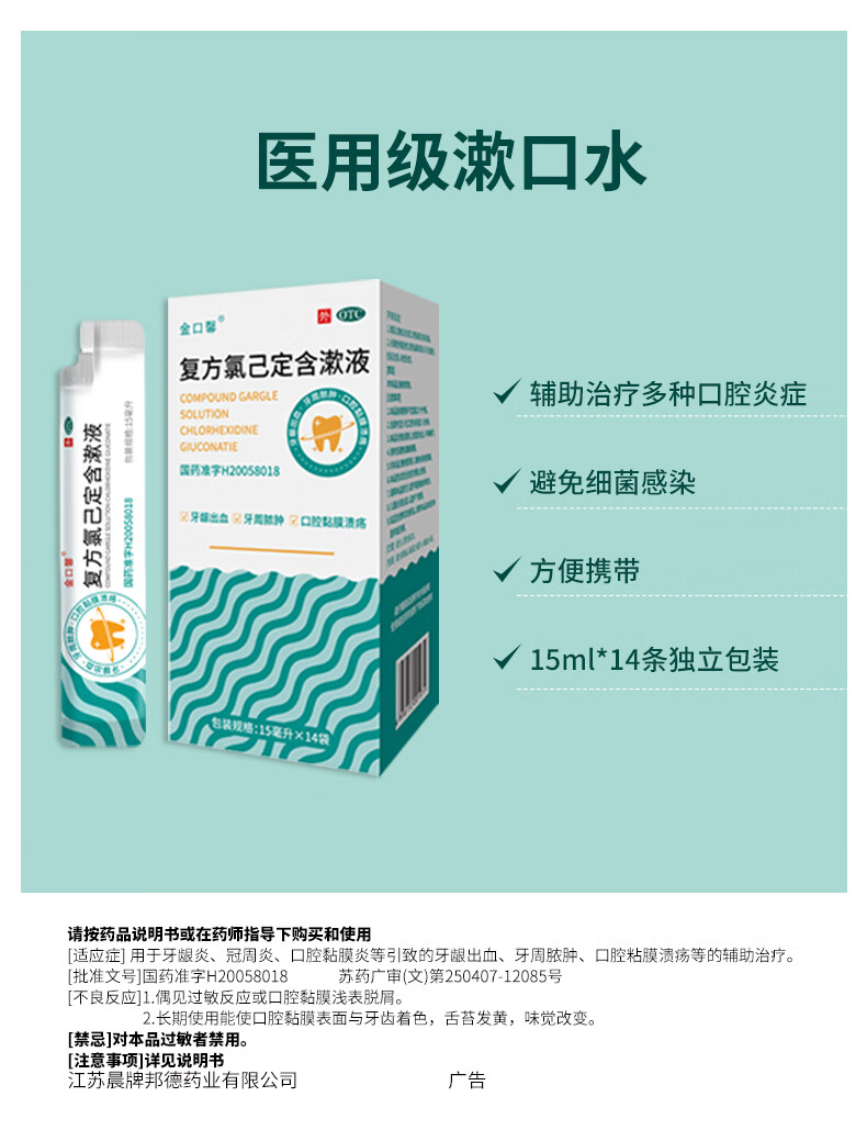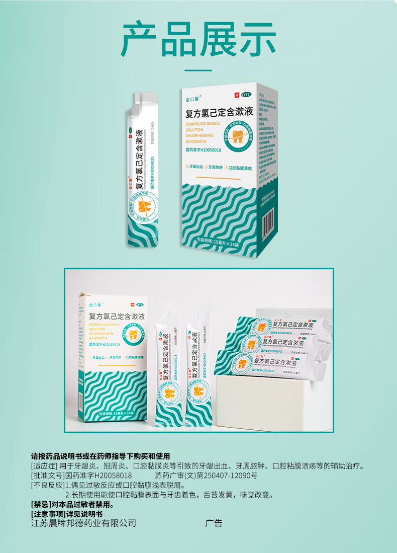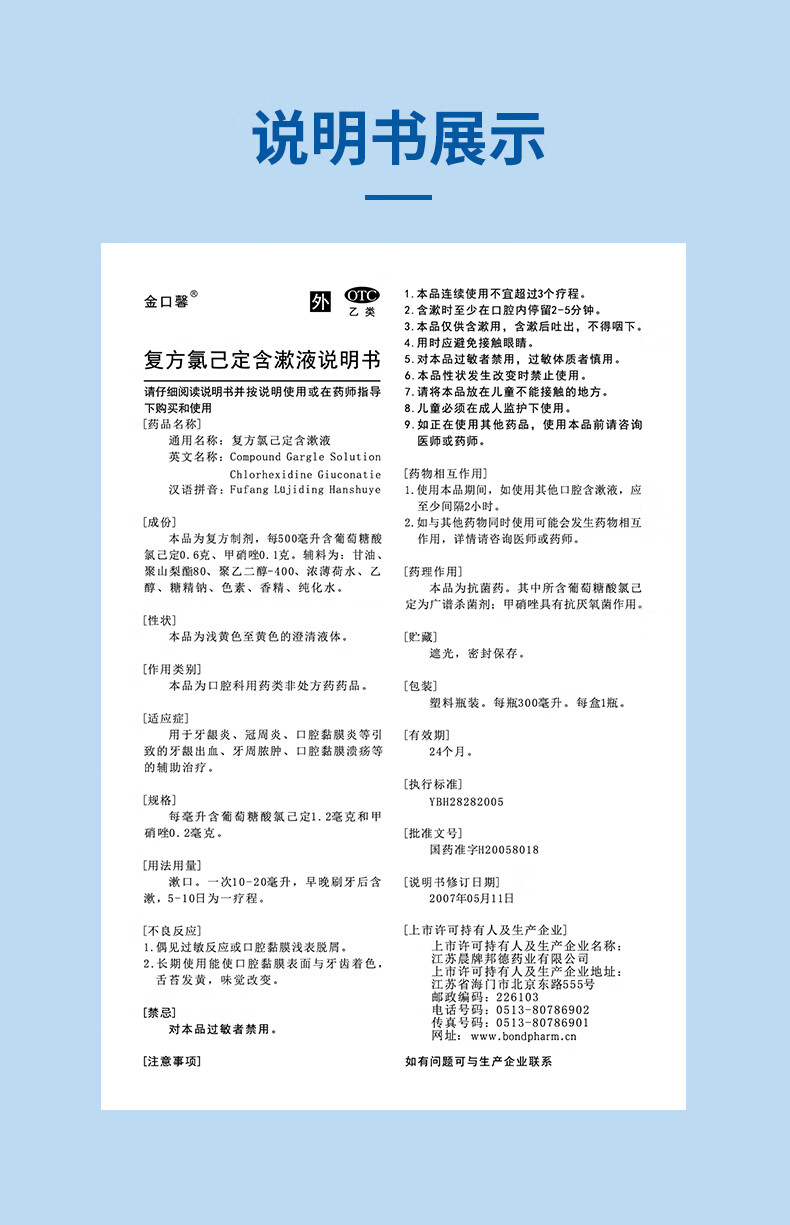 [金口馨]复方氯己定含漱液 300ml 1瓶装 口腔医用漱口水 口腔溃疡牙龈出血 牙龈红肿冠周炎牙周炎 300ml/瓶 针对多种口腔问题