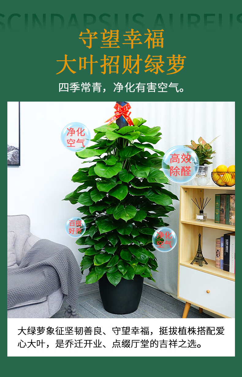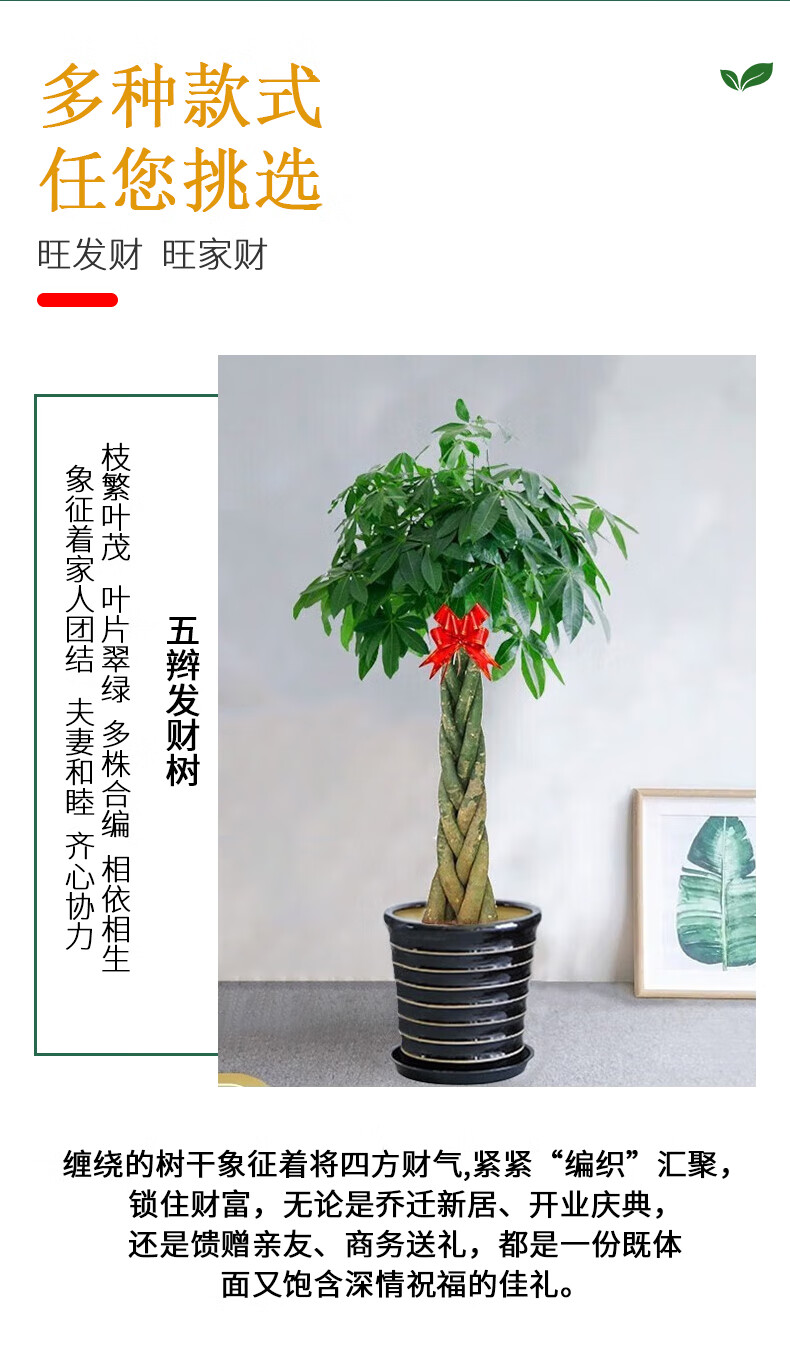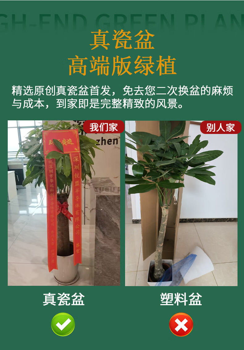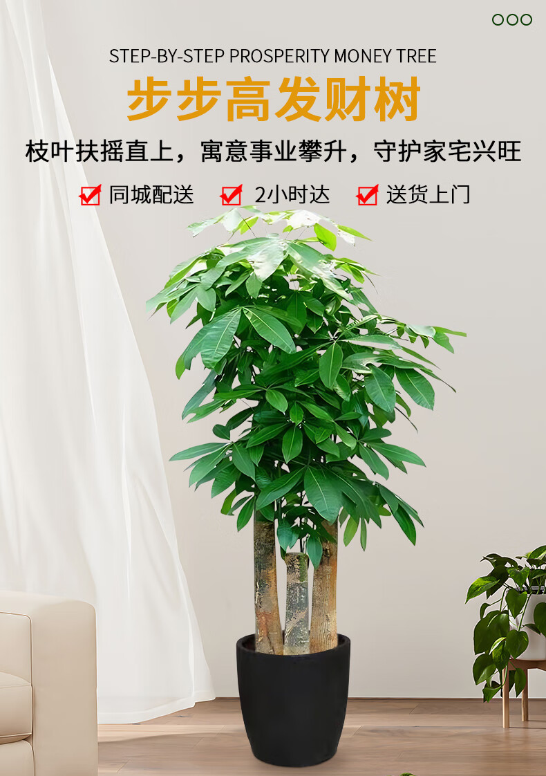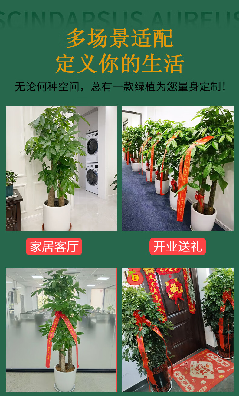 芙洛拉花园【两小时达】发财树绿萝金钱树散尾葵天堂鸟大型绿植室内开业乔迁 步步高发财树