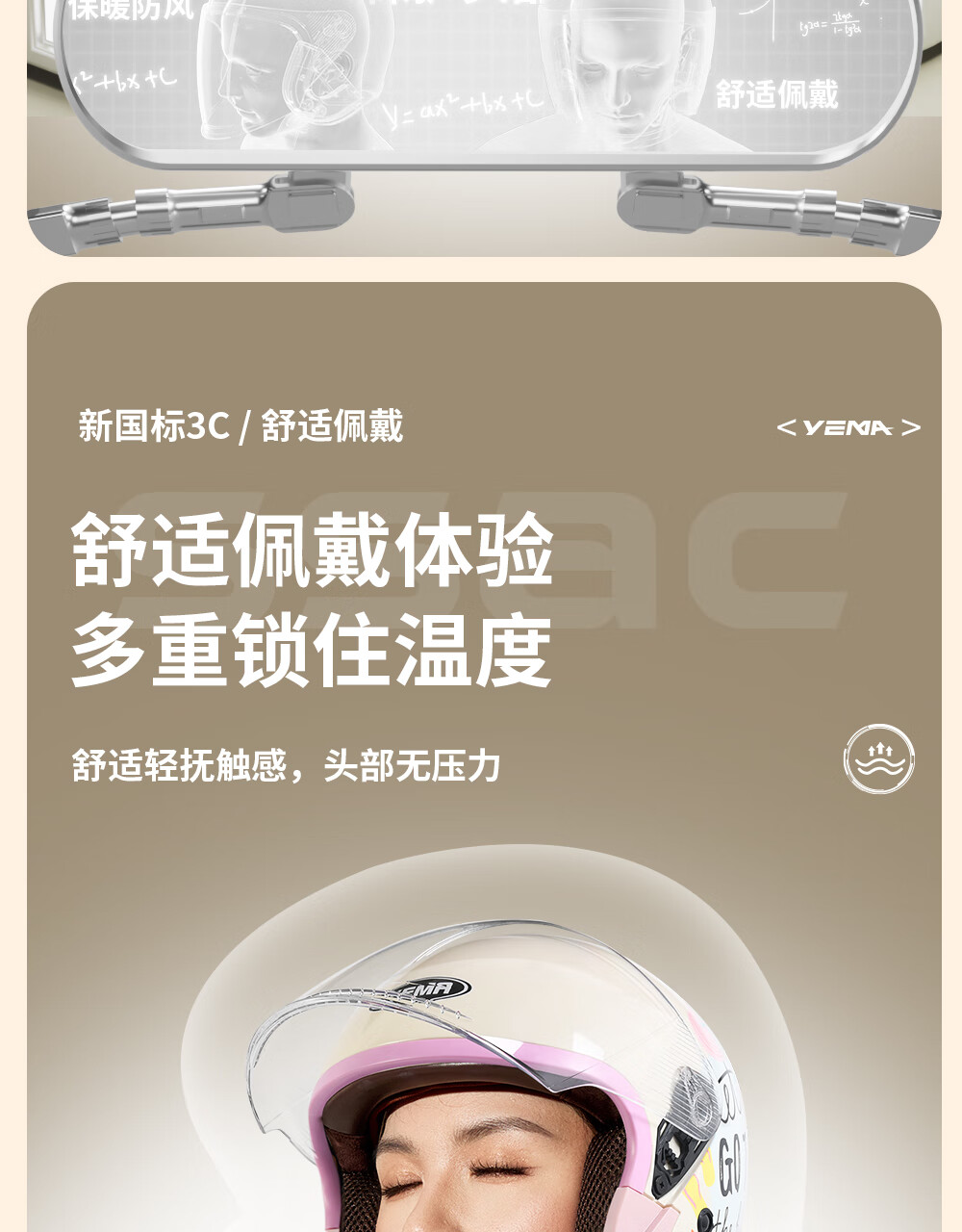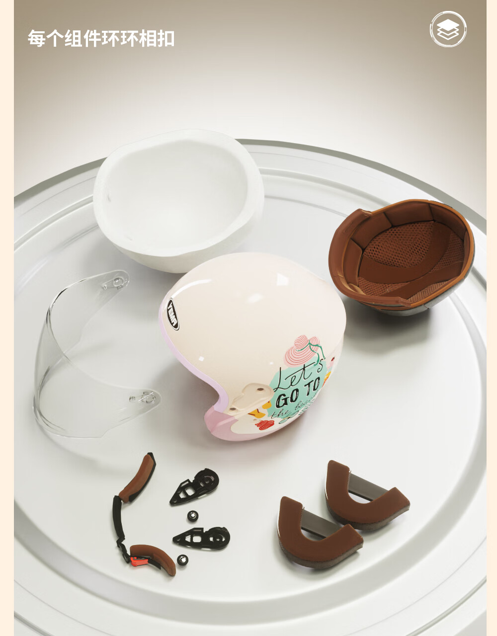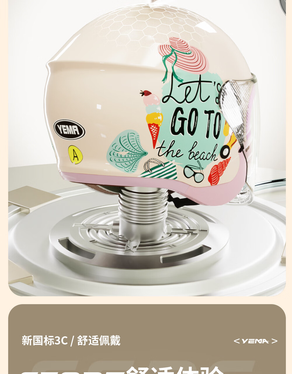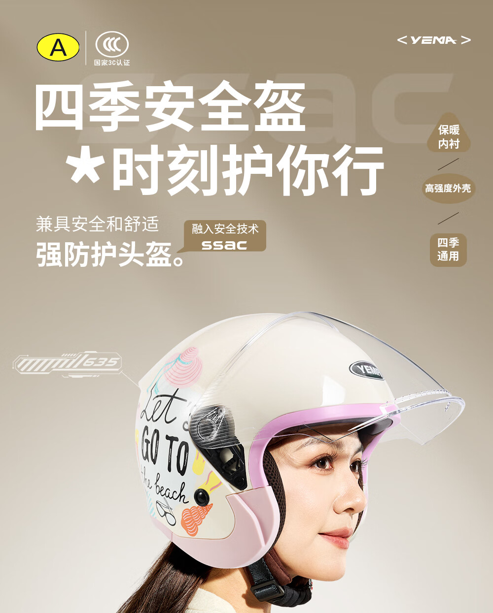 野马(YEMA)电动车头盔女士四季通用电瓶车半盔电瓶车成人可爱国标安全帽 卡其白花衣-透明镜+防雾贴片 均码