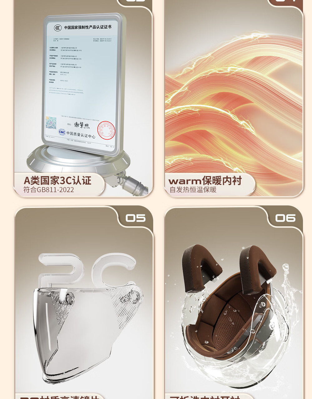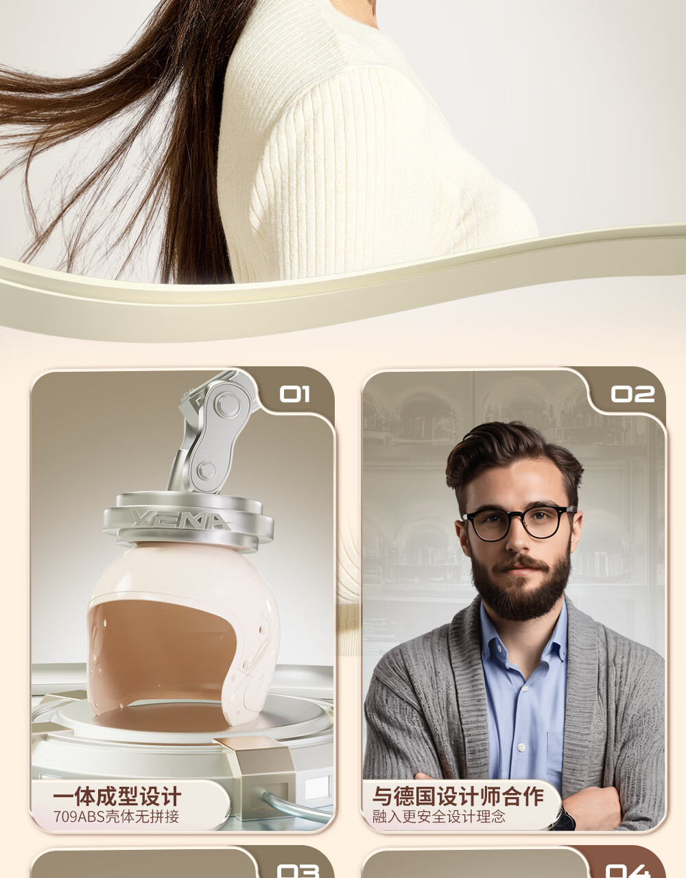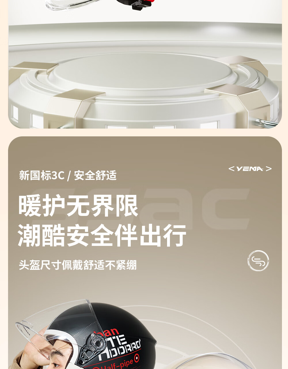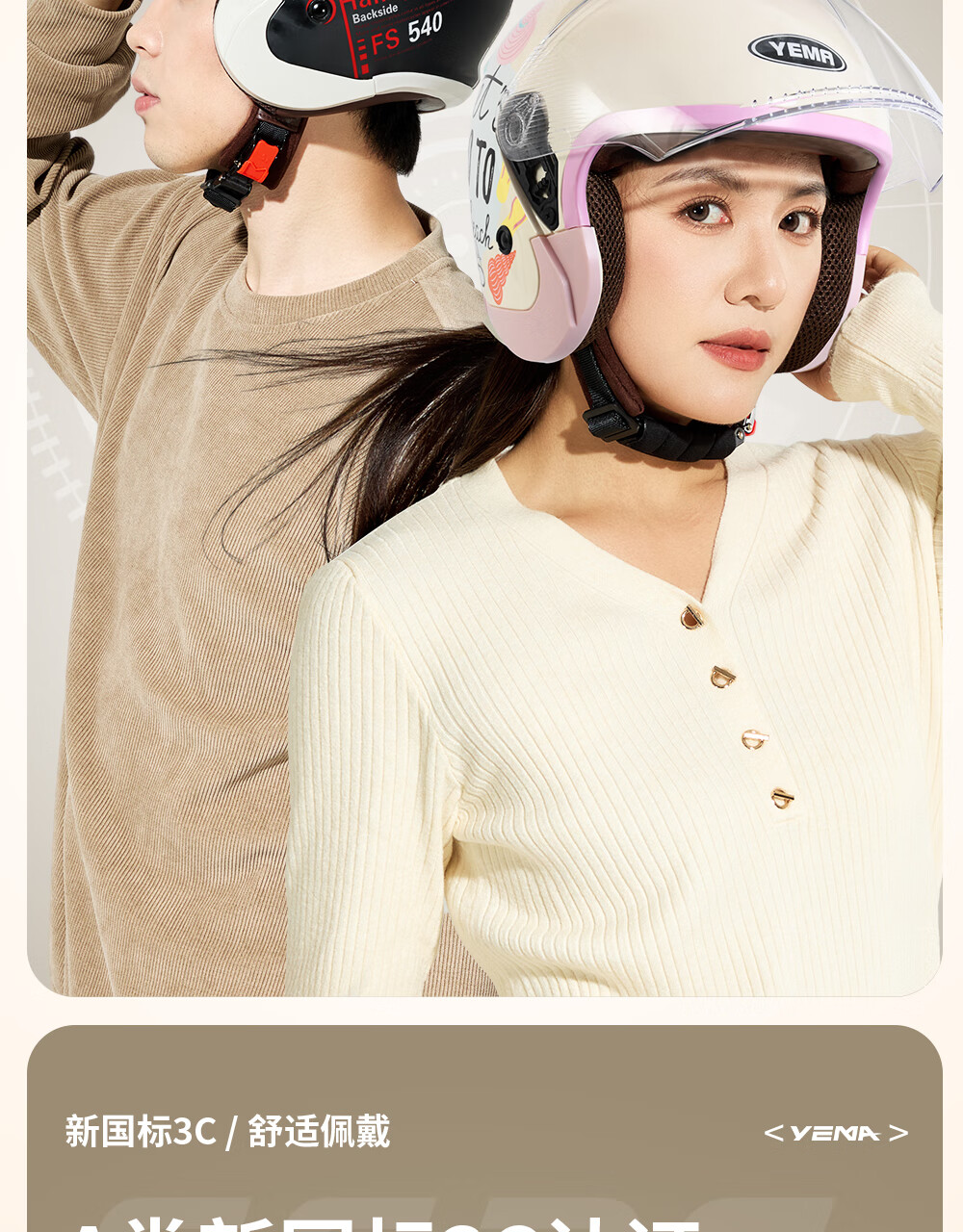 野马(YEMA)3C认证电动摩托车头盔男女四季通用半盔夏季防晒新国标电瓶车安全帽 四季-卡其白轮滑【透明长镜+墨蓝长镜】 均码-可调节