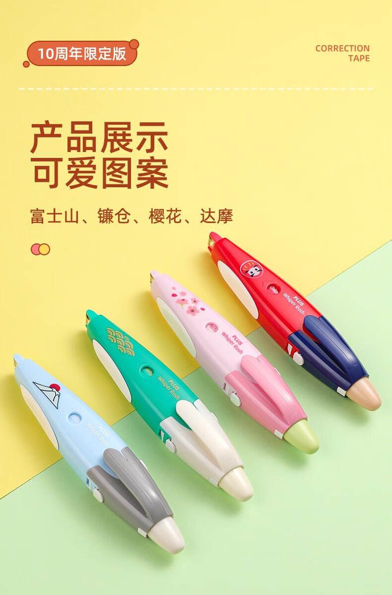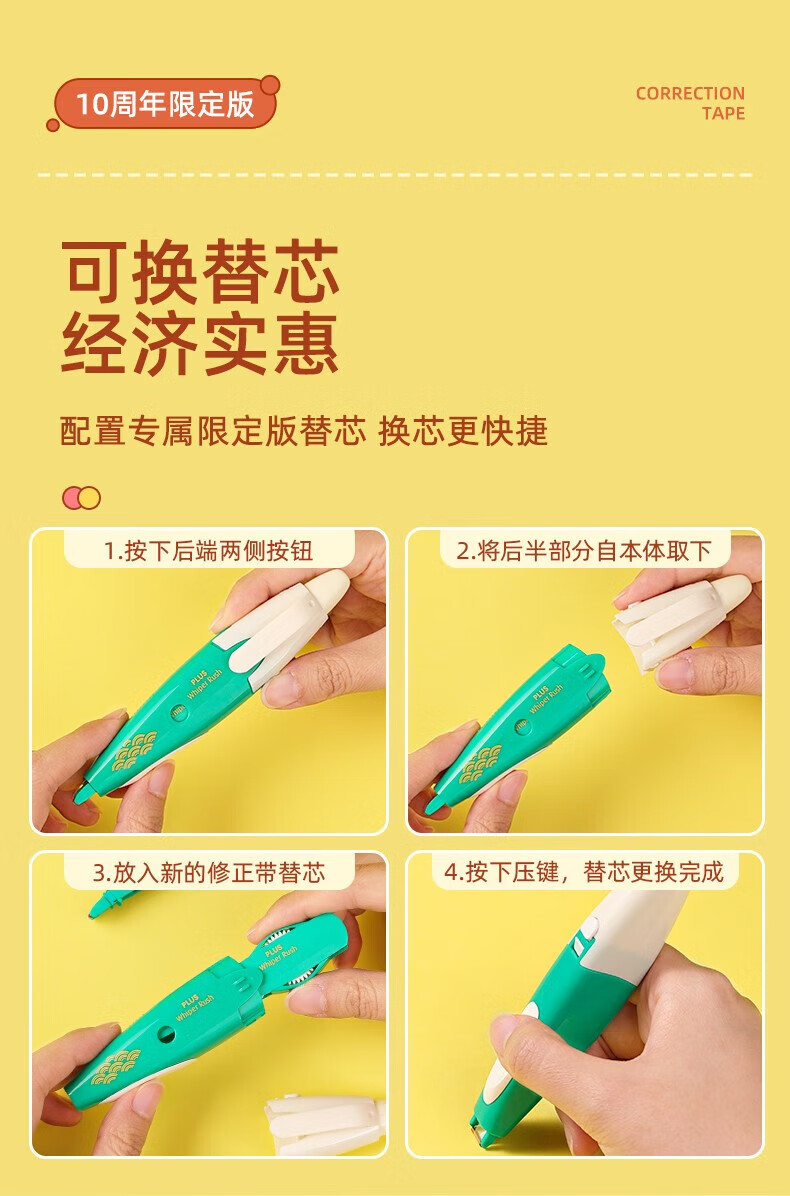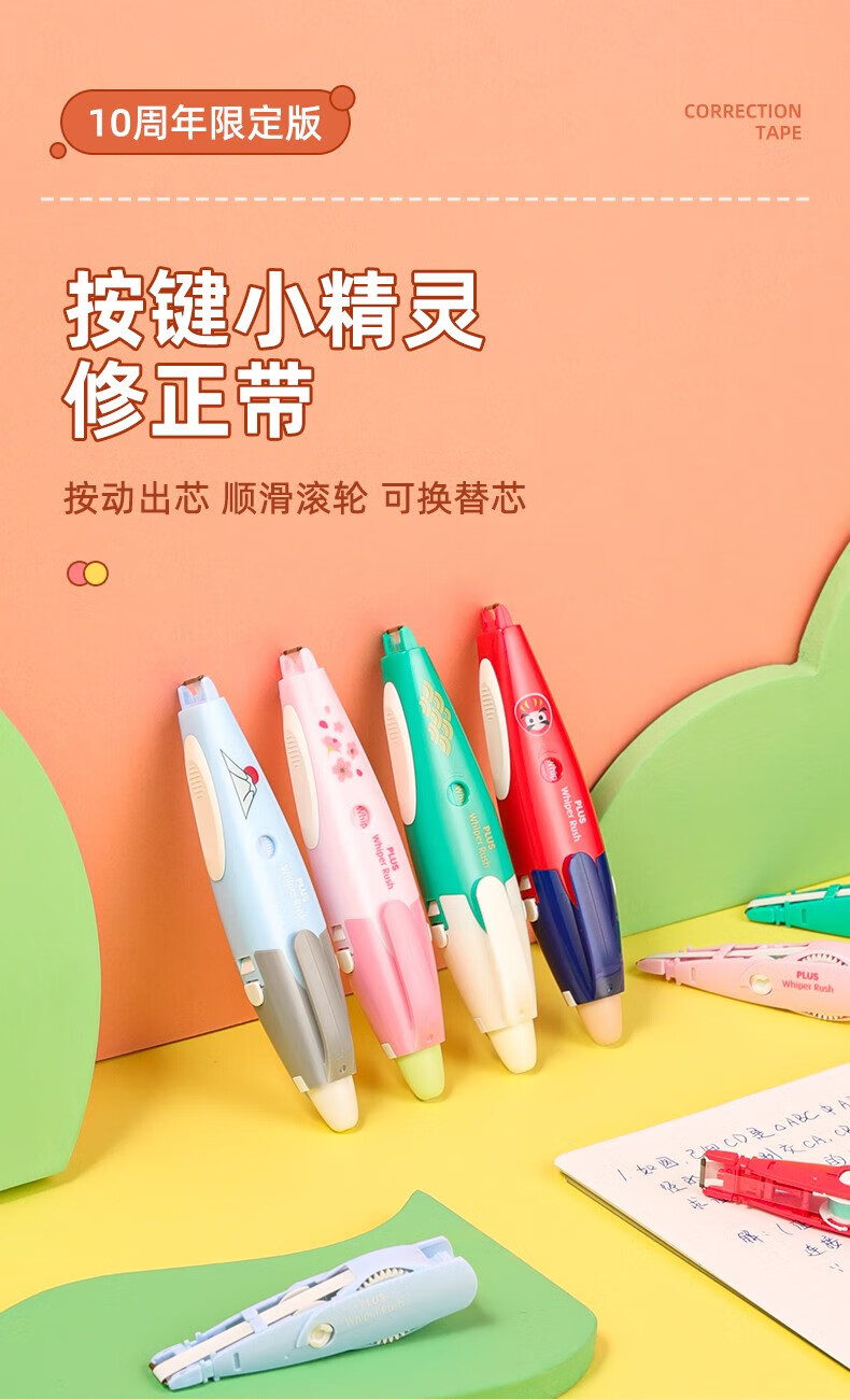 普乐士(PLUS)按键小精灵修正带创意款学生改正带改错带涂改带多款式通用可换替芯大容量替芯 樱花【临期品】