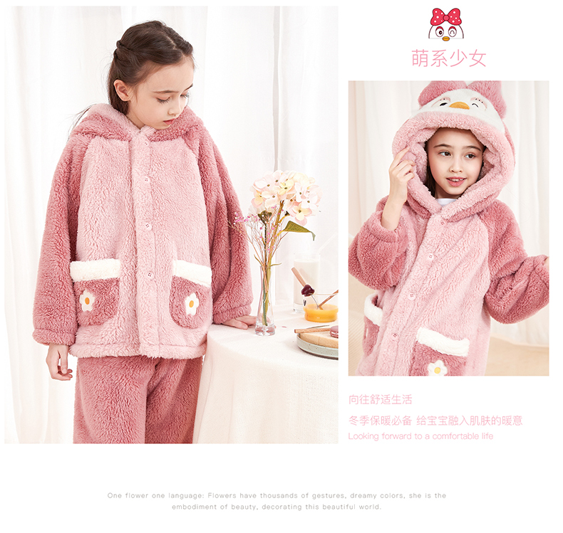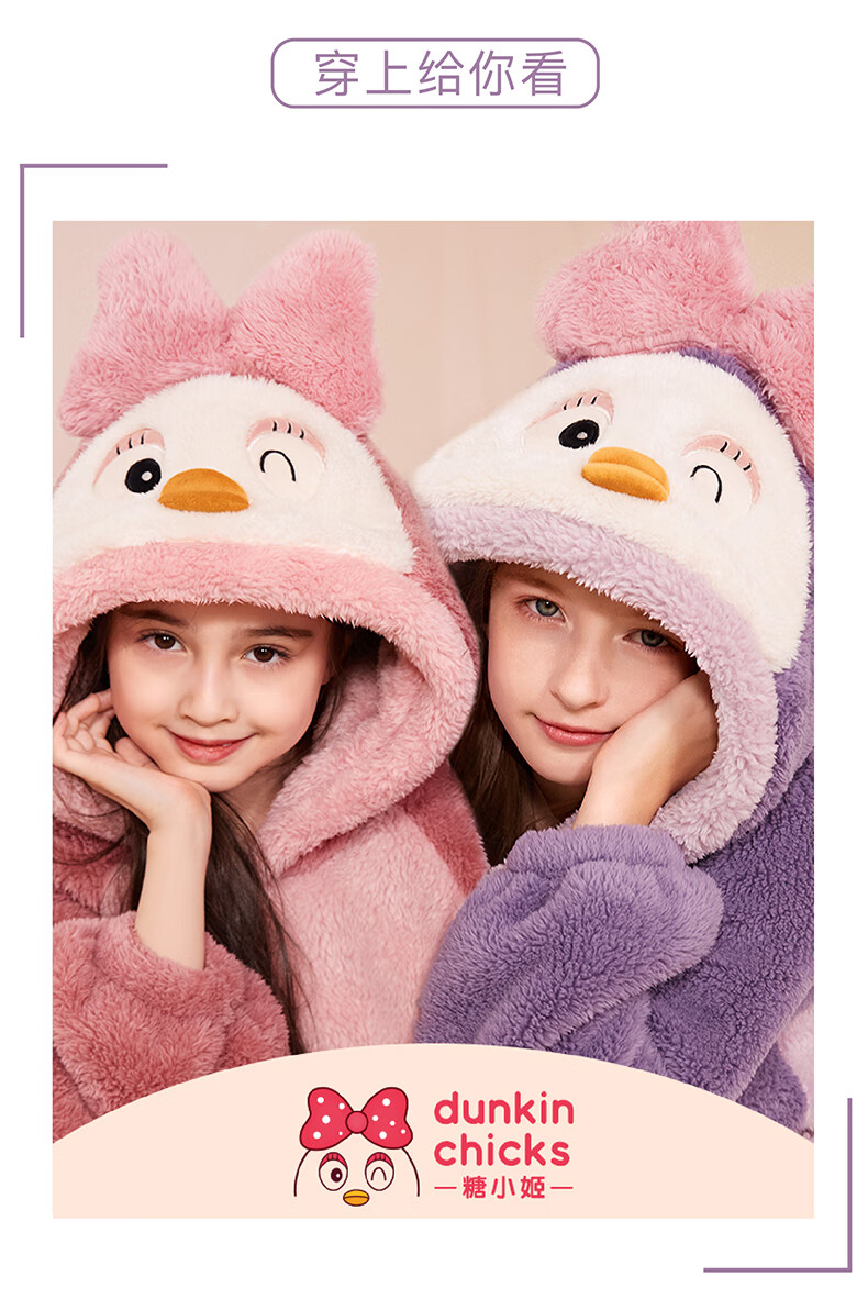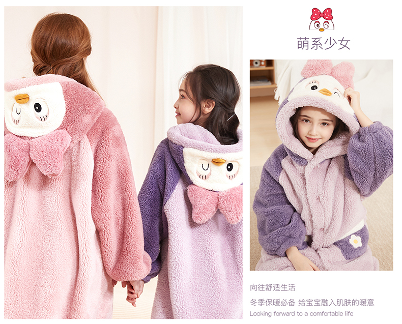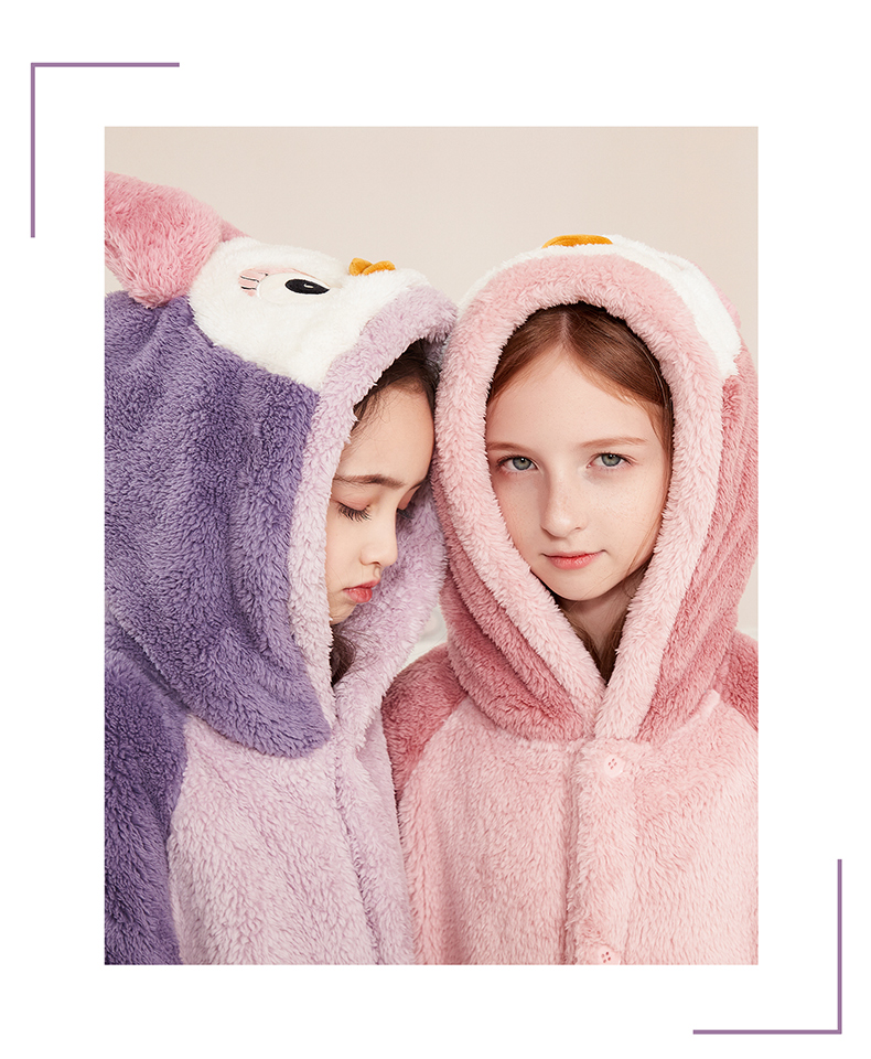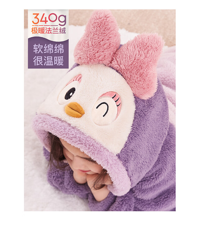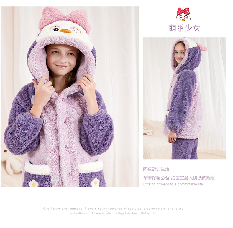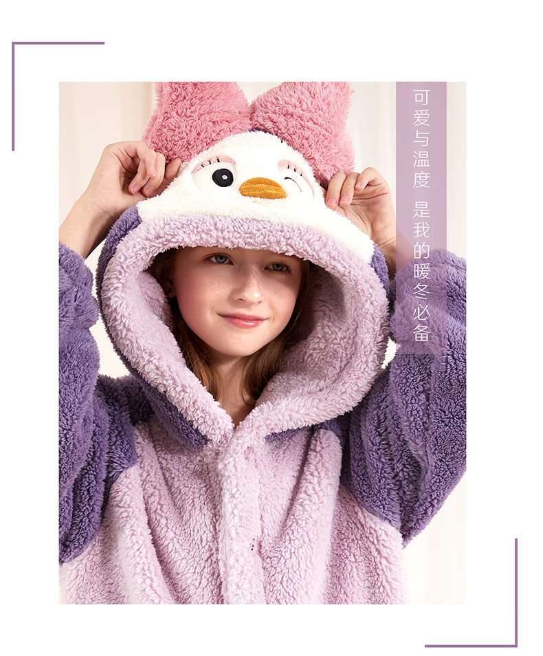 多妙屋儿童睡袍女童睡衣珊瑚绒秋冬加绒法兰绒家居服 99089紫色 160cm