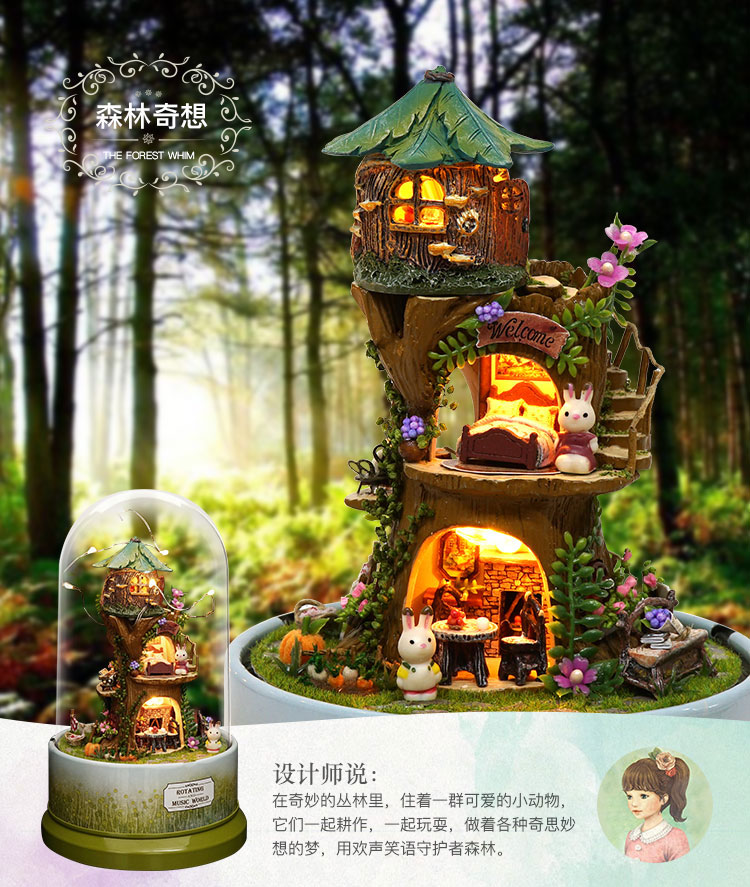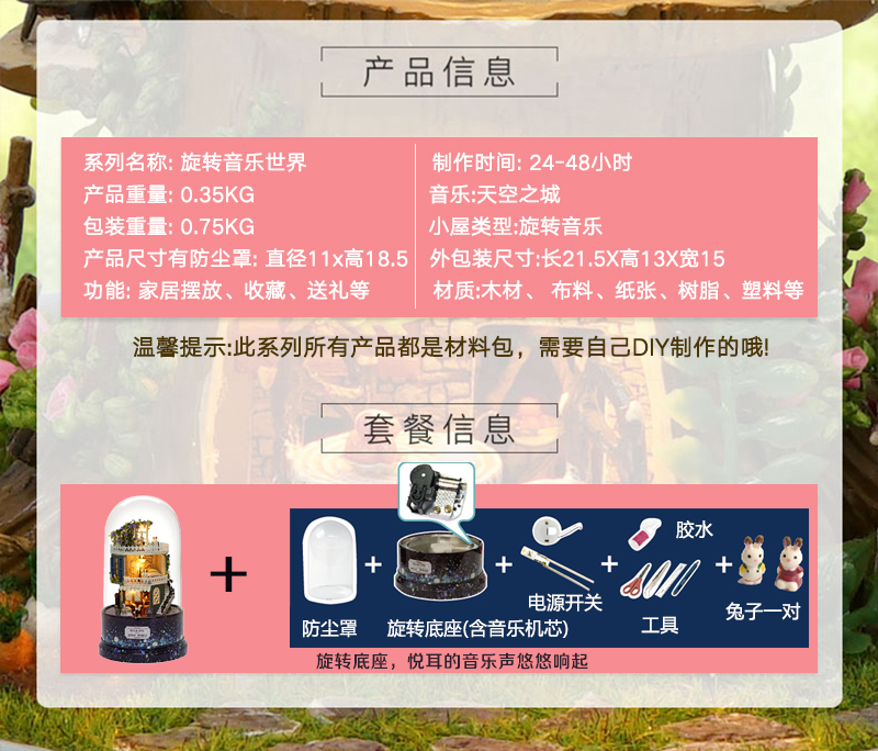 我の屋DIY旋转八音盒星梦奇缘手工制作水晶球生日礼物男友女孩儿童玩具