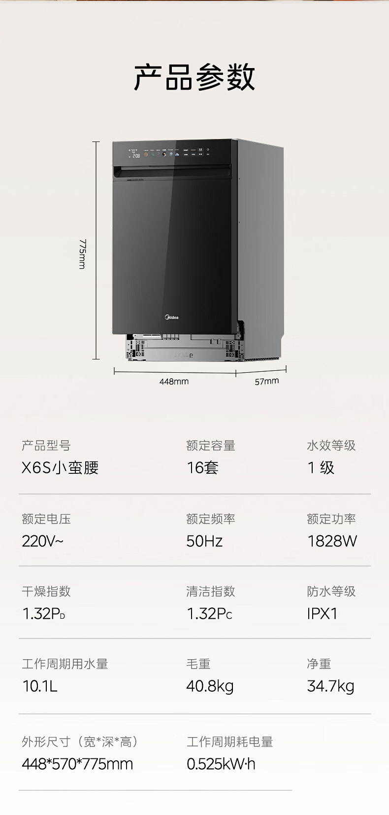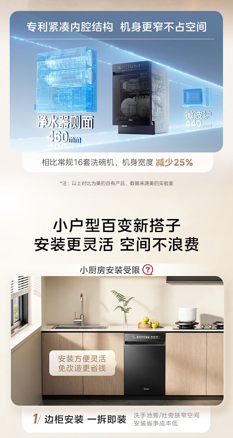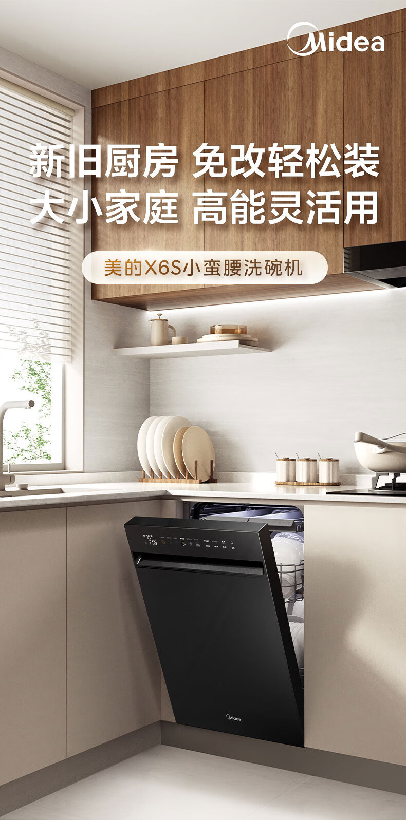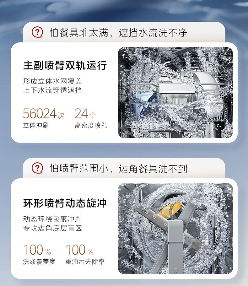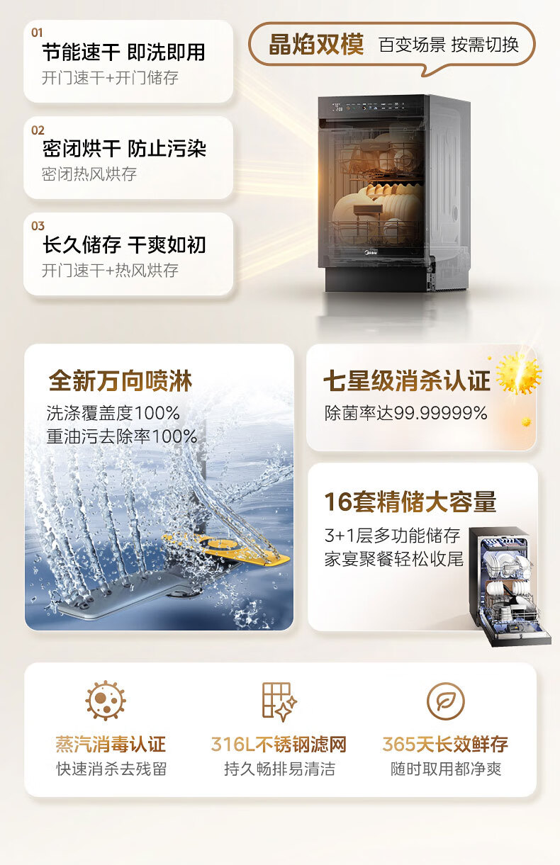 美的(Midea)【万向X6S小蛮腰】洗碗机嵌入式16套45cm超窄设计晶焰双模烘干系统七星消杀单消毒新升级万向喷臂