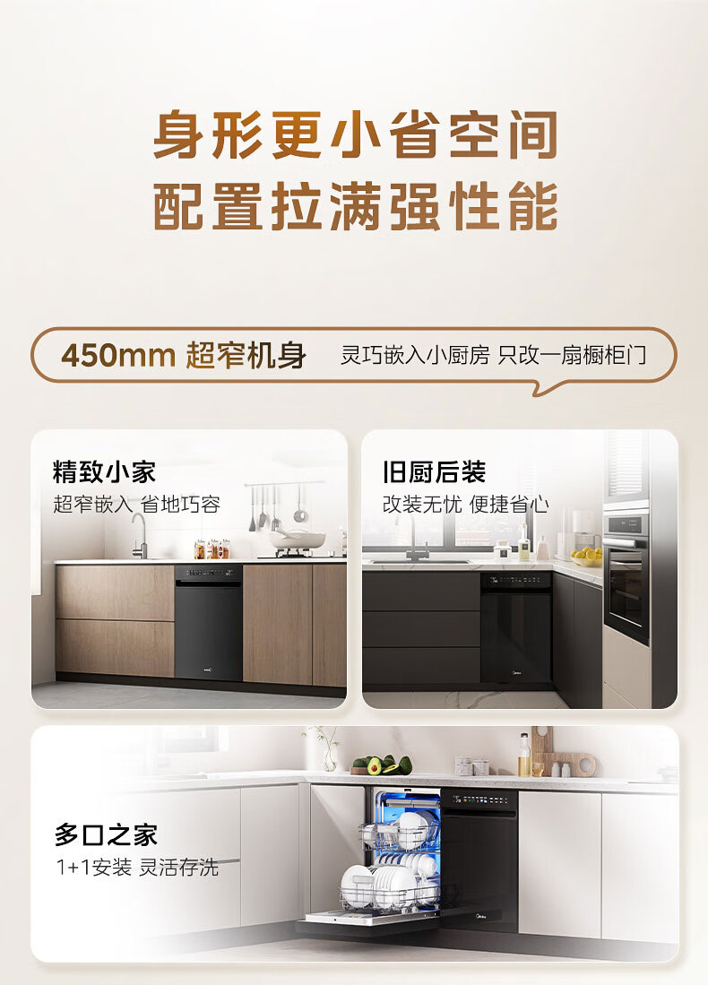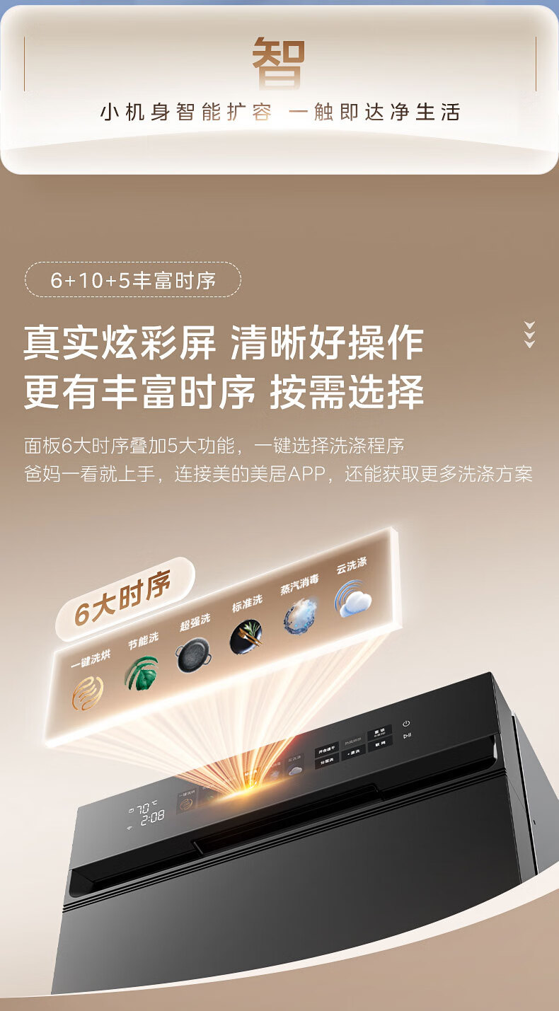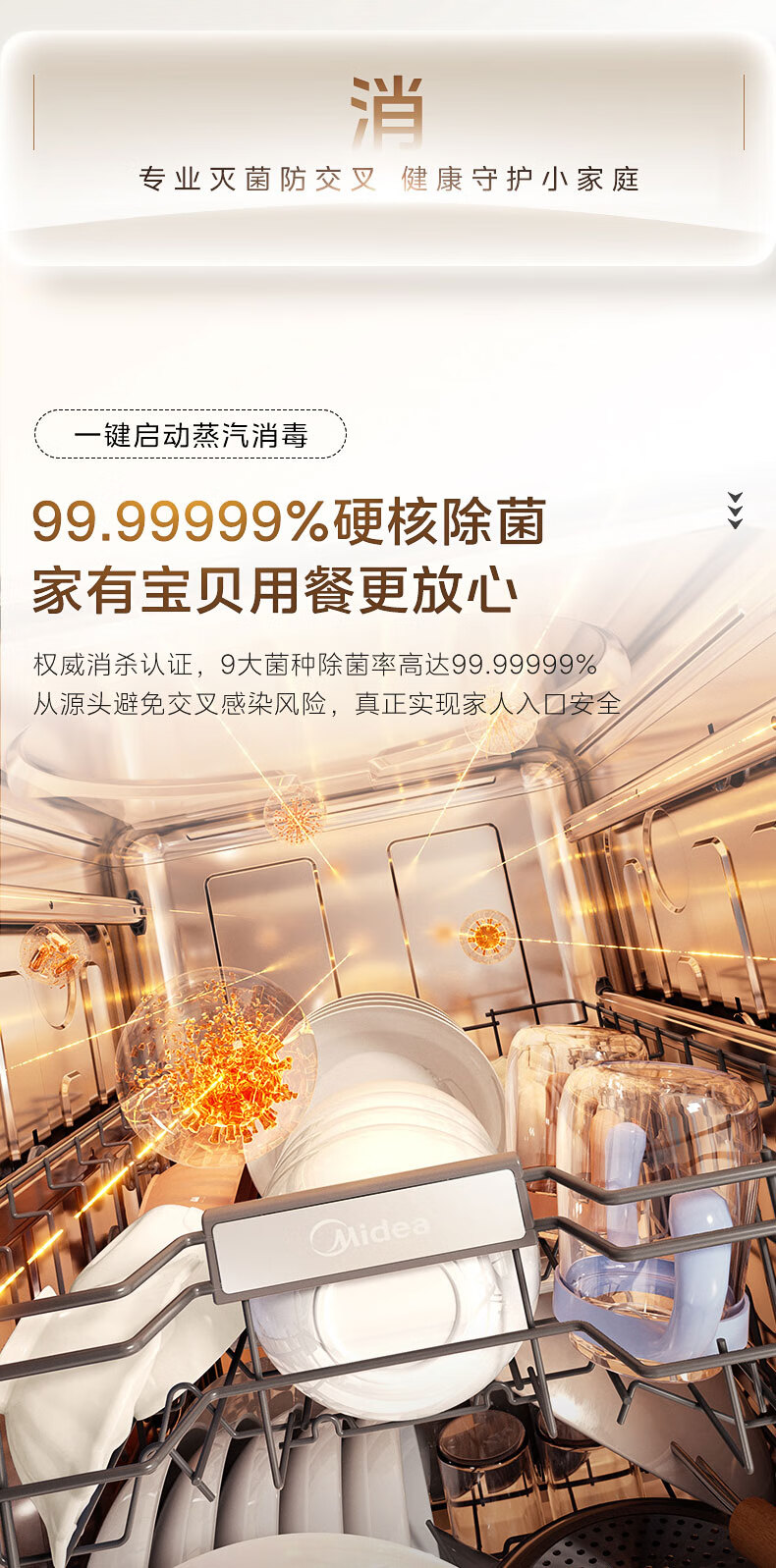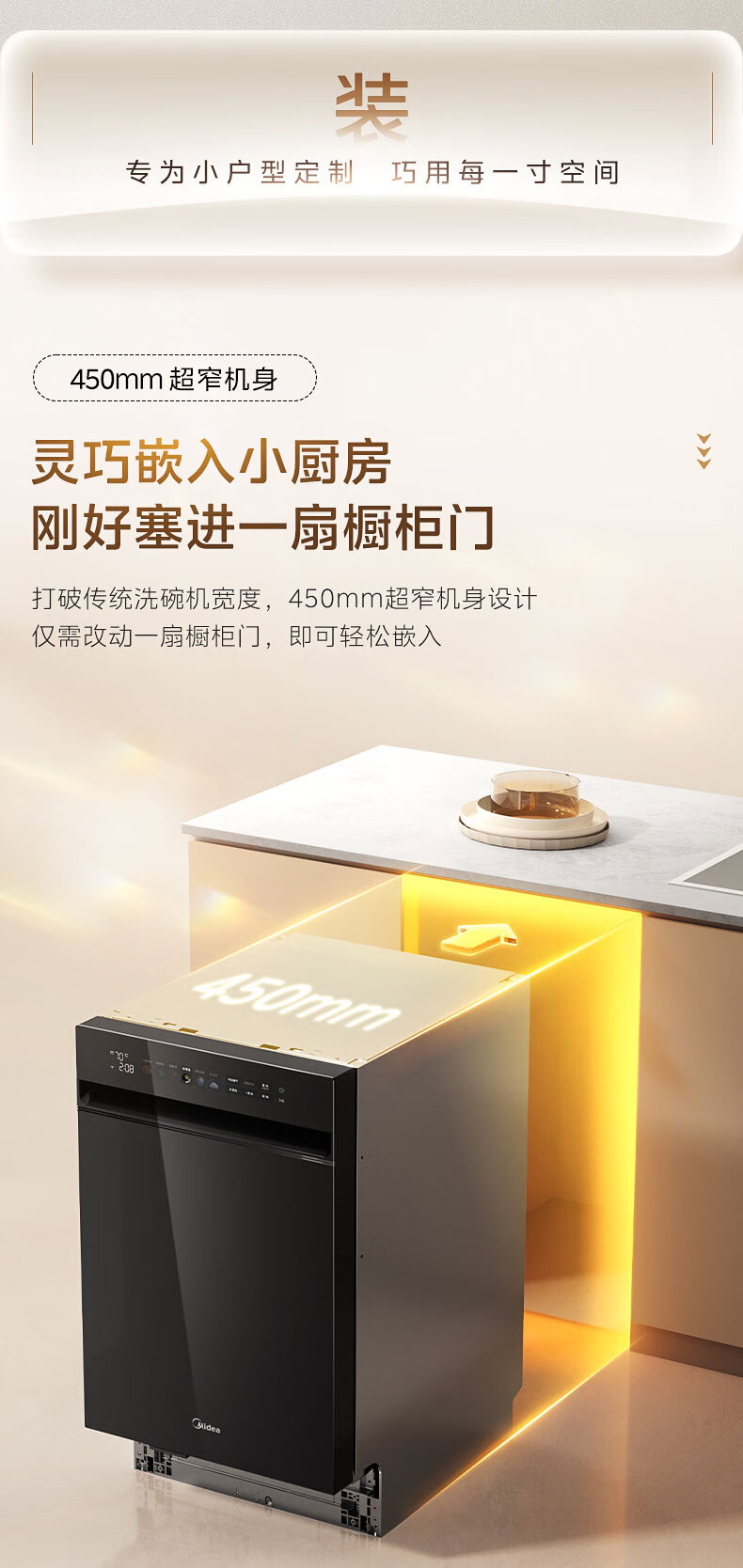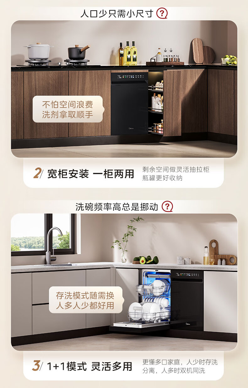 美的(Midea)【万向X6S小蛮腰】洗碗机嵌入式16套45cm超窄设计晶焰双模烘干系统七星消杀单消毒新升级万向喷臂