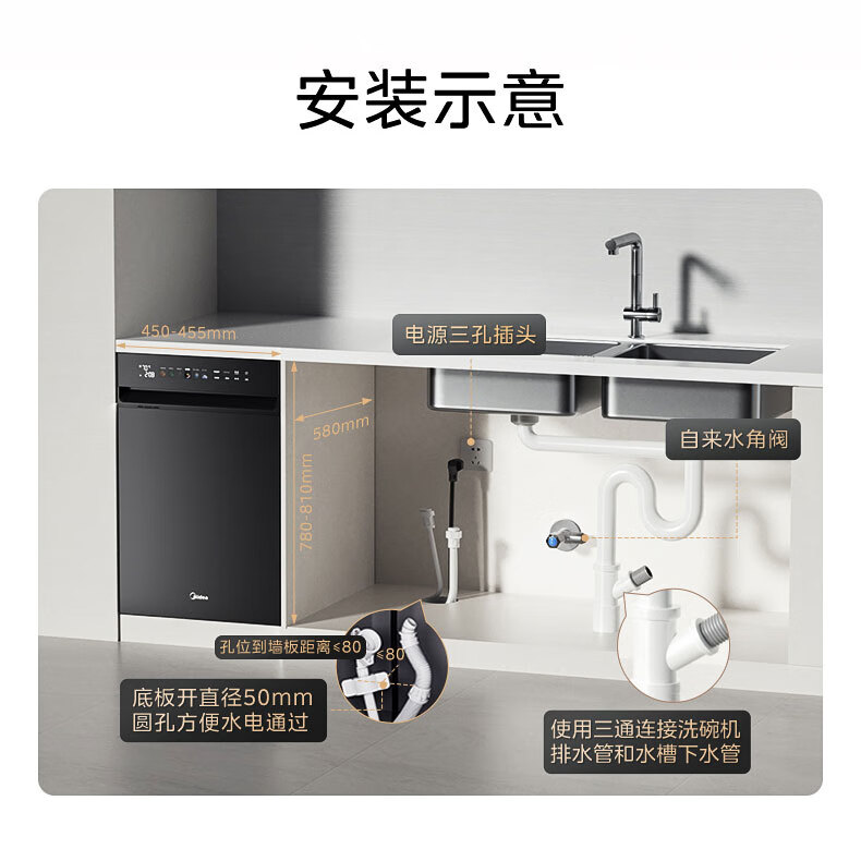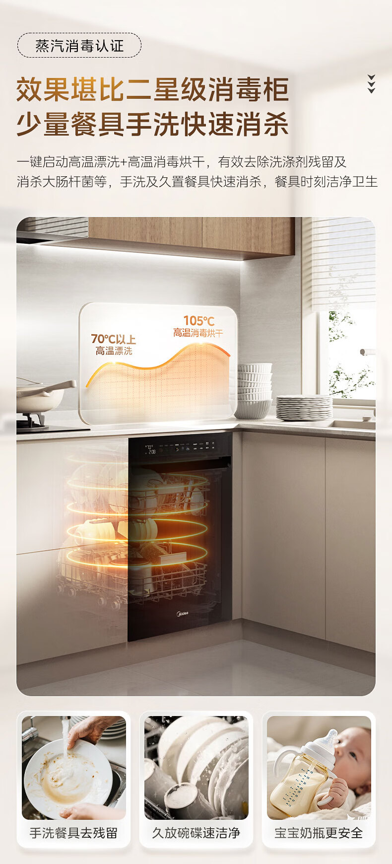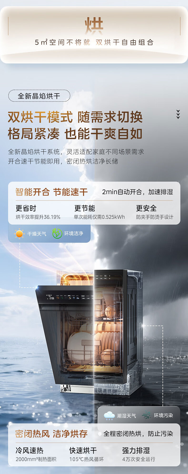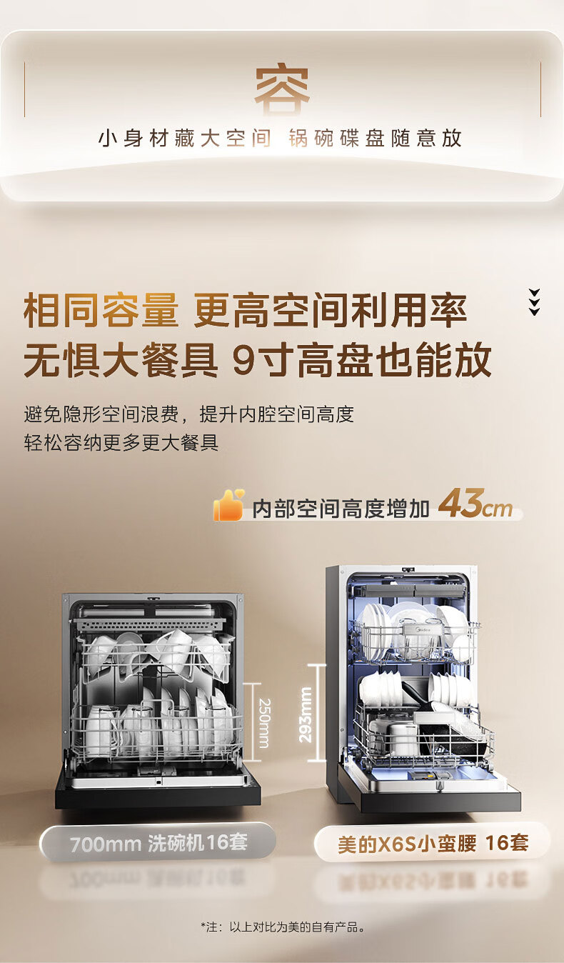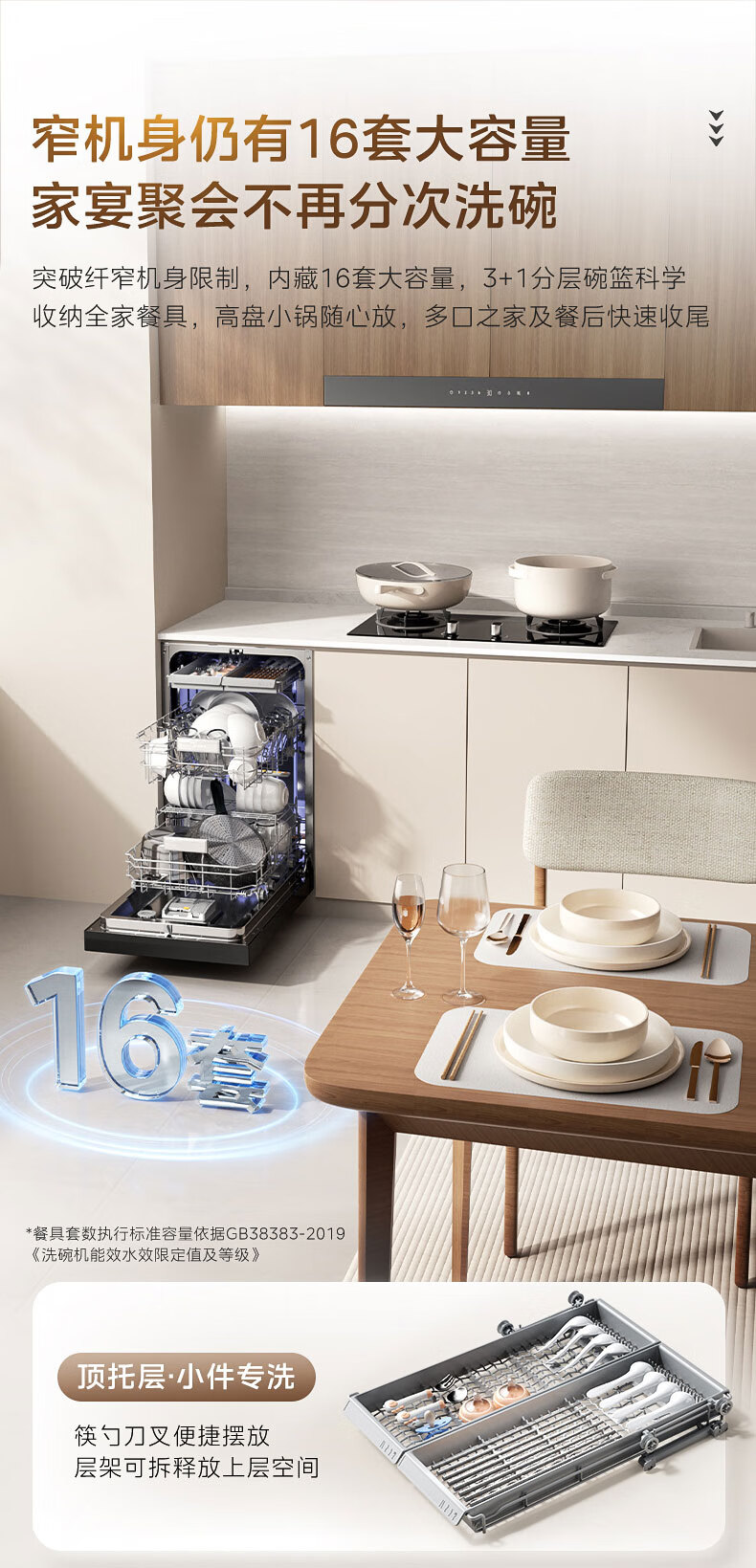 美的(Midea)【万向X6S小蛮腰】洗碗机嵌入式16套45cm超窄设计晶焰双模烘干系统七星消杀单消毒新升级万向喷臂
