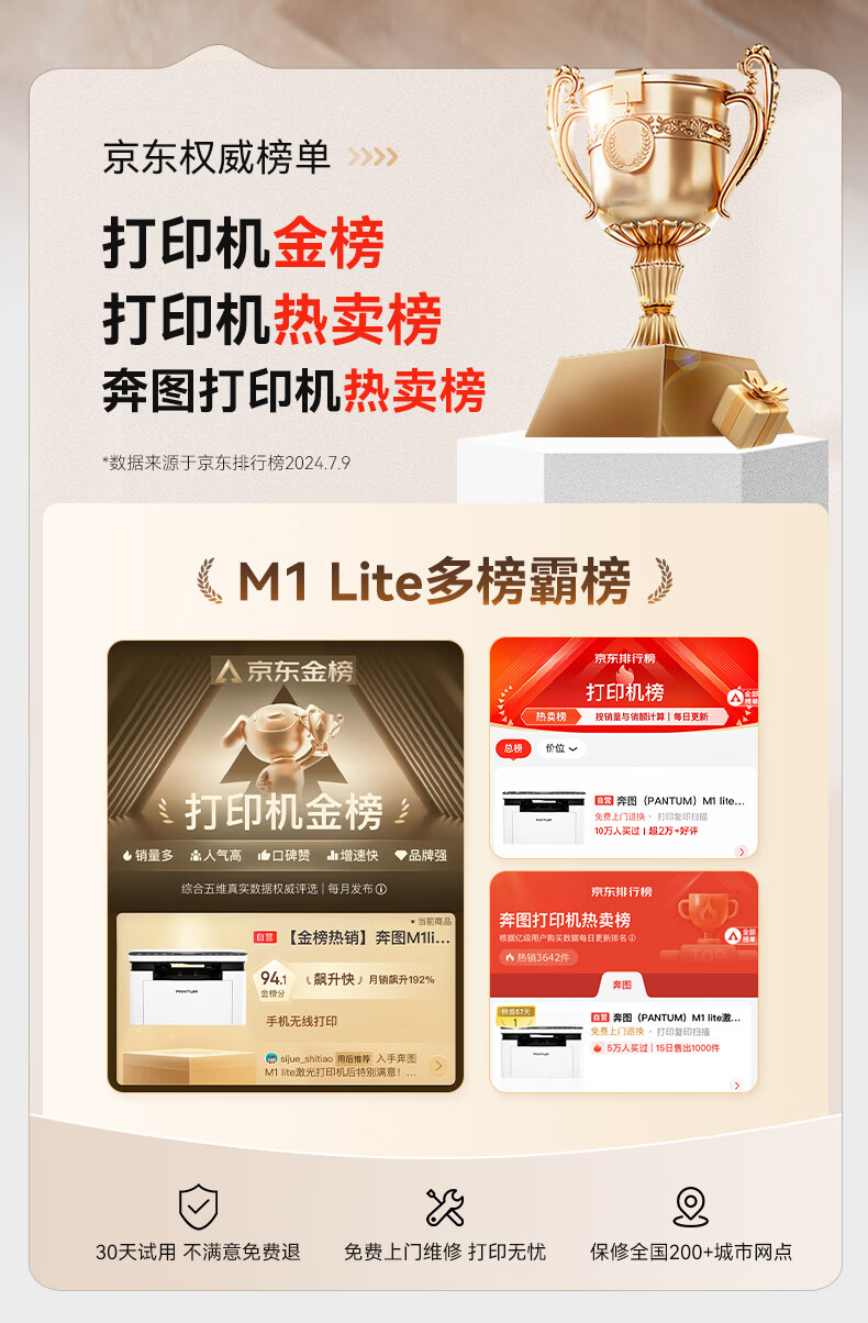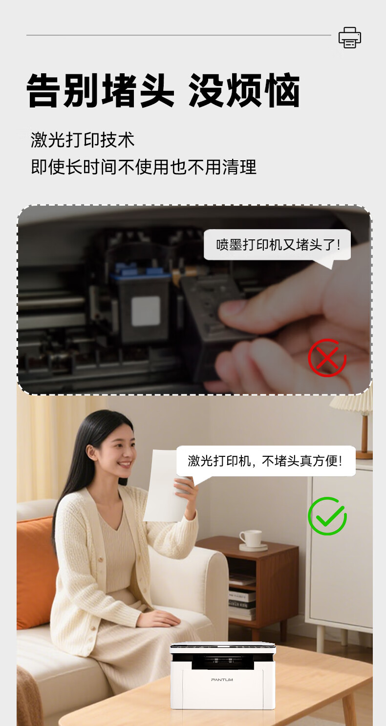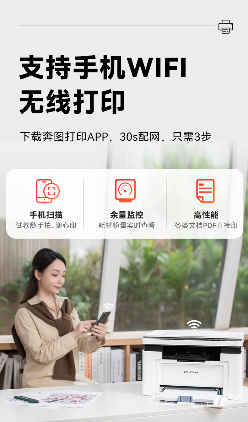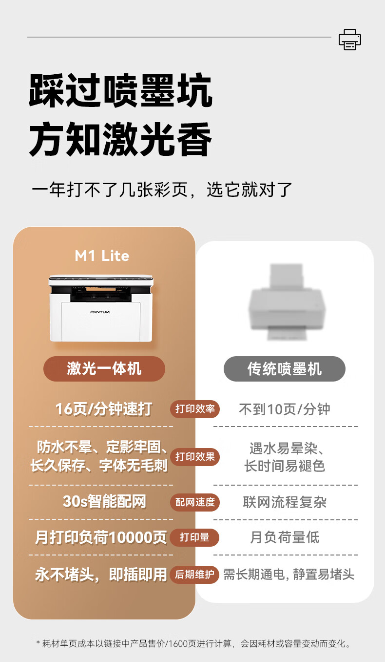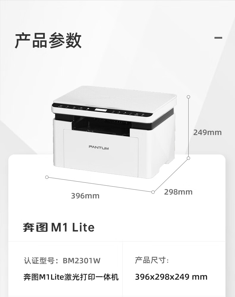 奔图(PANTUM)M1 lite激光打印机家用办公三合一 学生作业手机无线打印打卷子 办公室打印复印扫描一体机
