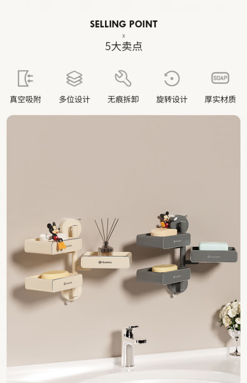 户璃德国2025新款吸盘可旋转肥皂盒壁挂式免打孔卫生间香皂置物架沥水 全铜加厚阀芯 【2只装】PICC承保 全铜主体陶瓷阀芯(用坏包赔)