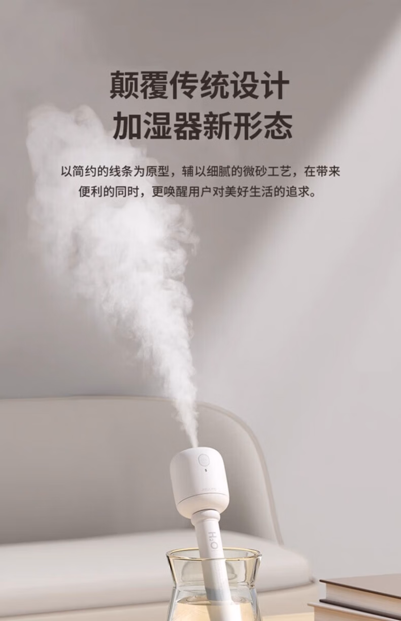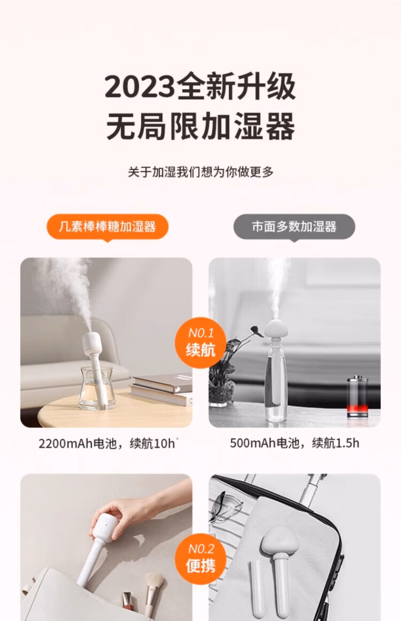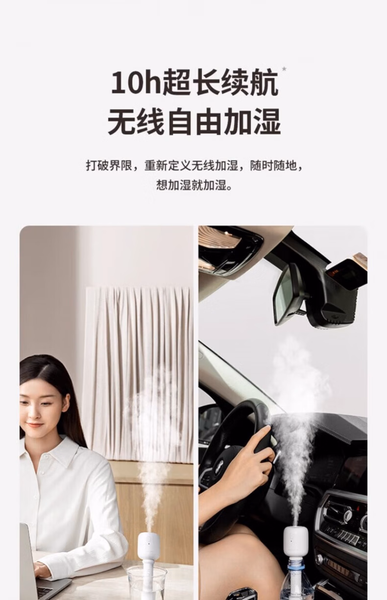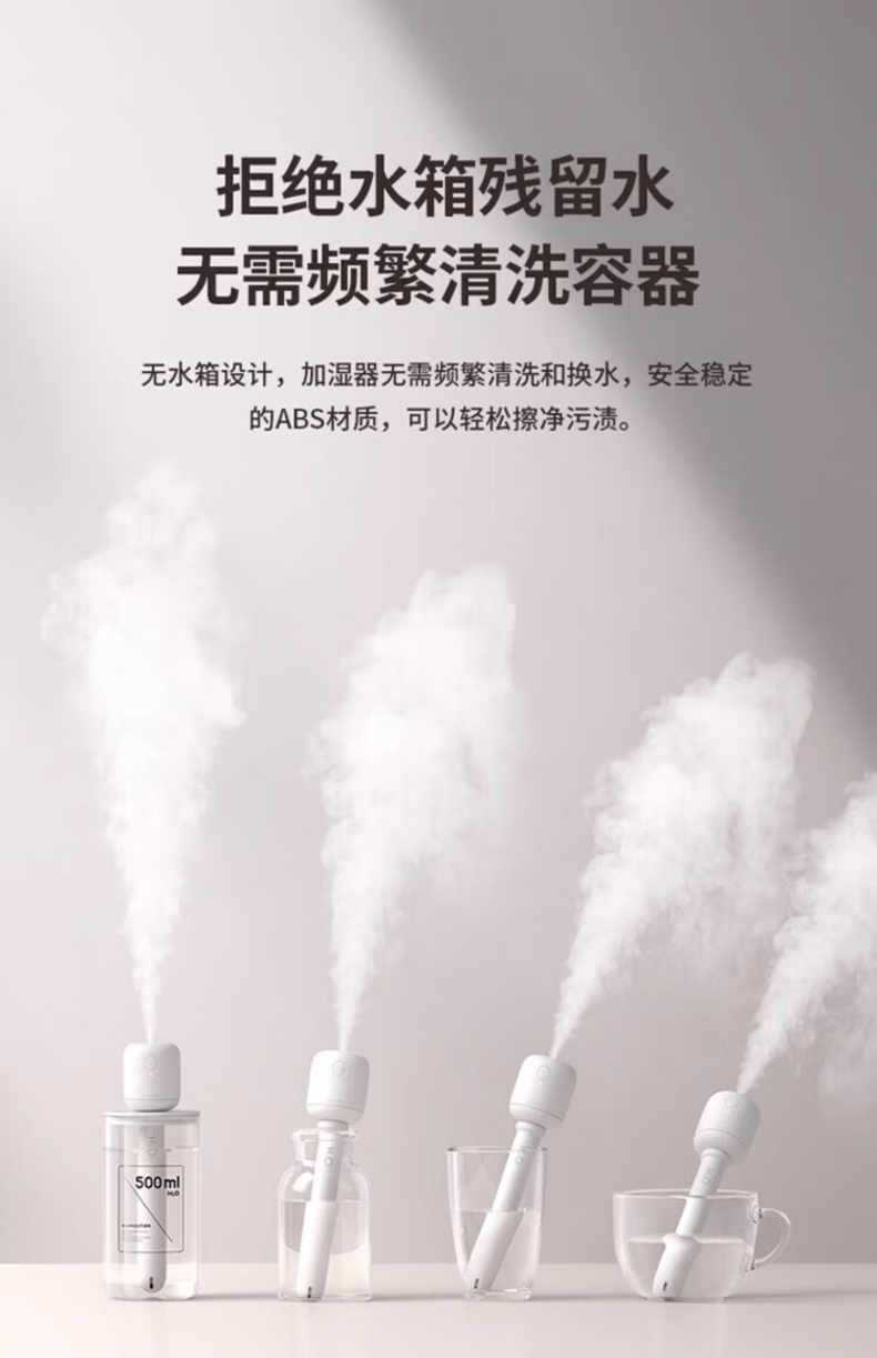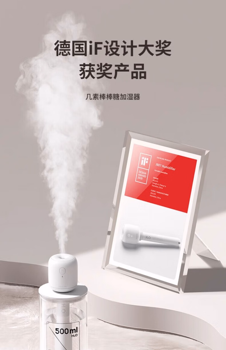 WCZ德国棒棒糖无线加湿器小型usb充电便携式办公室空气香薰喷雾家用静音卧室宿舍学生矿泉水加湿车载 白色-1100mAh【两档调节 纳米喷雾】2根棉棒