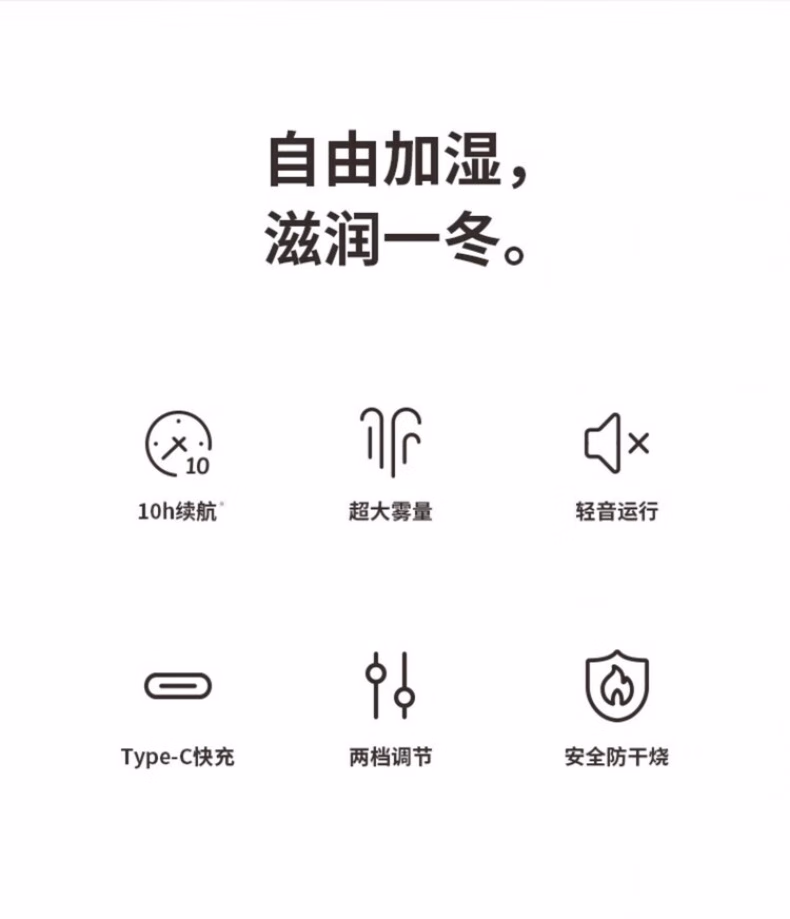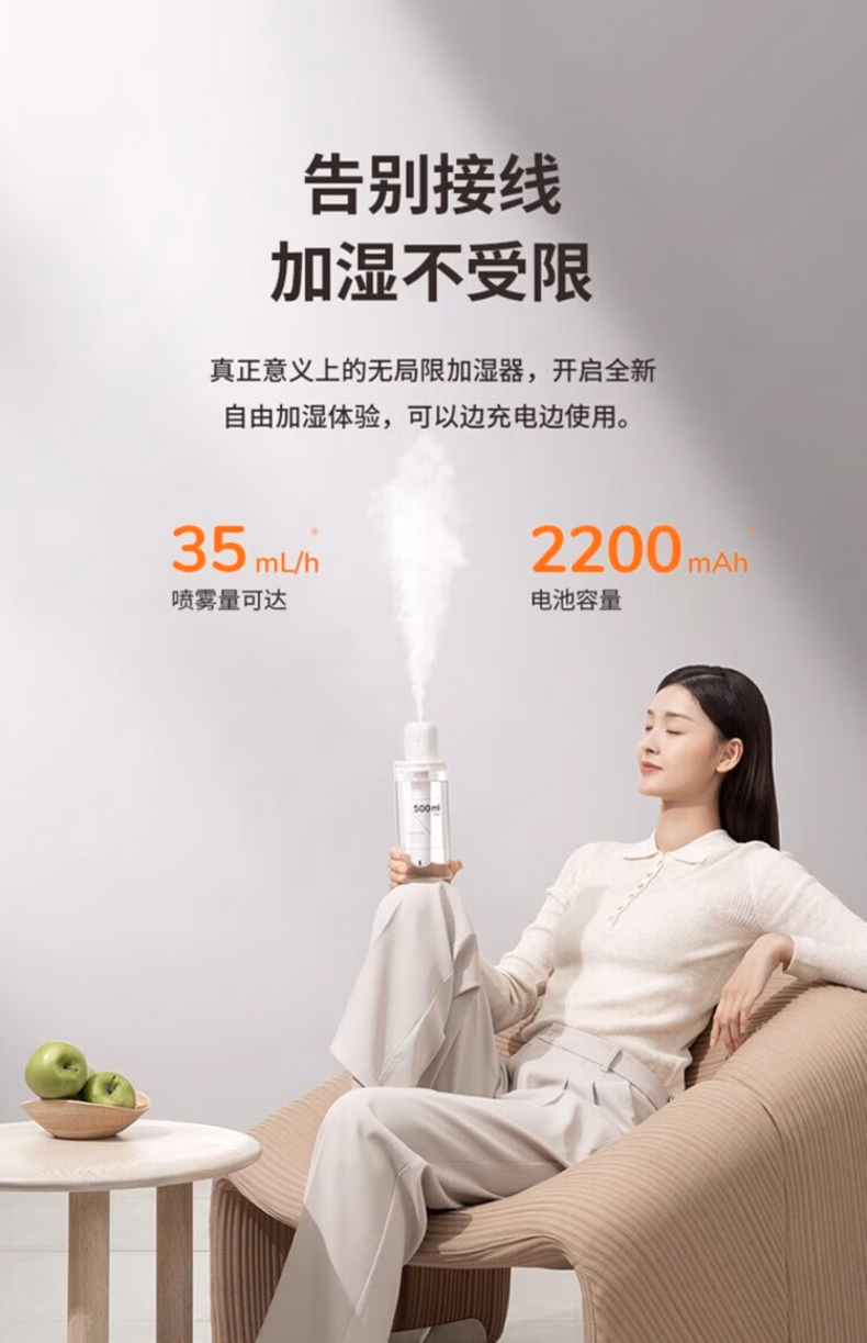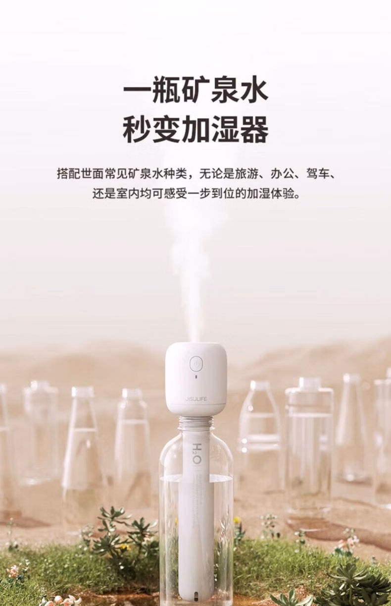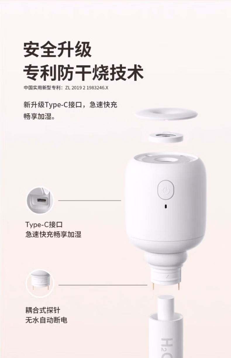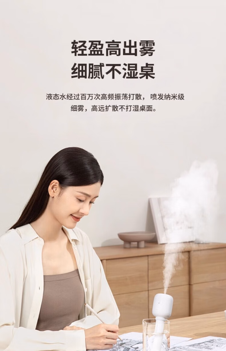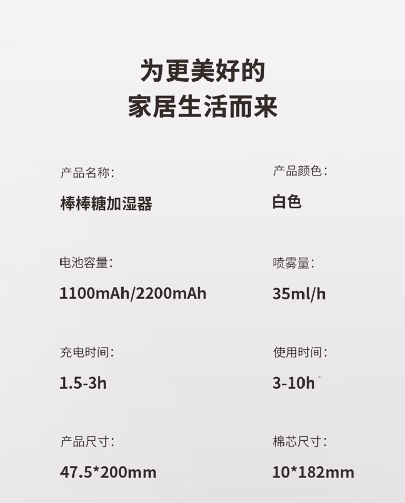 WCZ德国棒棒糖无线加湿器小型usb充电便携式办公室空气香薰喷雾家用静音卧室宿舍学生矿泉水加湿车载 白色-1100mAh【两档调节 纳米喷雾】2根棉棒
