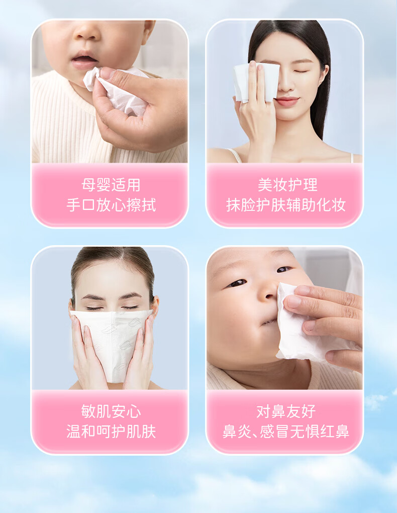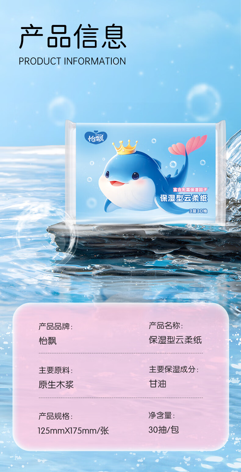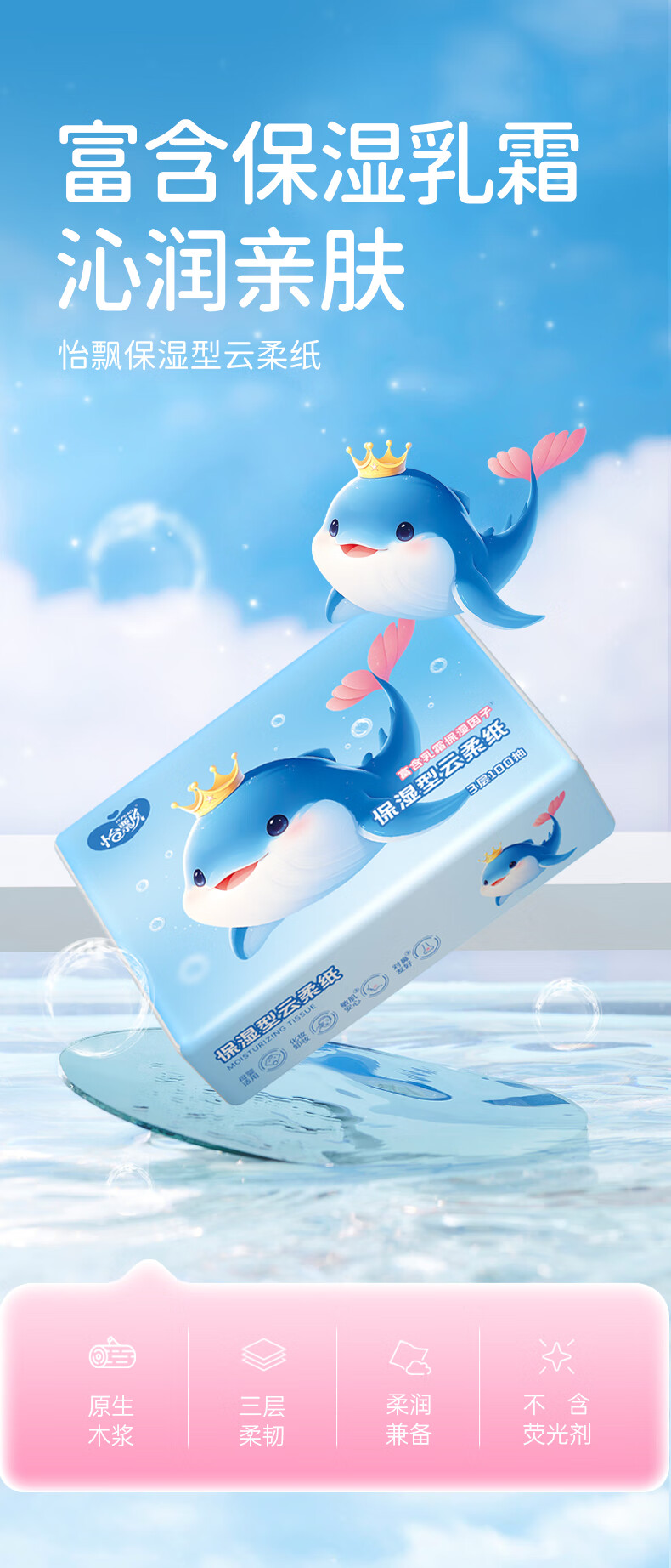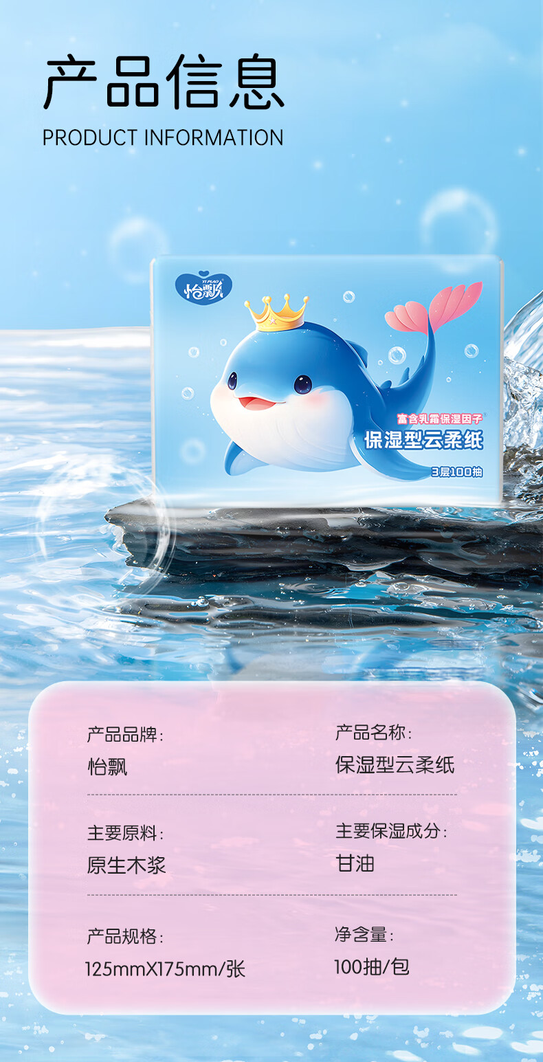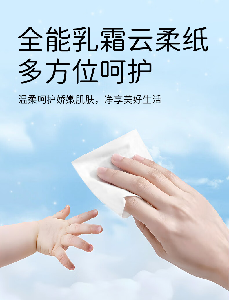 怡飘乳霜柔纸巾云柔巾婴儿抽纸保湿纸母婴适用 乳霜纸 3层 100抽*5包
