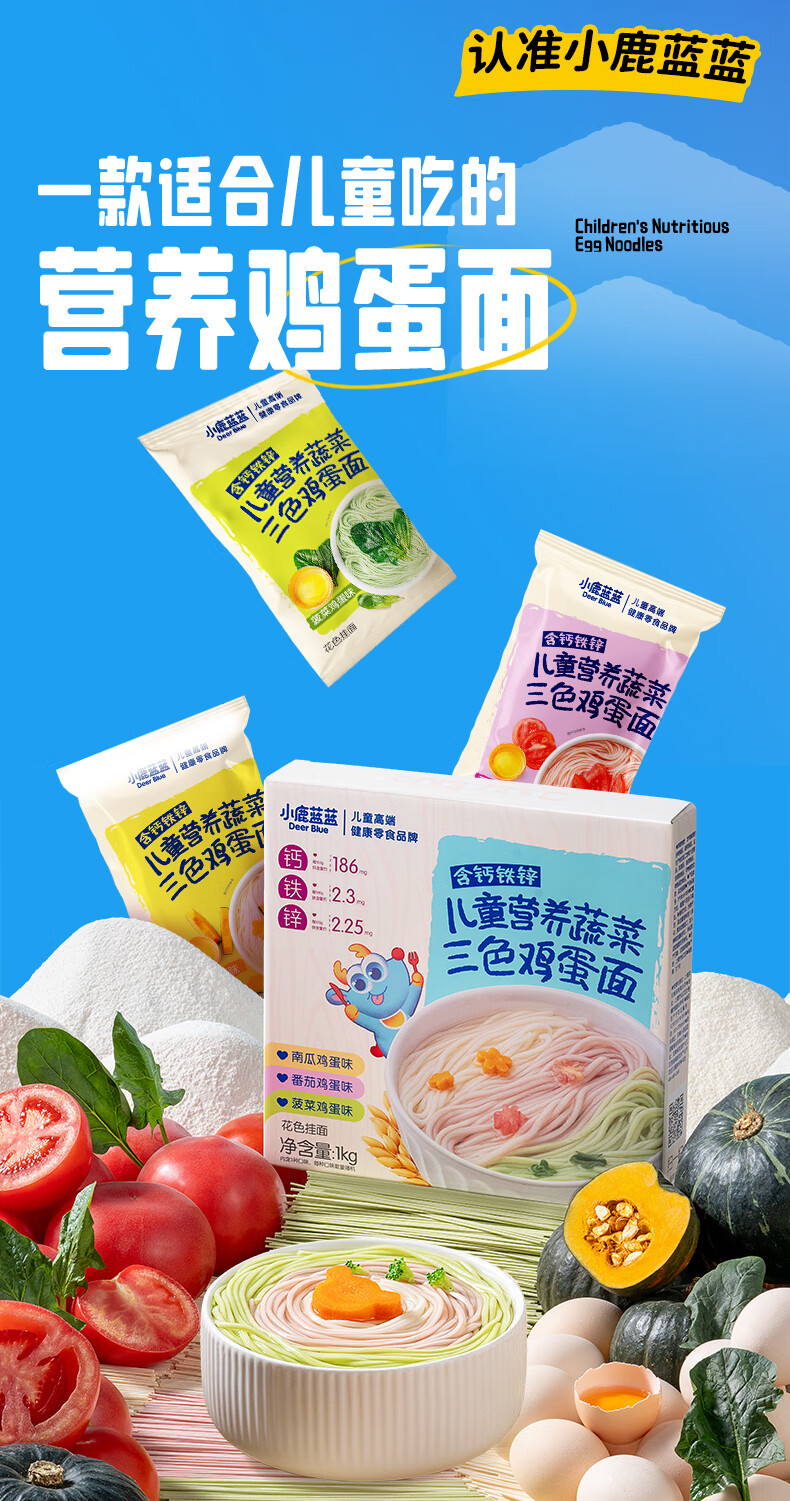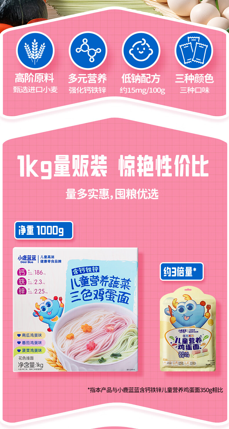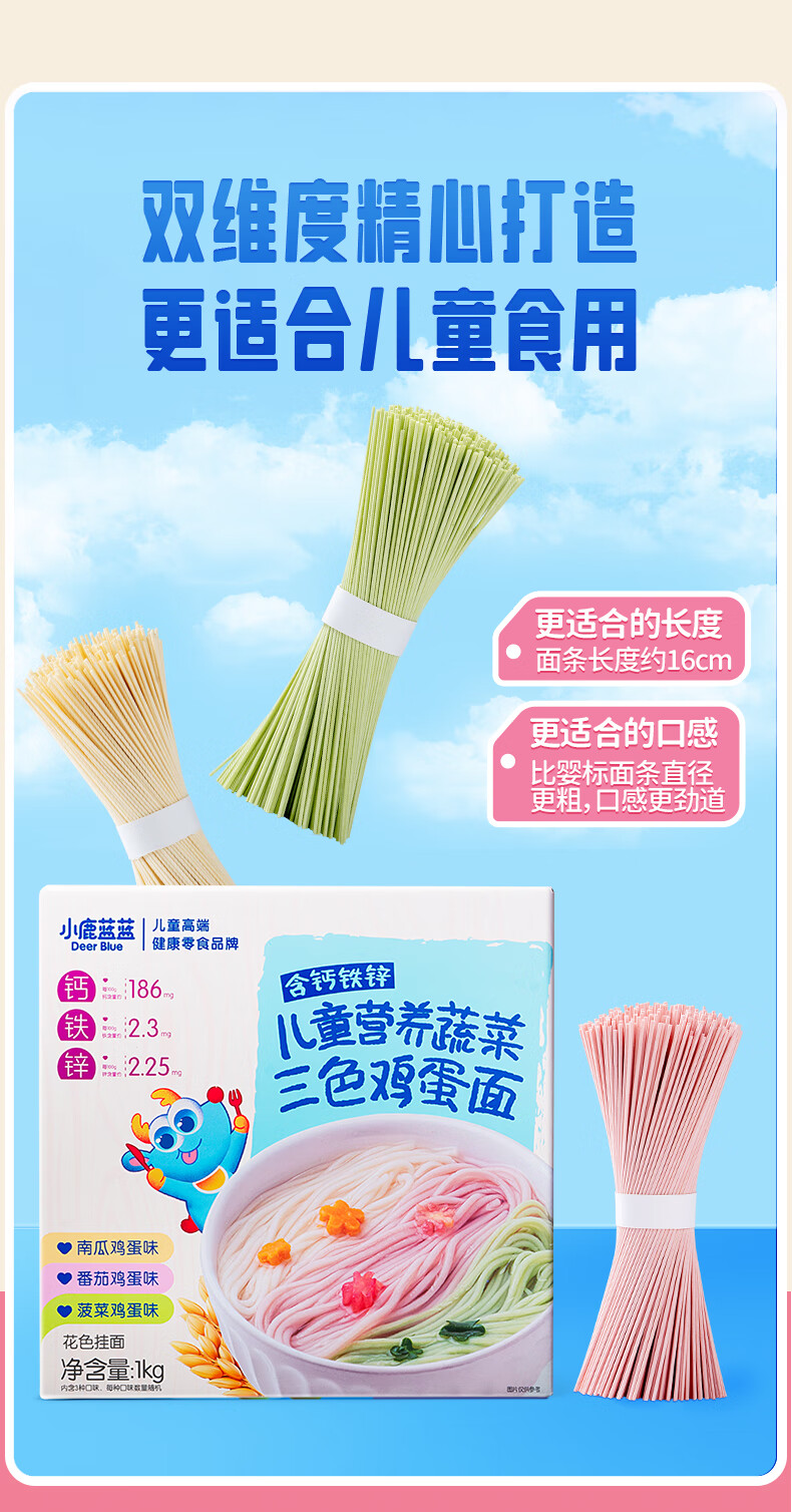 小鹿蓝蓝儿童营养鸡蛋面1kg含钙铁锌混合口味宝宝早餐辅食面条挂面