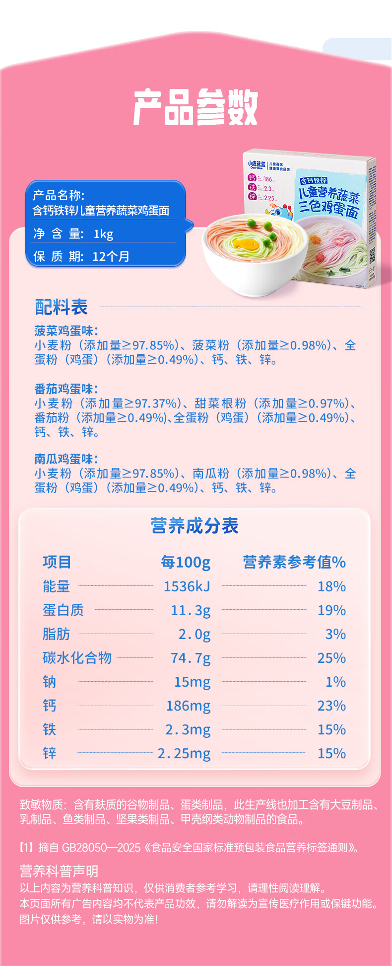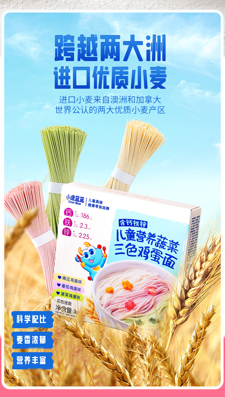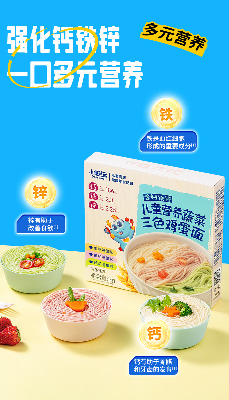 小鹿蓝蓝儿童营养鸡蛋面1kg含钙铁锌混合口味宝宝早餐辅食面条挂面